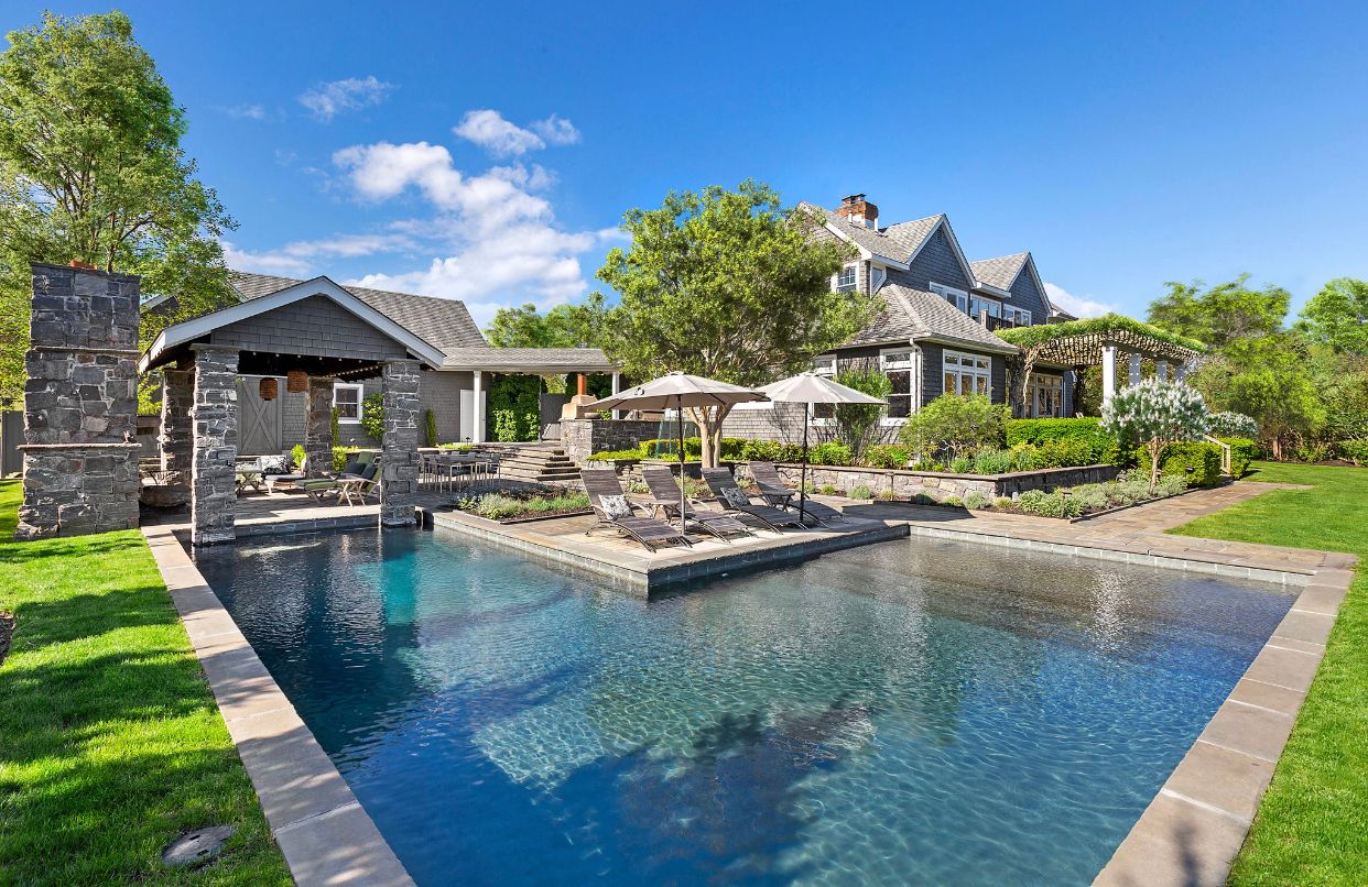 Escape to this perfectly private summer retreat! On open direct waterfront with private beach, this stunning 4BR, 4BA house offers luxurious and comfortable living space on 2.5 private acres overlooking Moriches Bay. The well-appointed home features a large sunny spaces including a huge kitchen with top-of-the-line appliances, and a large backyard that is a garden oasis with a sprawling lawn, resort-style pool, spa, cabana with a fireplace, a