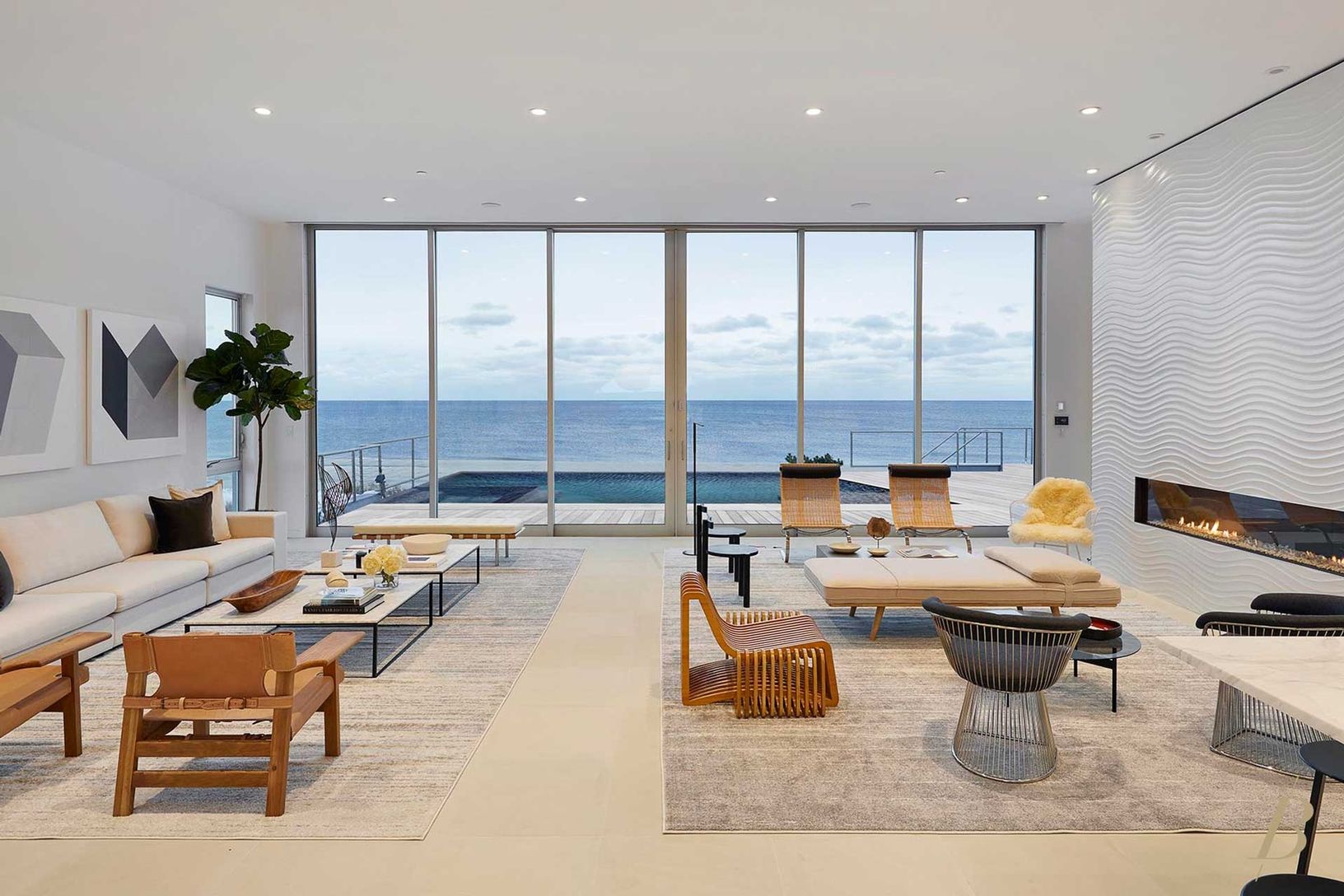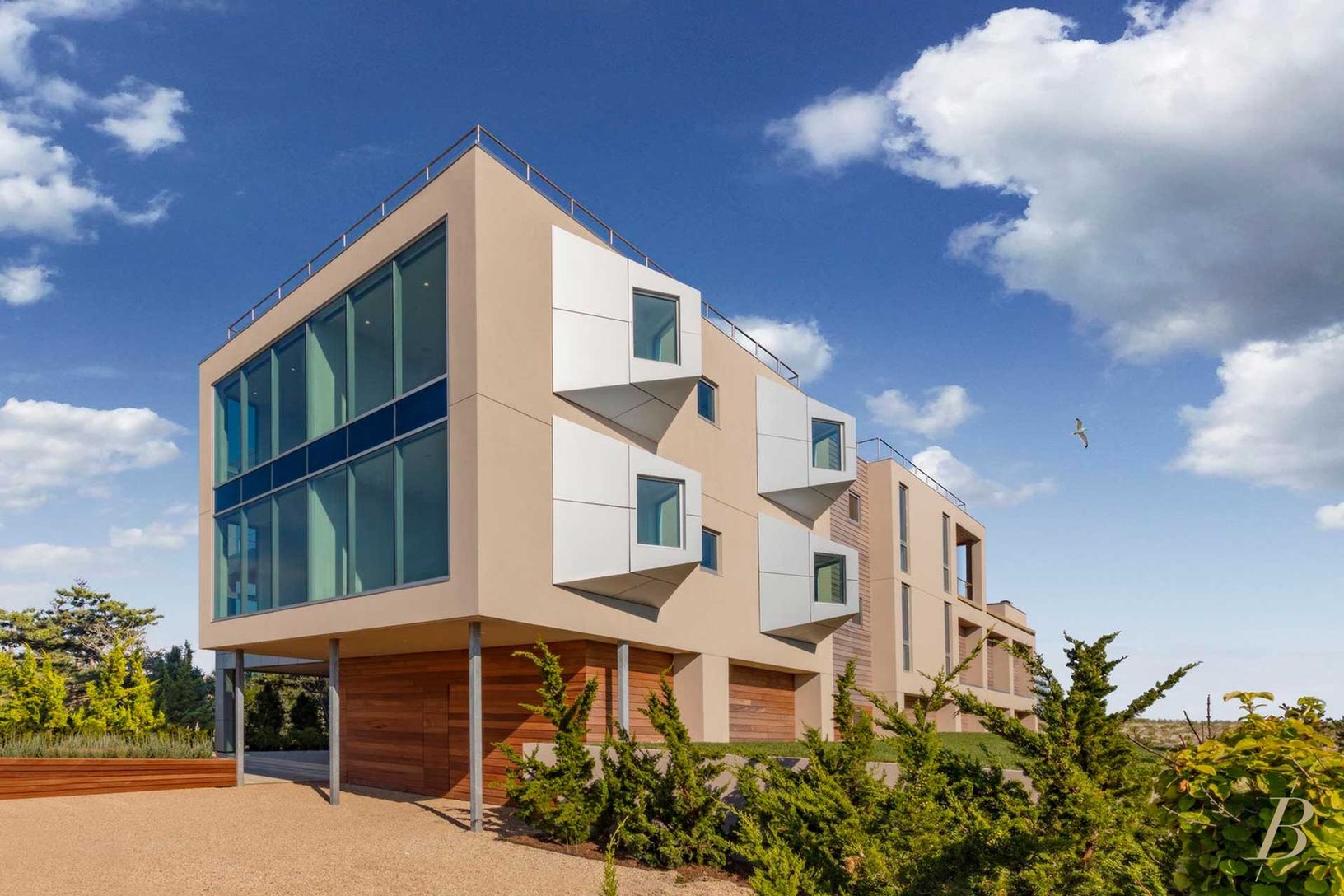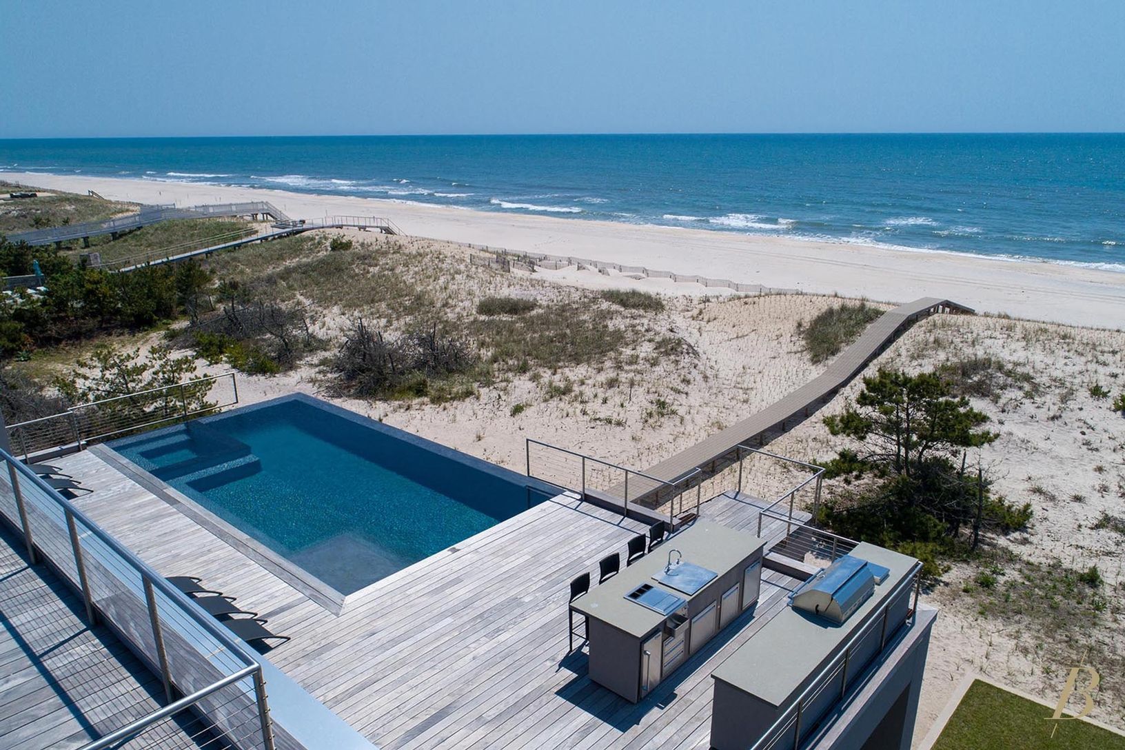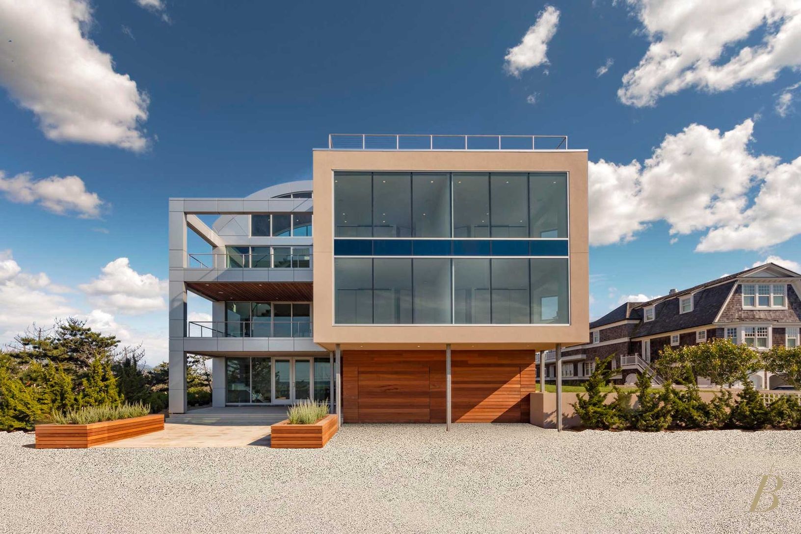 The modern-day vision of a luxury Hamptons oceanfront retreat has come to life at 65 Dune Road, a contemporary work of art capitalizing on spectacular ocean and bay views and sleek, masterfully-designed living space. This newly-completed, one-of-a-kind 9,300 SF+/- showplace perched high above the dunes sits on a supreme 1.36-acre elevated oceanfront lot on prized Dune Road, nestled between the Atlantic Ocean and Shinnecock Bay in an intimate e