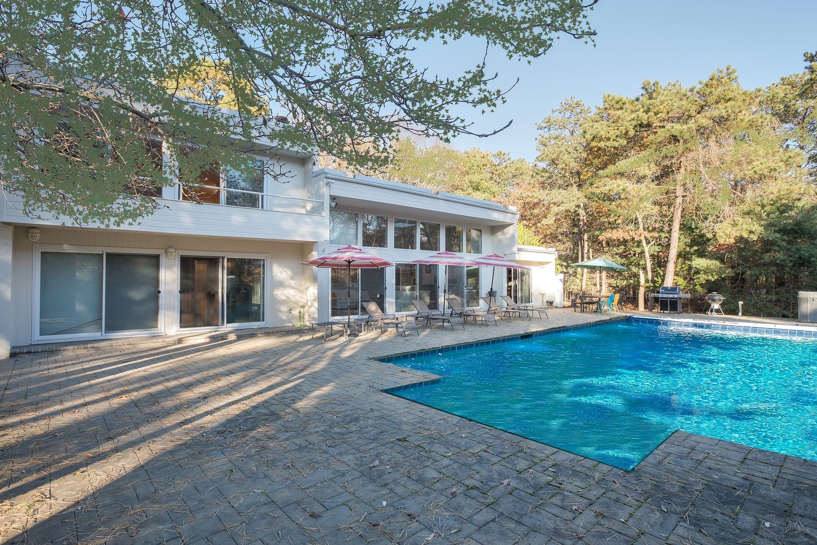 Open Floor Plan Contemporary With Lots Of Natural Light. Master Suites With Separate Shower & Jacuzzi Tubs On First And Second Floor. 20'X40' Pool, Hot Tub, Har-Tru Tennis, Outdoor Shower, and Expansive Stone Patio. Low Quogue Taxes And Quogue School District.