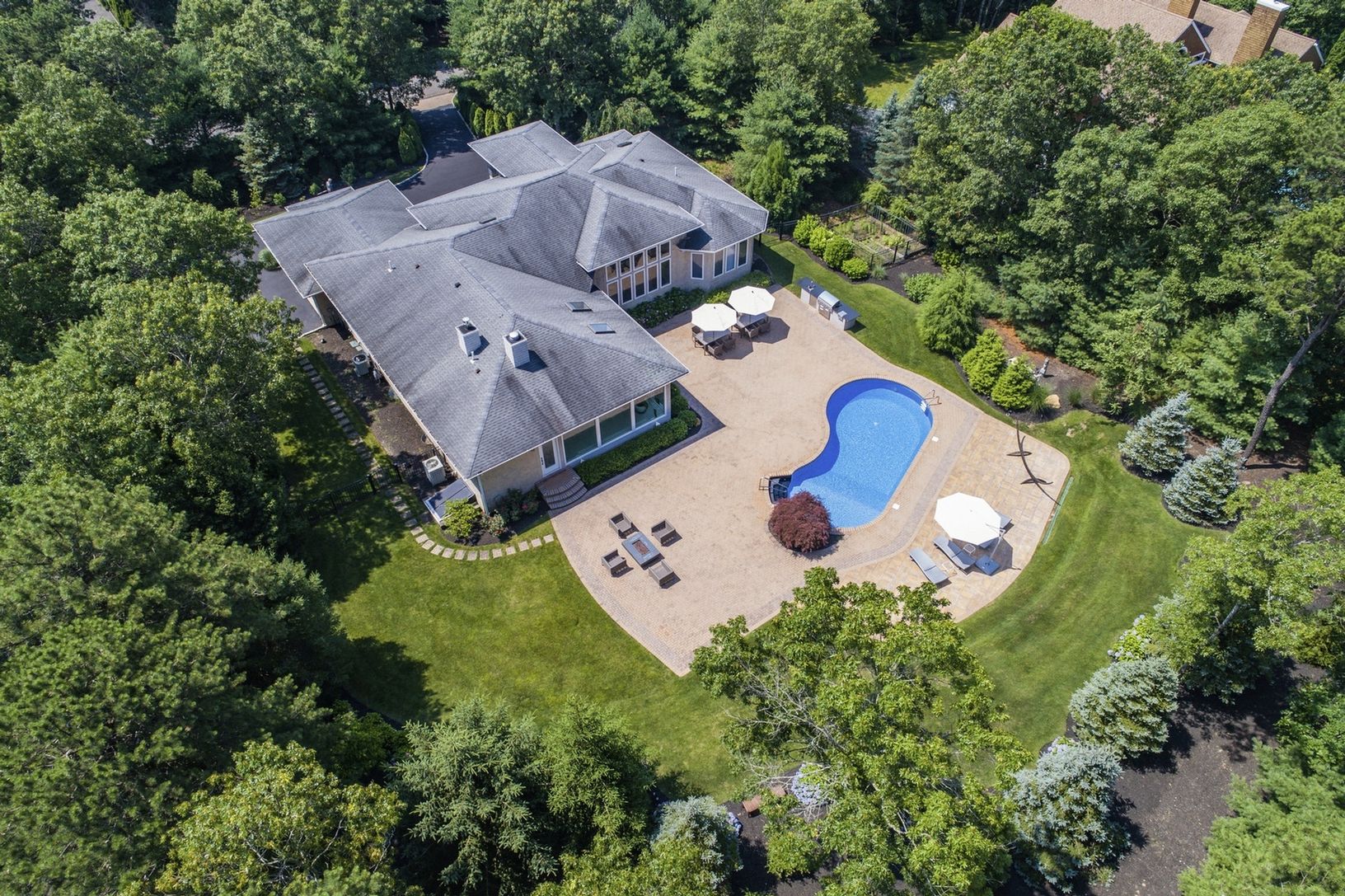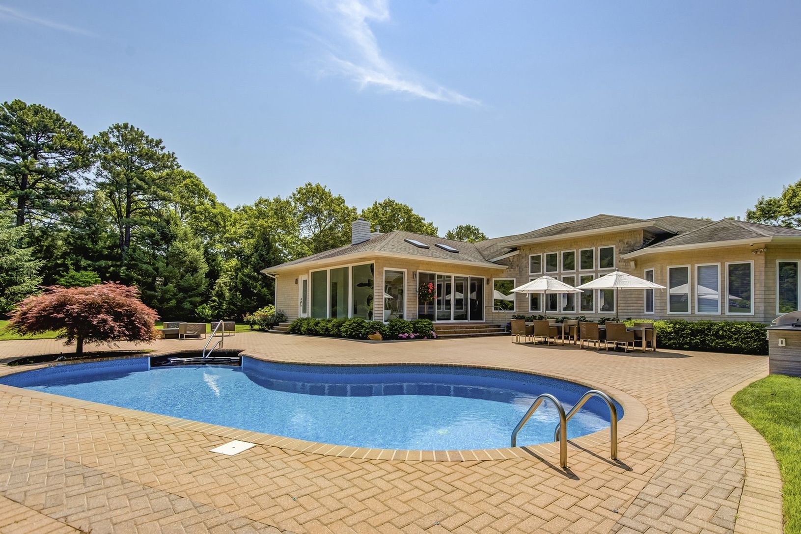 This beautifully updated smart home in Southampton Township is enhanced with walls of glass and exquisite architectural details and design. An extremely private yard encompasses this 4 bedroom, 3 full and one-half bath retreat. Gourmet kitchen, great room with natural gas fireplace, living room, and dining room in an open floor plan for everyone's enjoyment and easy entertaining. The gorgeous landscape is professionally designed and features