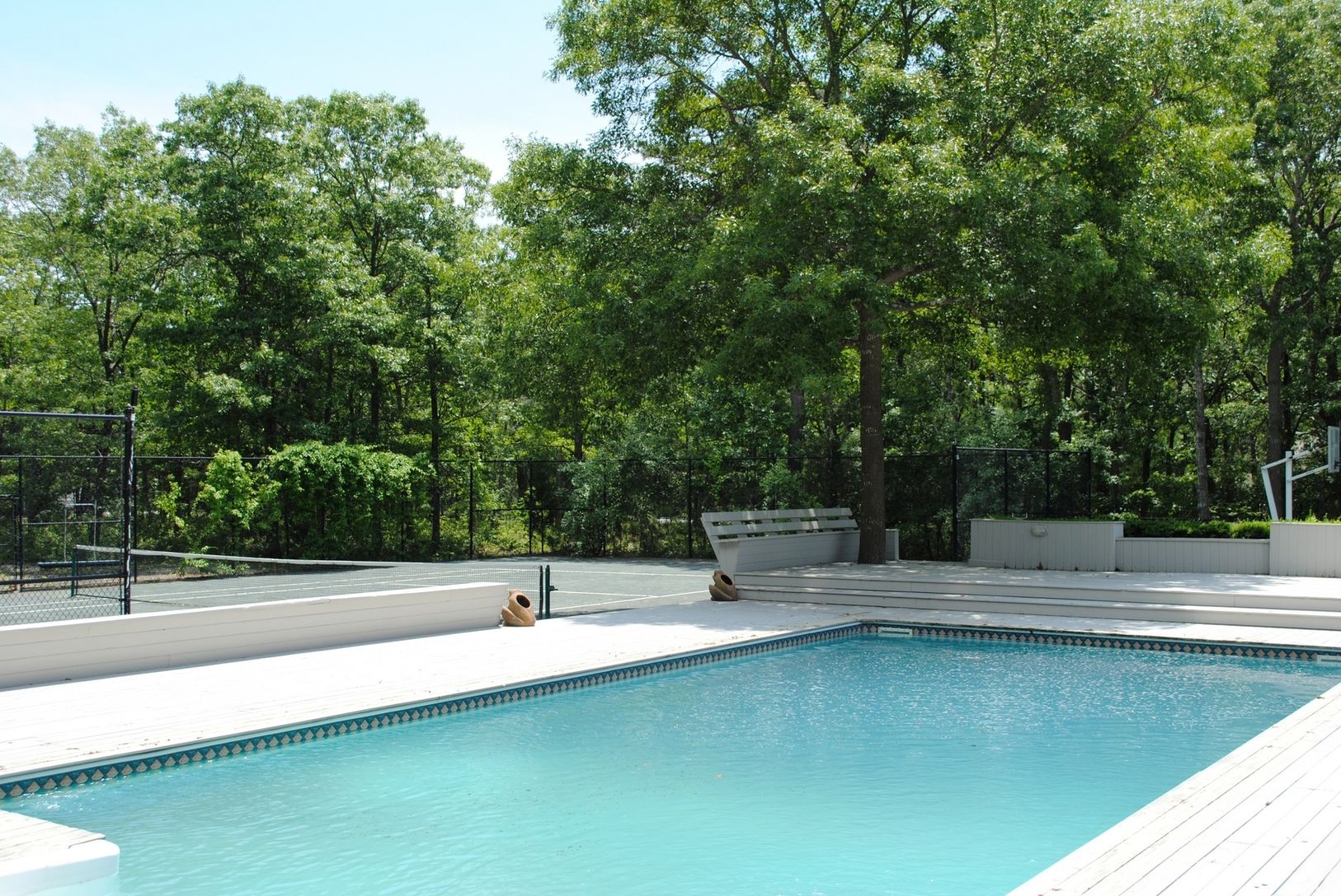 This four bedroom, three and one-half bath home is privately located, with beautiful landscaping surrounding a heated pool and tennis court Light-filled great room opens to a newly renovated kitchen. An extra bonus is a finished basement for those rainy days. Sited on two acres for your summer time enjoyment.