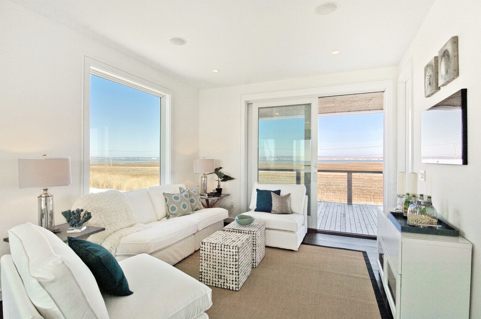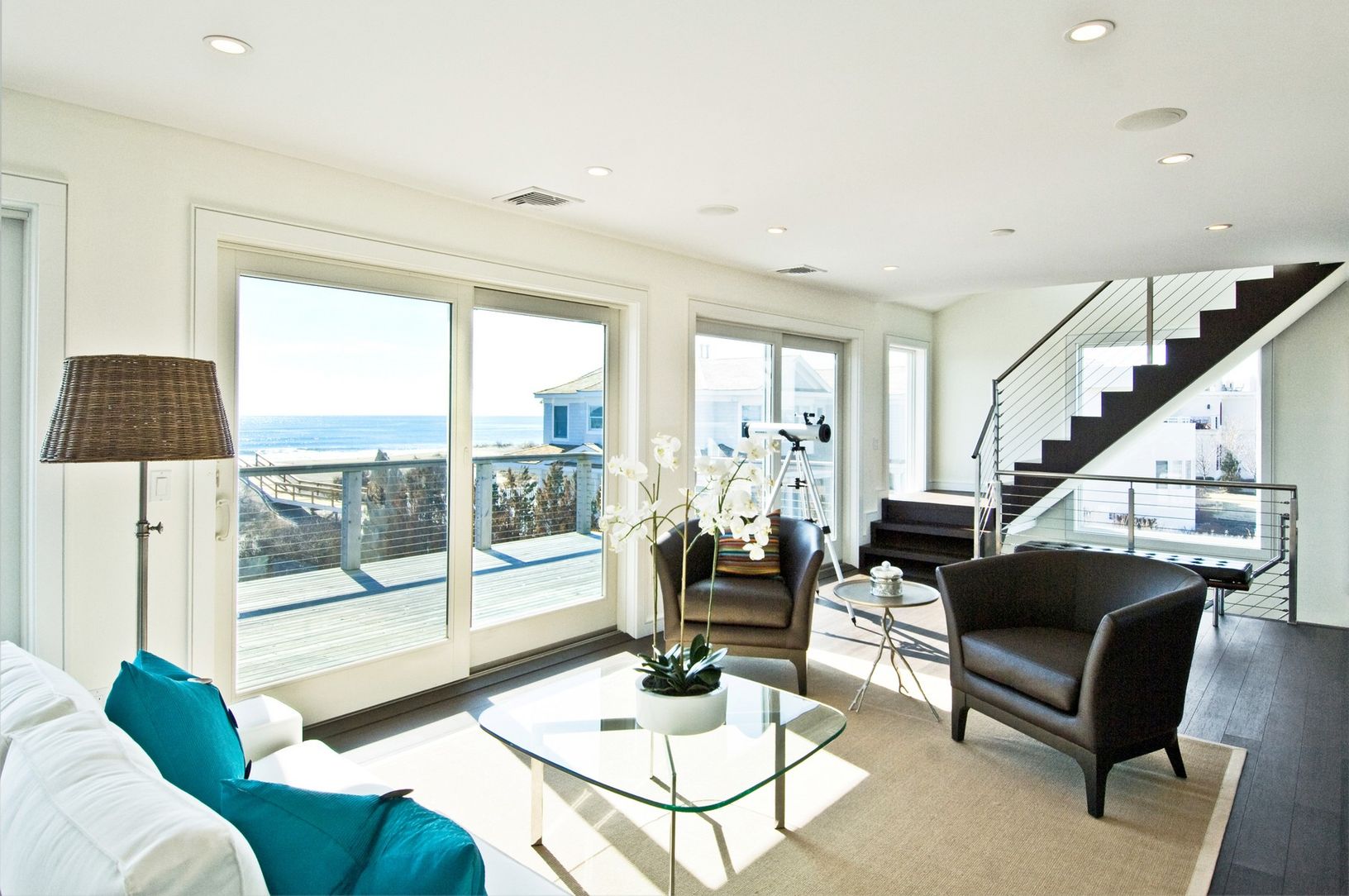 Enjoy your full view over the sand & dunes. Newly completed, a truly sophisticated beach house. A brand new "modern barn" with 300 feet of sand & protected dunes between the front door and the Atlantic. Built to exacting specifications, the exterior mimics a beachfront country barn, paying homage to the history of the East End. The interiors are the epitome of today's Modern. The stage is set: Enter to a palette of white walls, anc