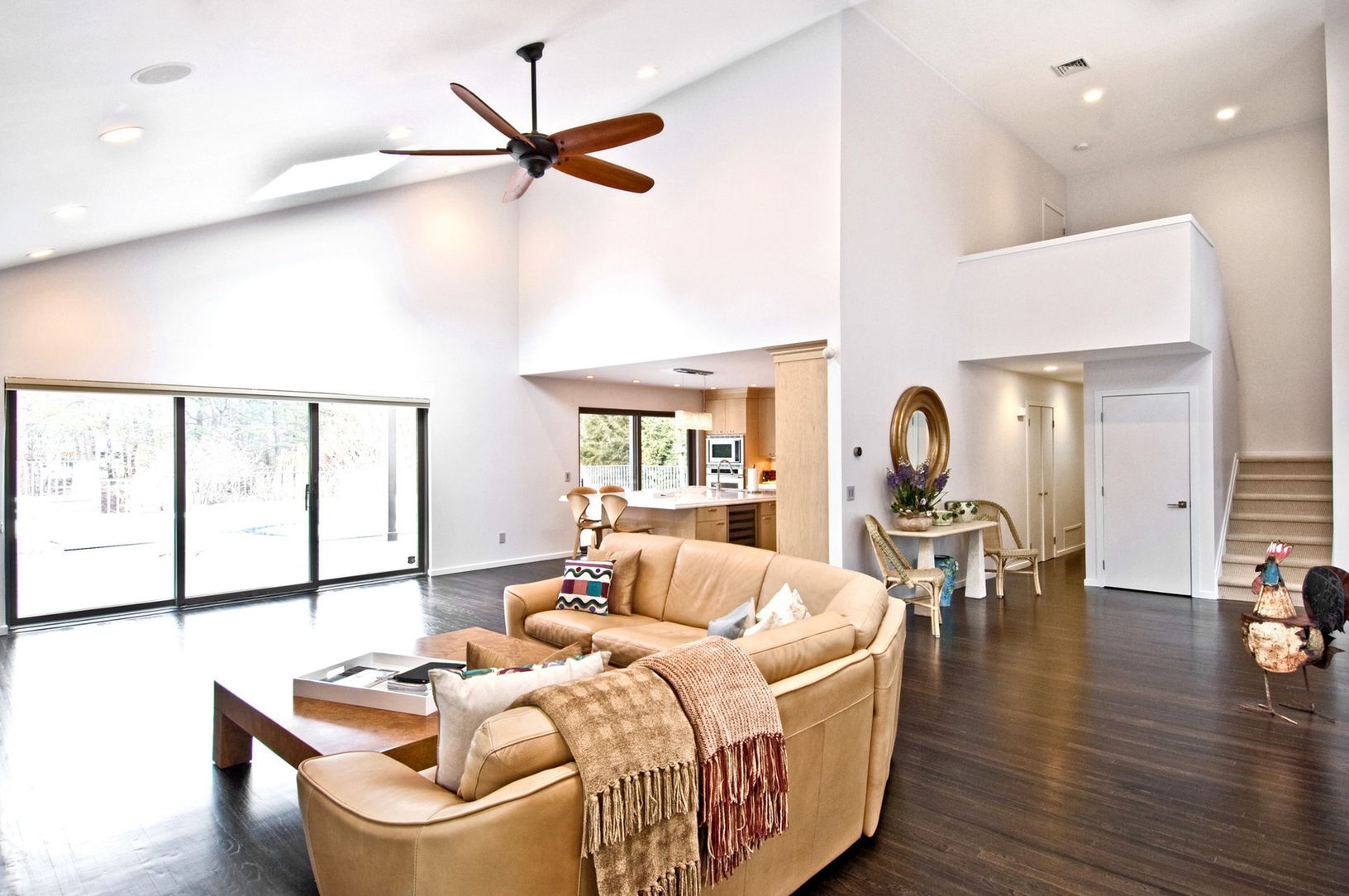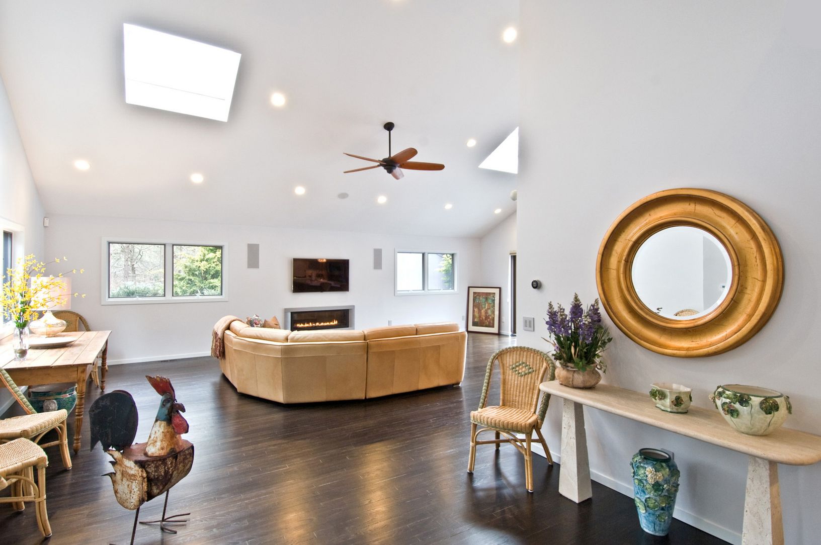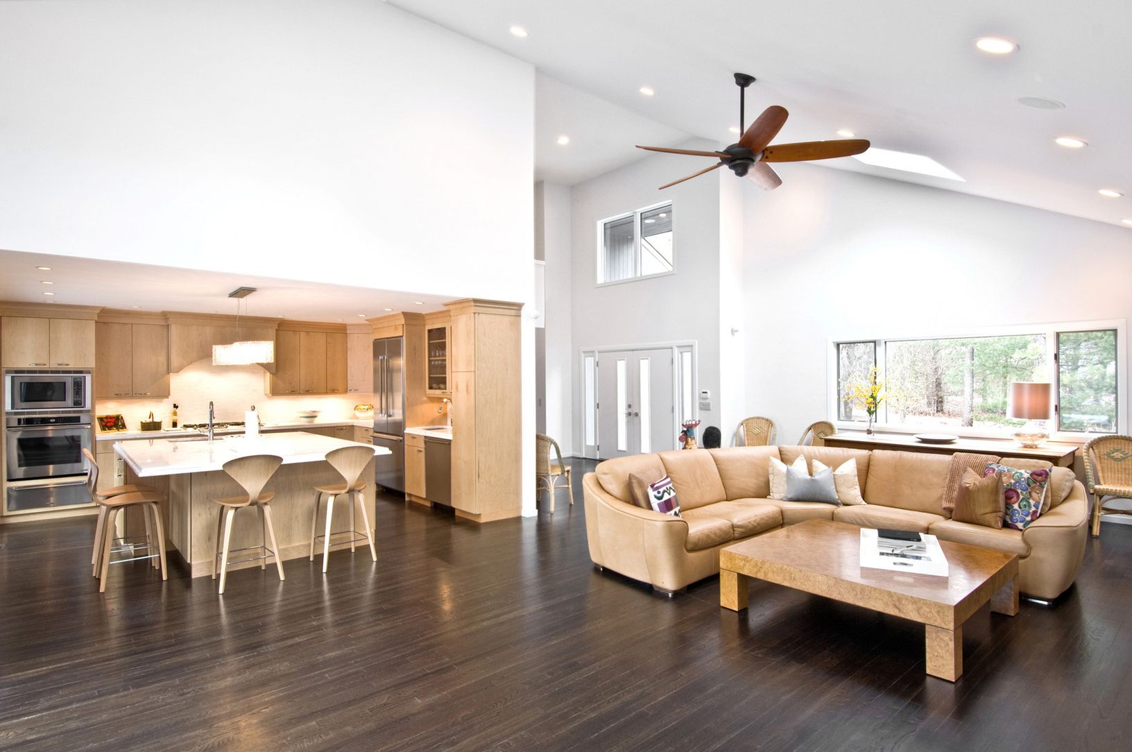 Just finished, a fab modern renovation. Huge great room with double height ceilings, dramatic modern horizontal Chrystaline fireplace and magical lighting. Glam new oversized kitchen features buffet sized island, highlighted with modern chrystal wave ceiling fixture, maple cabinets, white granite countertops, tactile stone backsplashes & the best appliances money can buy. Stainless steel appliances include 2 dishwashers, bar sink, wine f