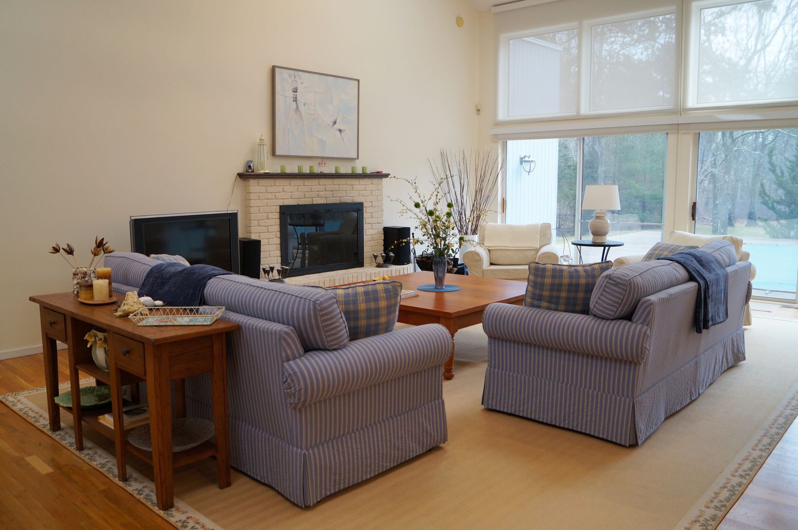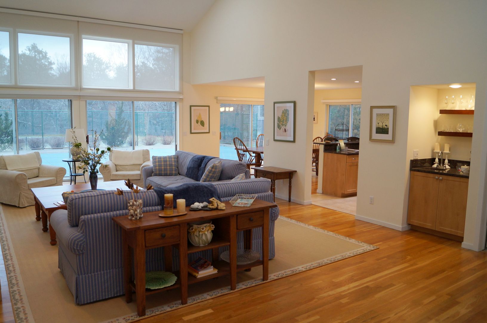 Beautiful contemporary set on a mature landscaped acre... With living room with wet bar, fireplace, dining room, granite kitchen, downstairs master suite, junior suite and three additional guest bedrooms and two and half baths. Complete with heated pool, Har Tru tennis court and two car garage. Just Listed! Exclusive $1,395,000