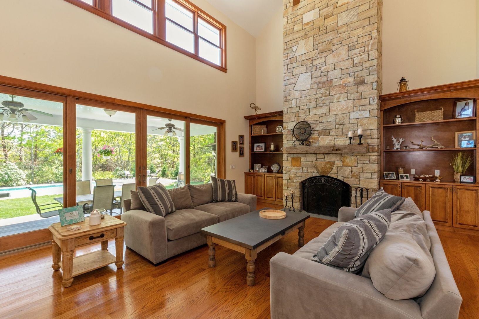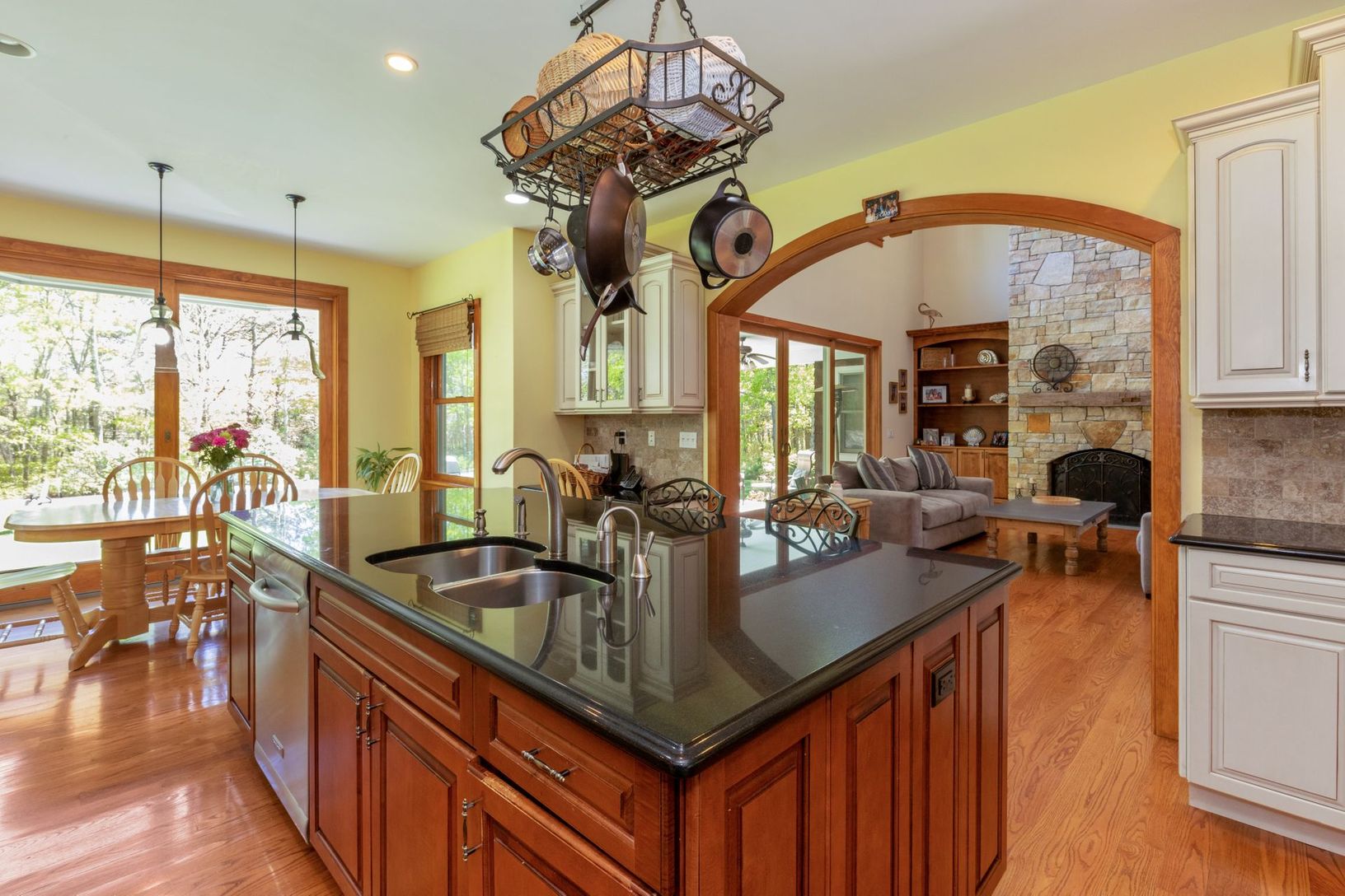 5 Bedrooms 3.5 Bath High ceilings with 2 stone fireplaces Large EIK, Viking appliances, granite counter top