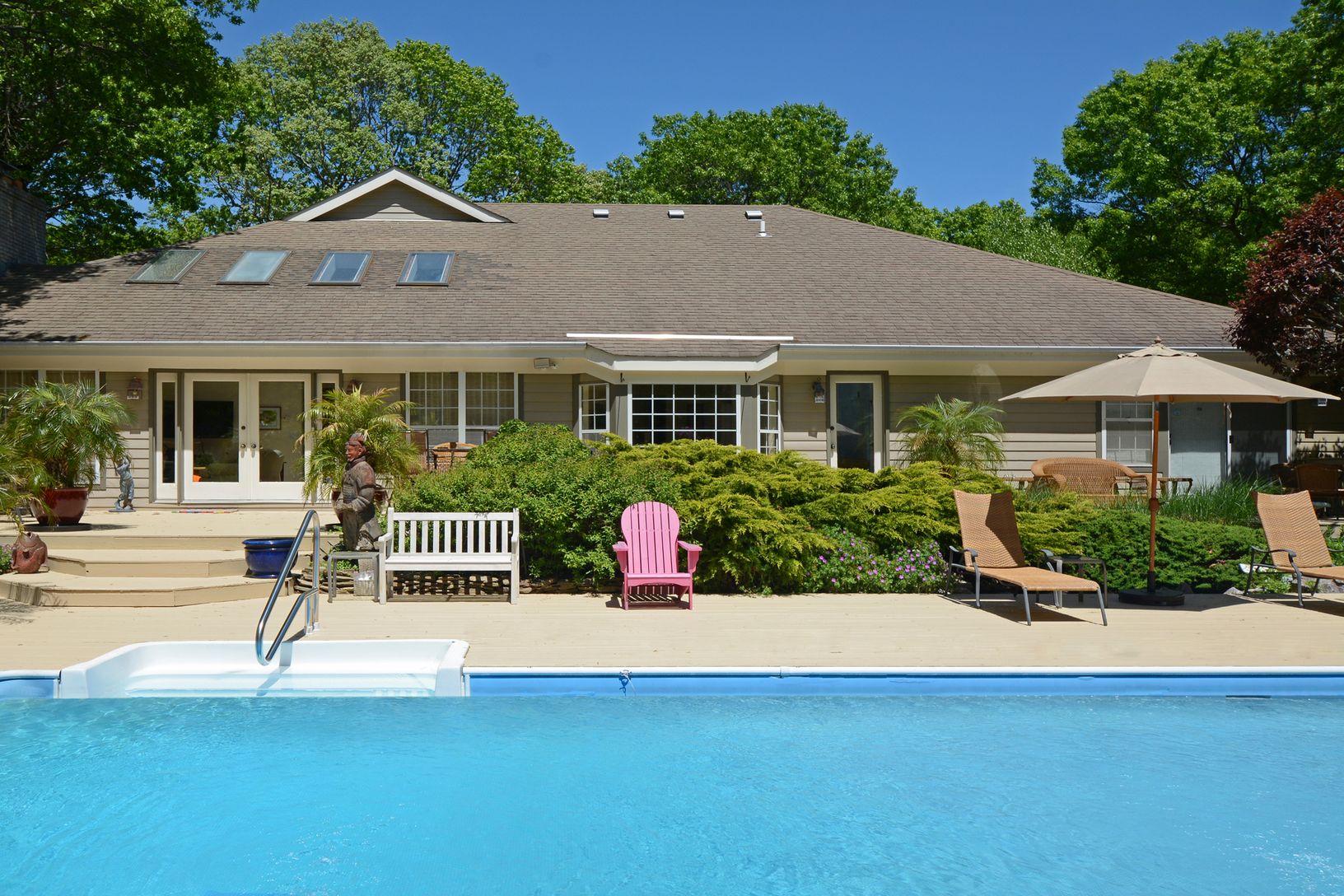 Pristine 5 bedroom post modern home located in the beautiful sub-division of Longtree Pond. Not only does this development offer community tennis and easy access to beaches and golf, serene privacy is provided by the wonderful greenbelt running through the neighborhood. The home features an open living area, 3 baths, a large deck and heated pool. Quite the spot.