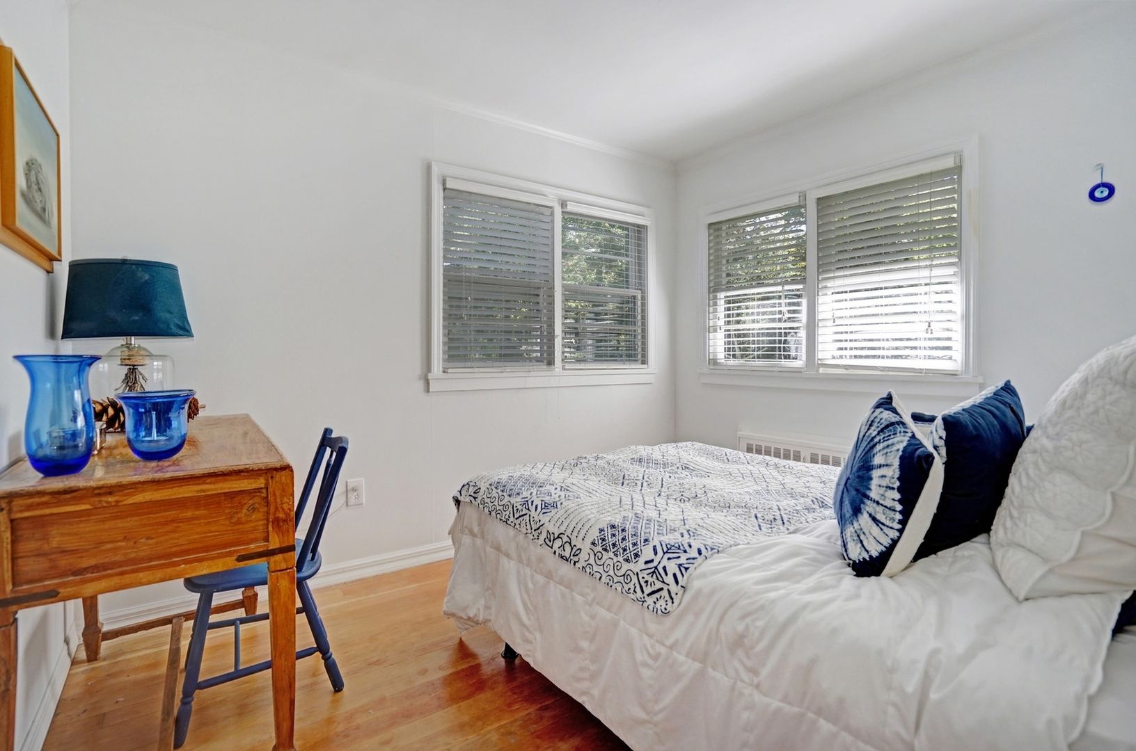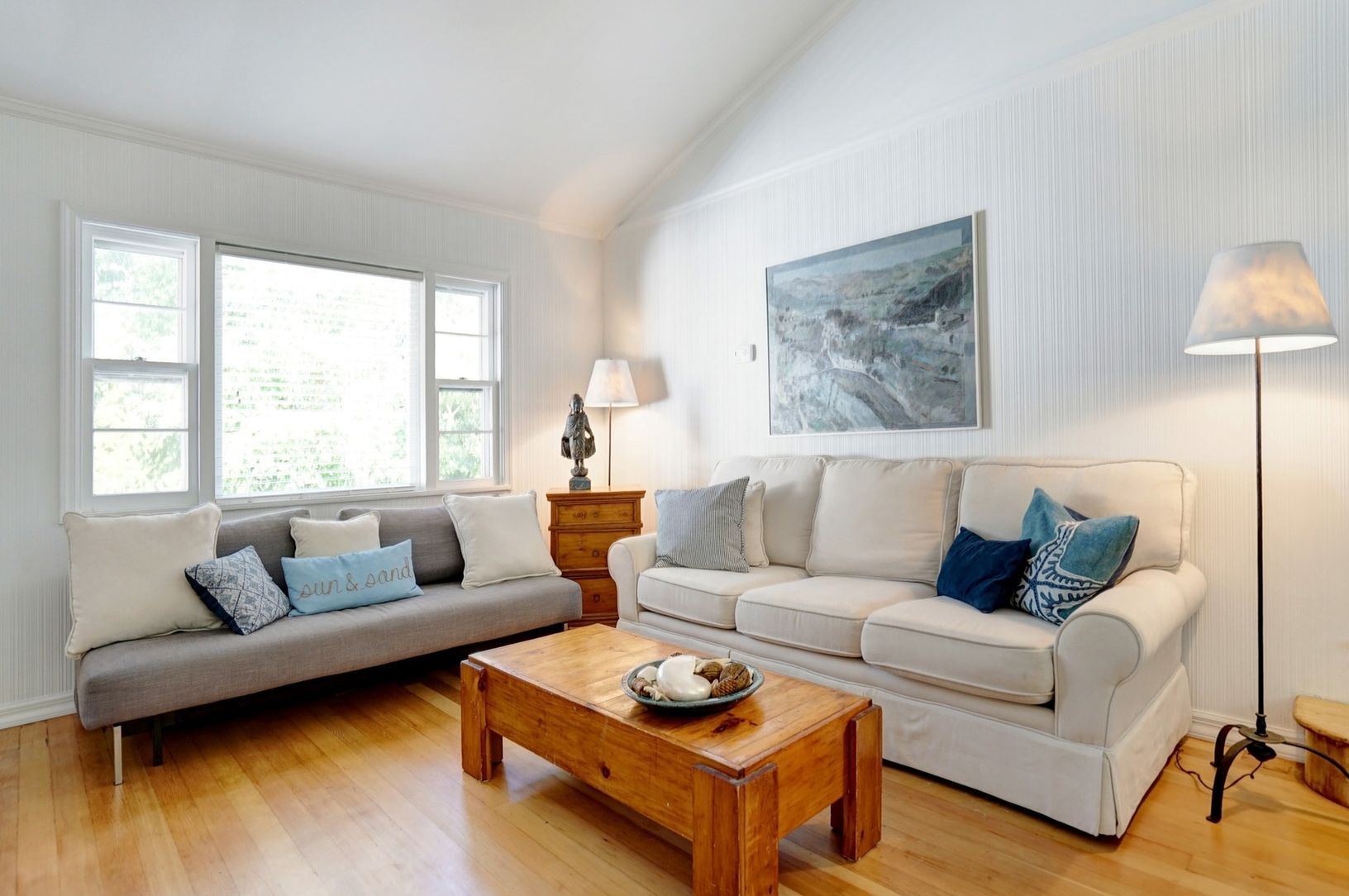 The time is now to buy this lovely home with community beach access. Beautiful two bedroom, one large bath main home with separate guest living space with bath. Hardwood floors throughout, detached 1.5 car garage, rear patio, professional landscaped property, water view, close to beach.
