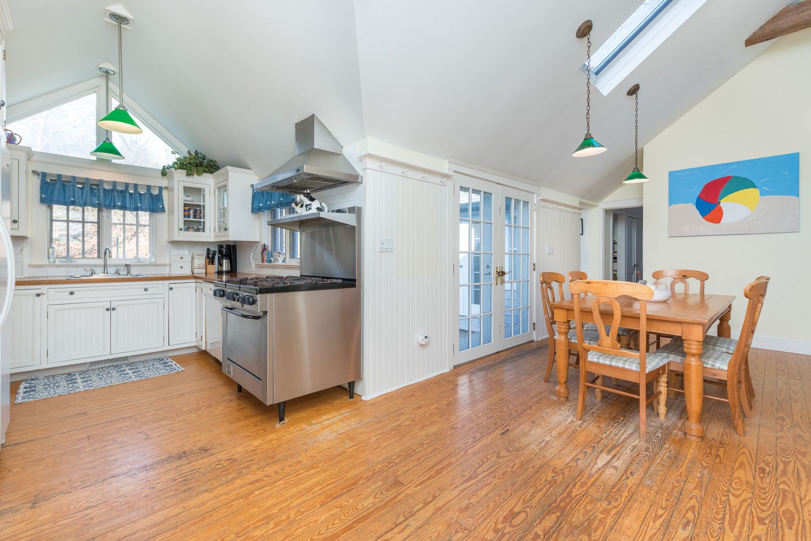 This spacious and architecturally interesting craftsman cottage located in the heart of the hamlet of Hampton Bays is value priced and loaded with charm. Renovated and owned by a top Hamptons builder, the three bedroom and two bath home features vaulted ceilings, skylights, oak floors throughout, French doors, columns and rough-hewn beams, and a loft above the master bedroom. Cooks will appreciate the kitchen's 6-burner gas range and spacious