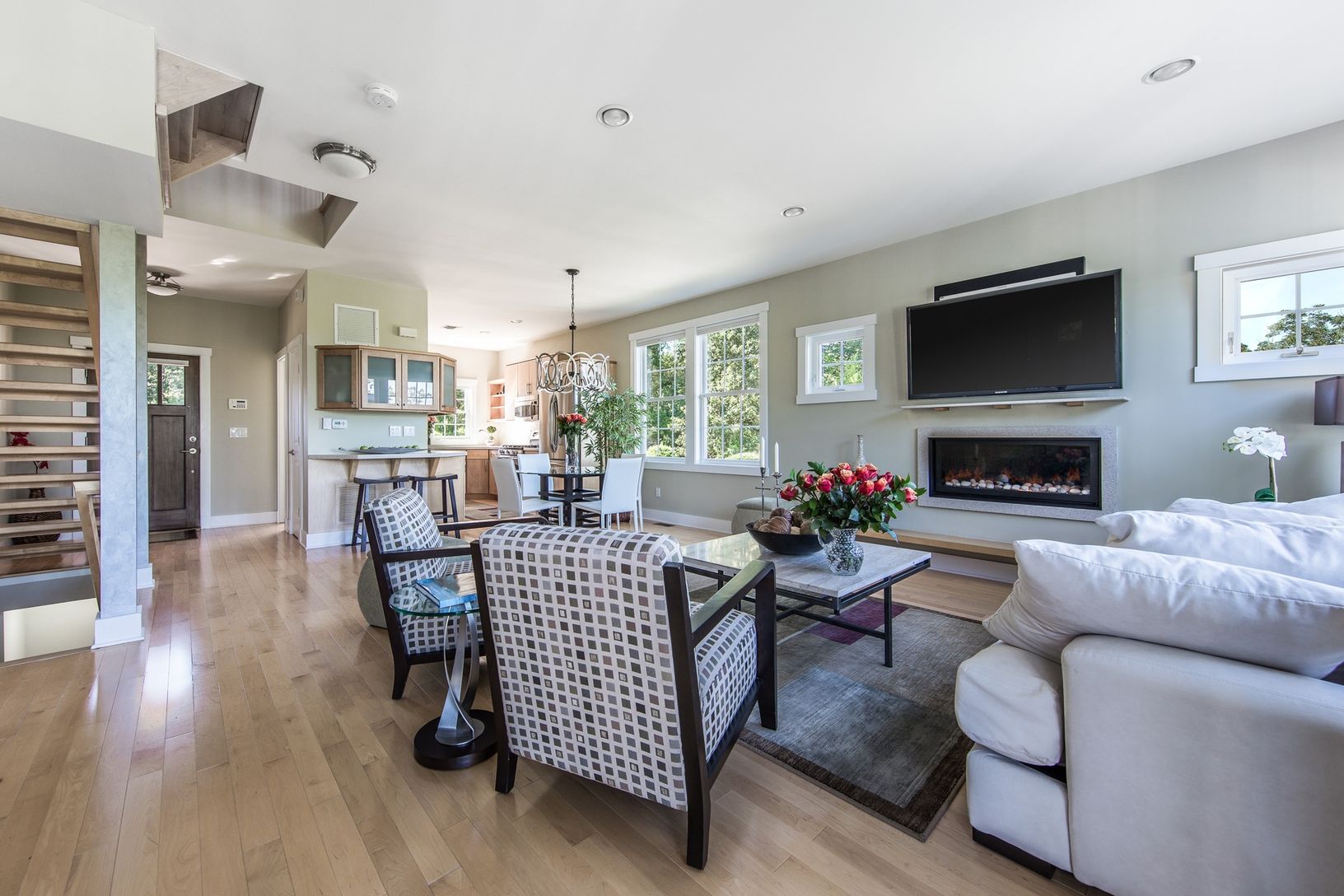 Immaculate Georgica model in Canoe Place Landing with gated entry, clubhouse, gym and heated pool. This picture-perfect end unit features 2 bedrooms 2.5 bathrooms, eat-in kitchen with custom cabinetry and stainless steel appliances, a designer gas fireplace and deck for entertaining. The second floor includes a guest bedroom and a master bedroom that boasts water views with a rear deck. There is a full 8' finished basement with glass sliding d