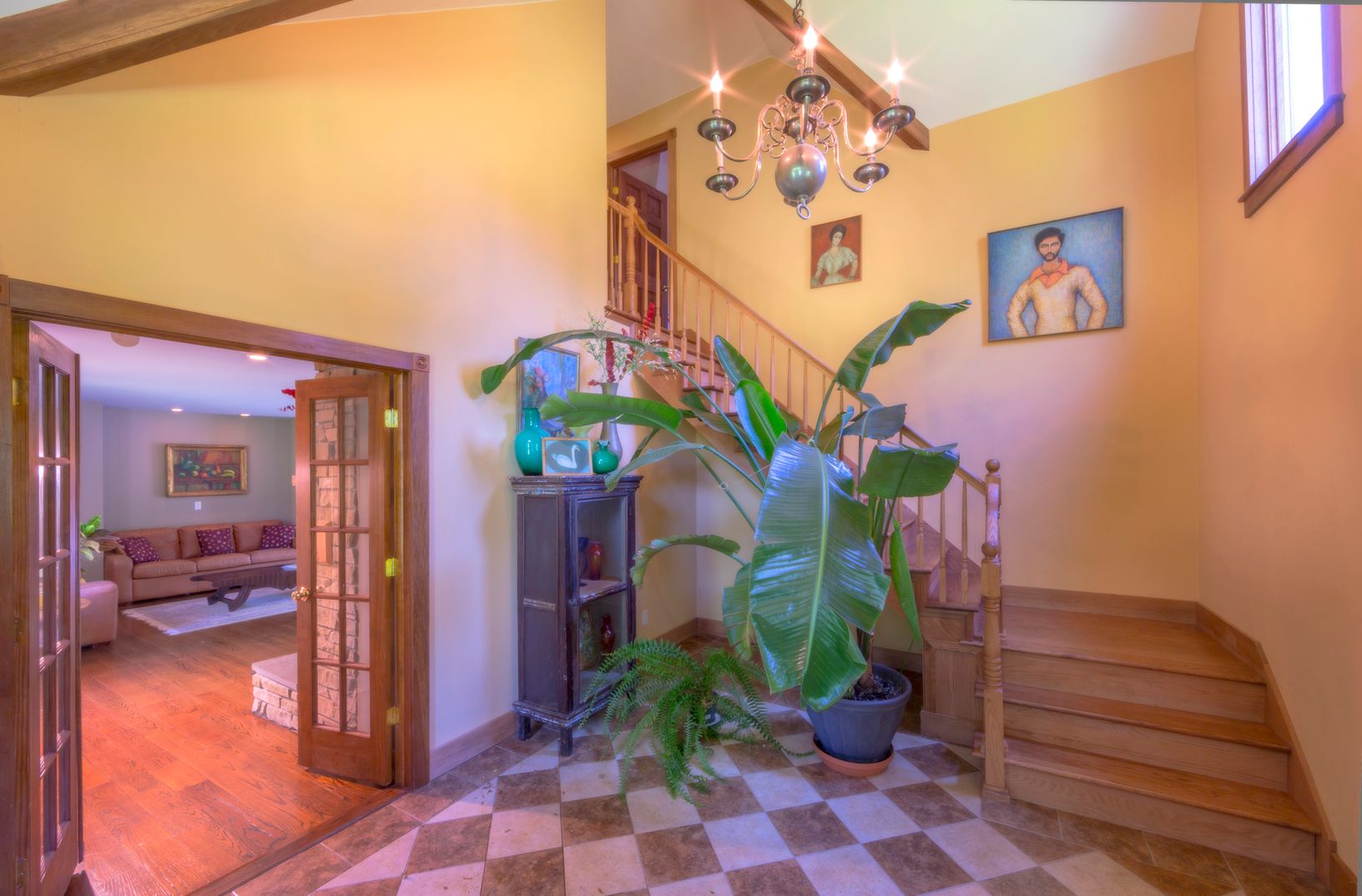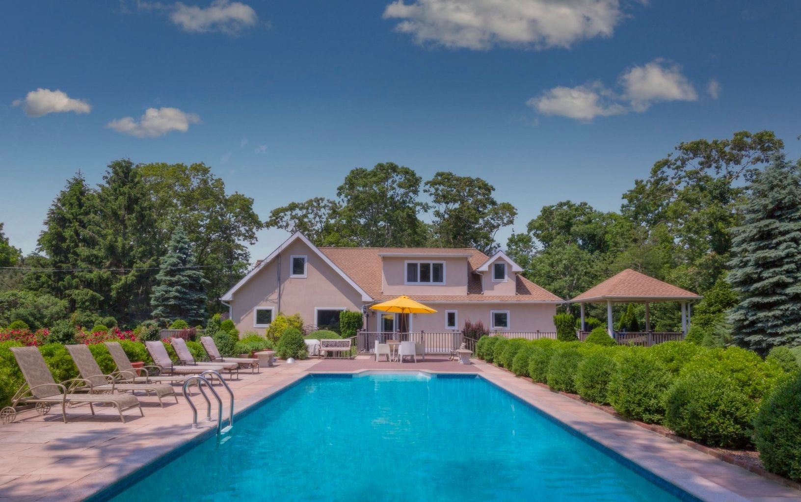 This lovely European style home in pristine condition sits on an acre of professionally designed gardens with stunning flowering perennial gardens and specimen trees. In addition to a gazebo, there is extensive mahogany decking and a heated pool. Step into the dramatic foyer with a soaring ceiling and enjoy 4 bedrooms, 4 baths, a generous sized great room with a stone fireplace and a large country kitchen. There are two master suites, one on