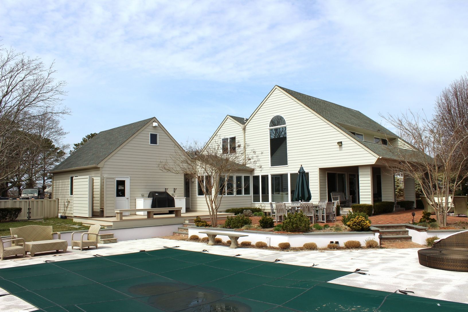 All the best! No worries...Hurricane Sandy did not damage this property in any way. High above sea level and out of the flood plane. Deep Water Dock and Jet Ski Ramp. Landscaped private bulkheaded acre! Heated Gunite Pool with jacuzzi and waterfall. Outdoor beach shower. Multi level gardens, patios and porches. Wonderful cathedral living room, cozy den with fireplace and formal dining room. Spectacular cook's kitchen with every amenity in