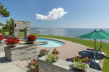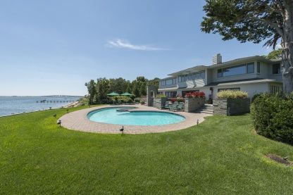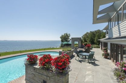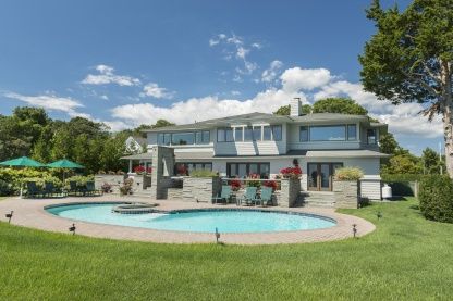 180-degree bluff front views are yours from this open and airy contemporary! Masterfully designed by William F. White and executed to perfection, this remains a home that was designed for today. The master suite affords commanding views, sitting area and a new master bath. Two more en-suite bedrooms, billiards/exercise room, den, dining and gourmet kitchen make for easy year-round living. A gunite pool surrounded by a bluestone terrace and bar