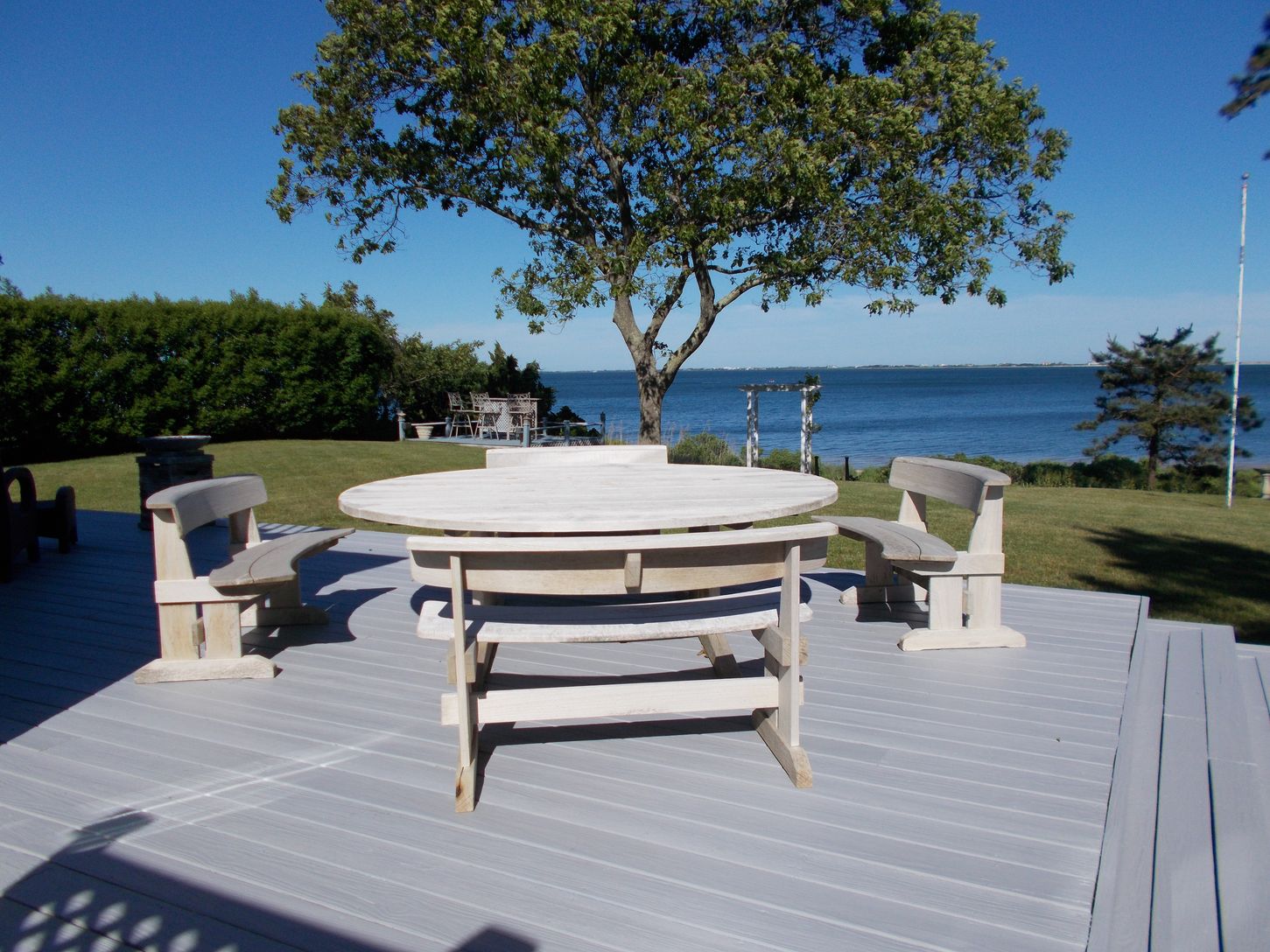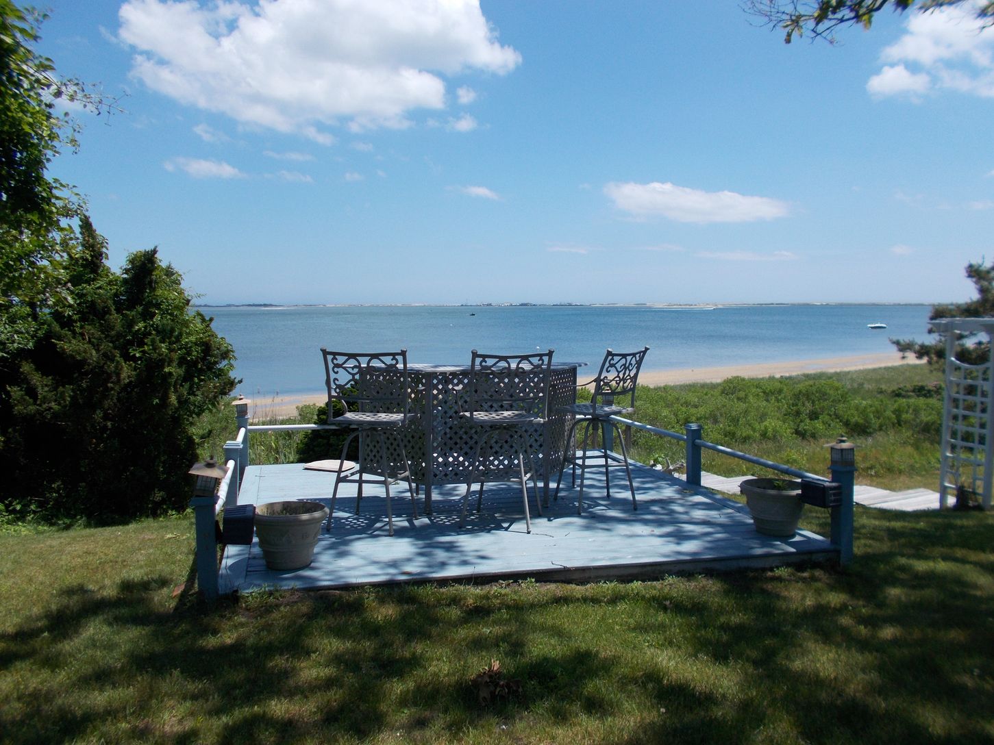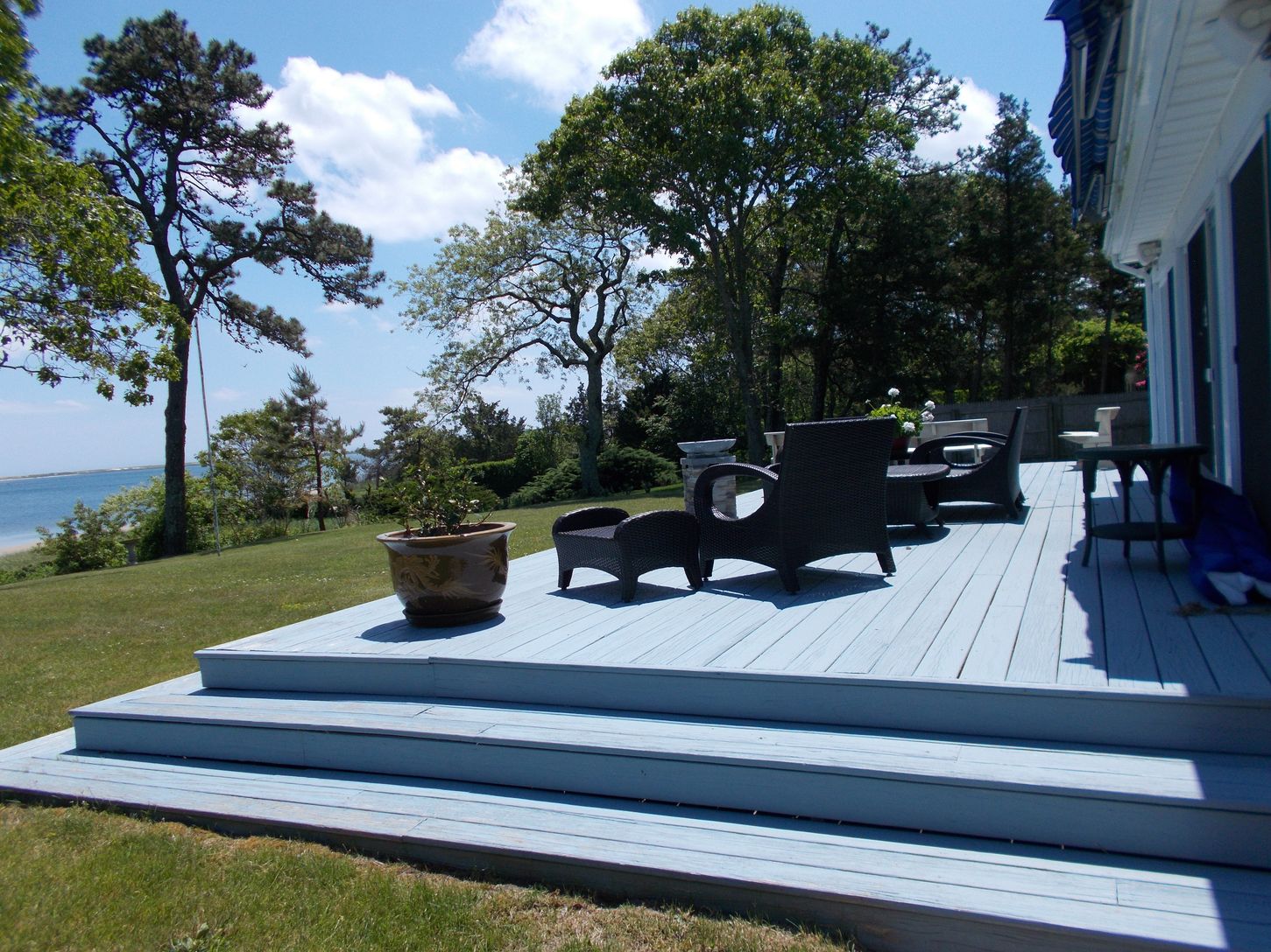 This waterfront summer rental offers beautiful panorama views in a traditional style setting - plenty of outdoor seating and with wrap around deck offering enjoyable summers outdoor - This home offers living room with fireplace ,, sunroom overlooking Shinnecock Bay, formal dining room ,eat in kitchen ,