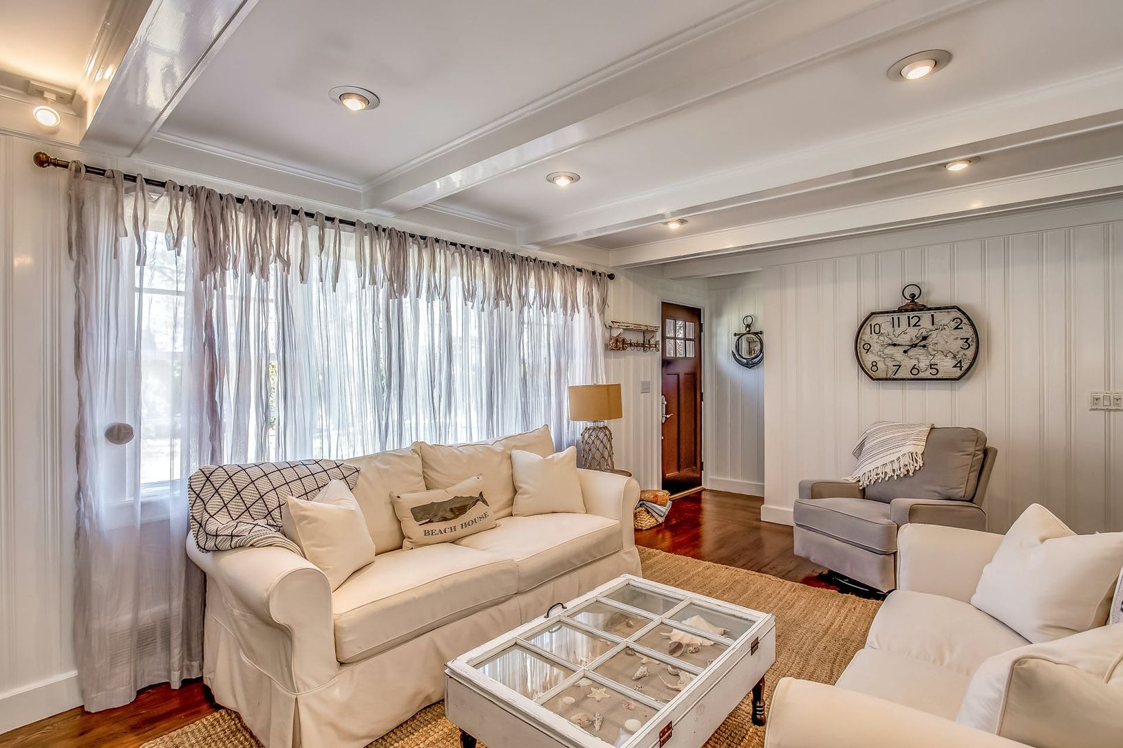 the most charming 2 bedroom, 2 bath ranch on 1/2 acre of endless possibilities. Full finished basement, with gym, bath, laundry, office and bonus room. Mint condition and the perfect aesthetic. The perfect year round "beach house" with beautiful decking and detached garage. Renovated with fabulous interior design. You won't want to miss one!