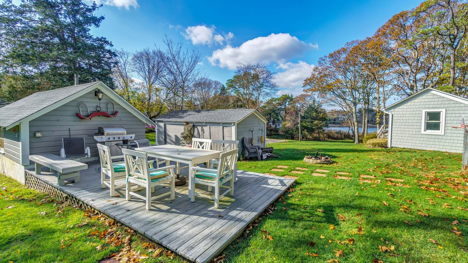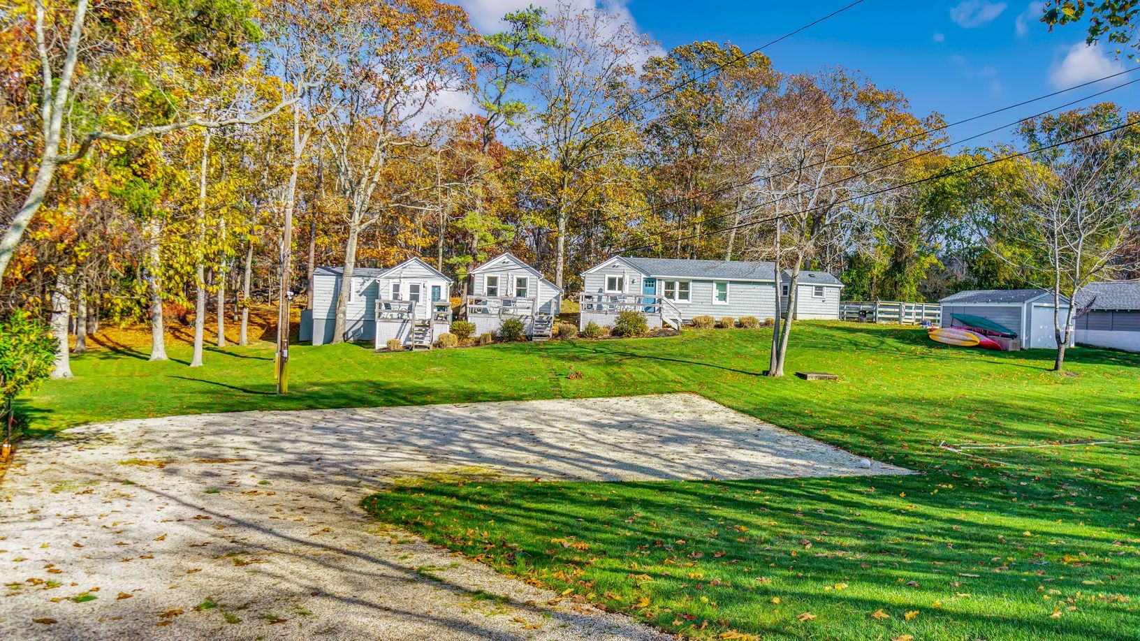 Chic and Cozy One-Bedroom, Waterfront cottage, beautifully renovated and awaiting your Summer arrival! There are (2) One-Bedroom cottages from which to choose, both of which offer tranquility, amenities and enjoyment galore! With Red Creek Pond accessible from the property's private dock with lighting, tenants may opt to take the available Kayaks and Canoes out to the Peconic Bay or rent some SUP's to explore the area! Local Bay beaches are wi