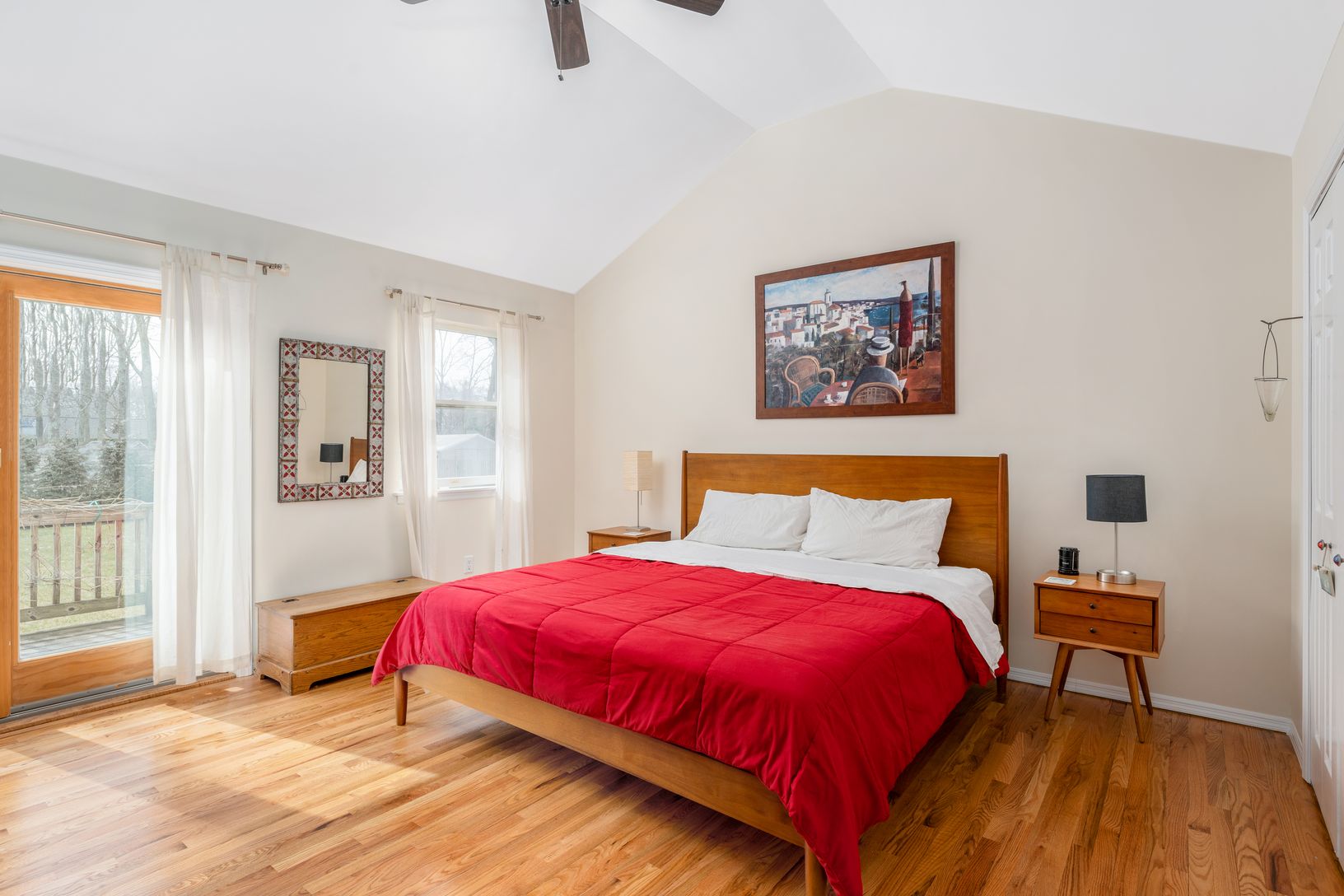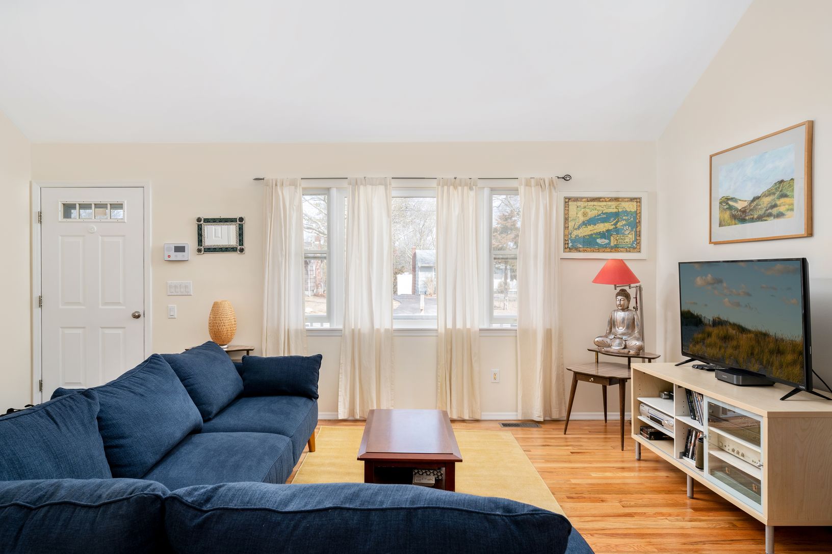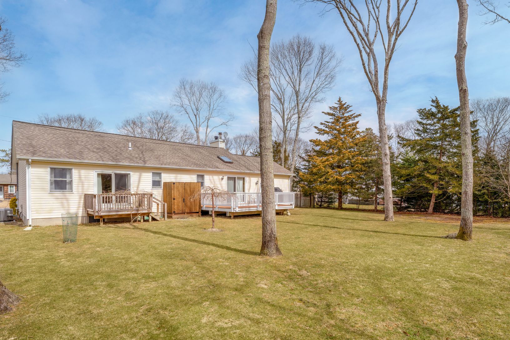 Head to the beach without any hassle at this inviting three-bedroom, two-bath contemporary in Hampton Bays. Sited on a private road that's located approximately half a mile from Peconic Bay and just 2 short miles from the ocean, it's spacious, peaceful and comes with an outdoor shower, large backyard and a nice pair of decks. Easily accessible by train, the home has Central Air, and is fully furnished and ready for you to come enjoy the summer