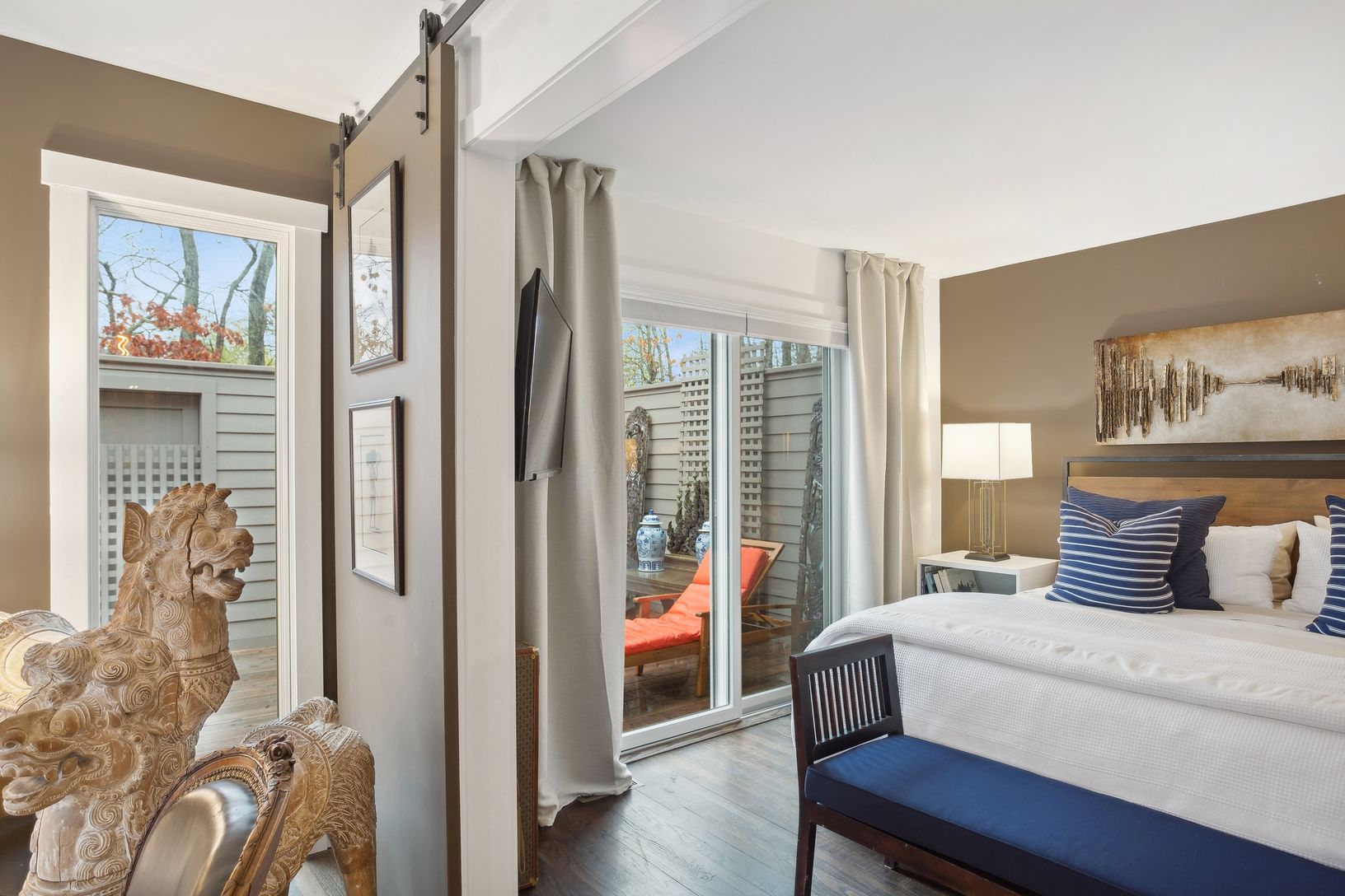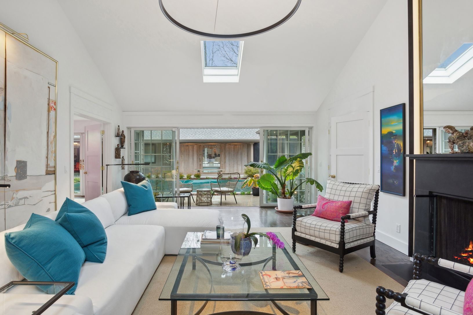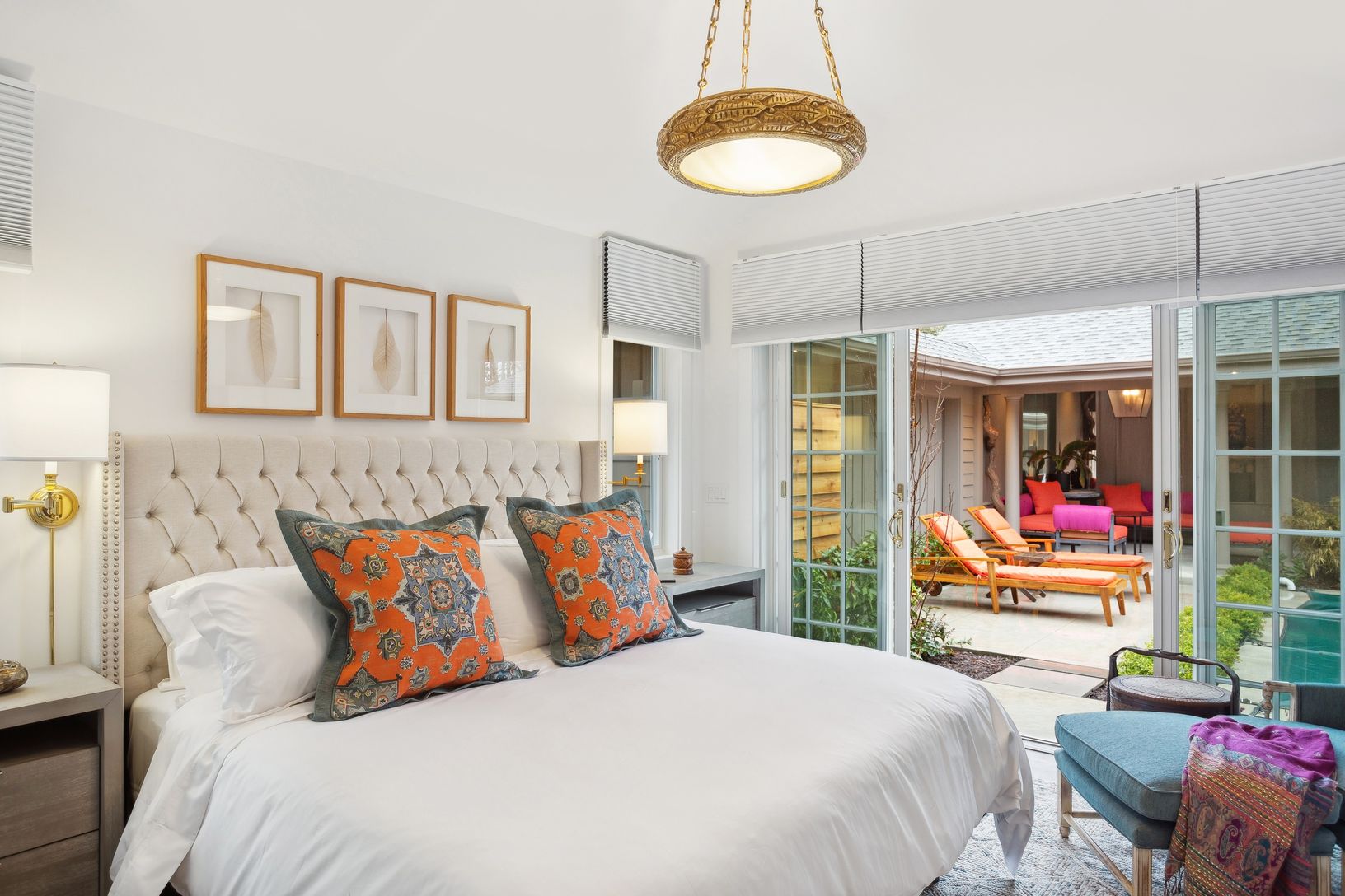 A must see for the discerning eye, this deliberately understated residence seems to be tucked away in the middle of nowhere, while very much in the center of everything. The mindfully designed interior of this elegant one level home blossoms with color, space and natural light. Of the three en-suite bedrooms, the two primary bedrooms open into the cloistered pool area. This completely private sanctuary is drenched in sunshine throughout the da