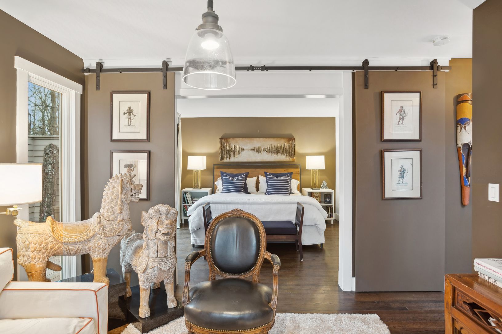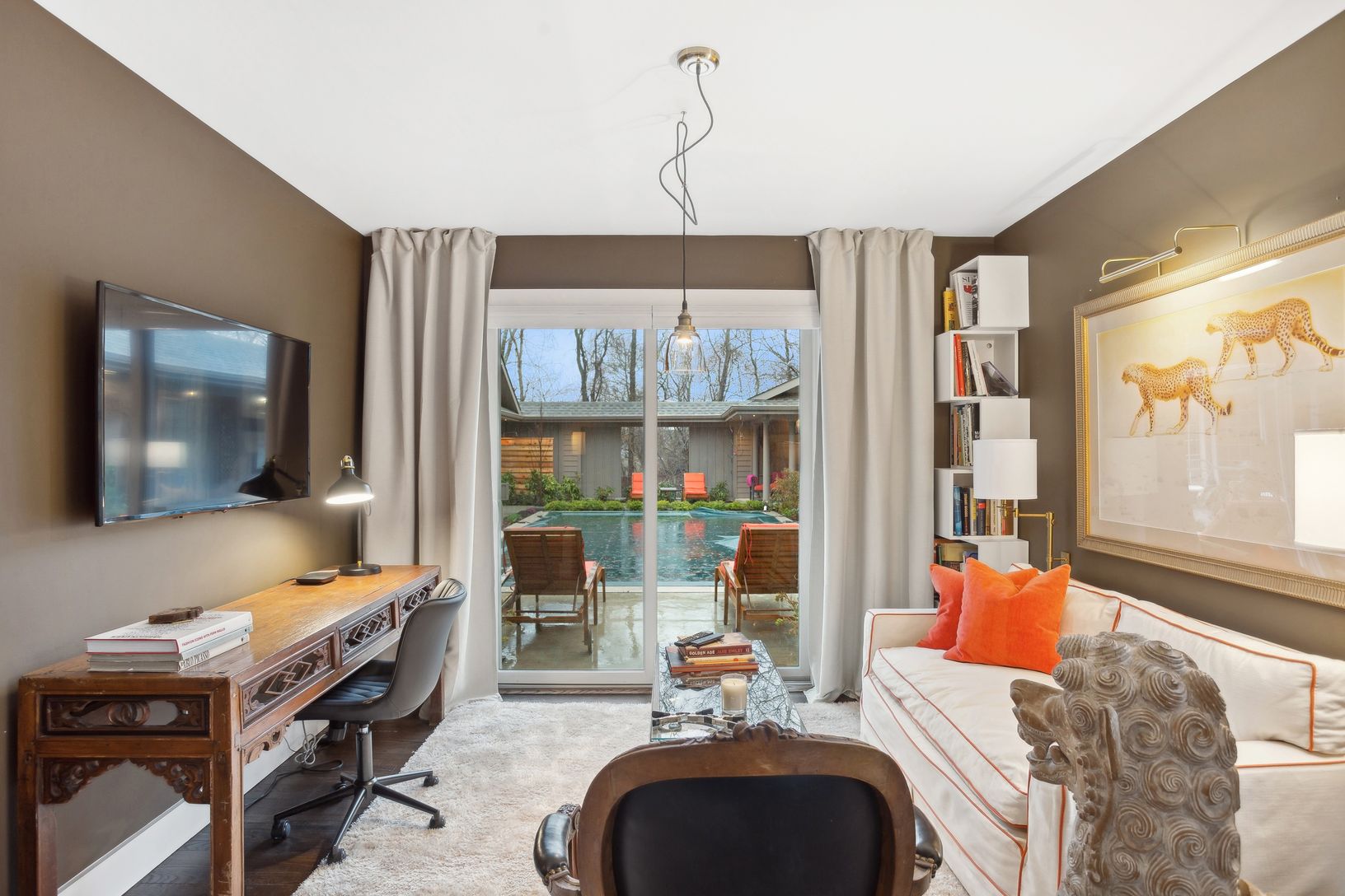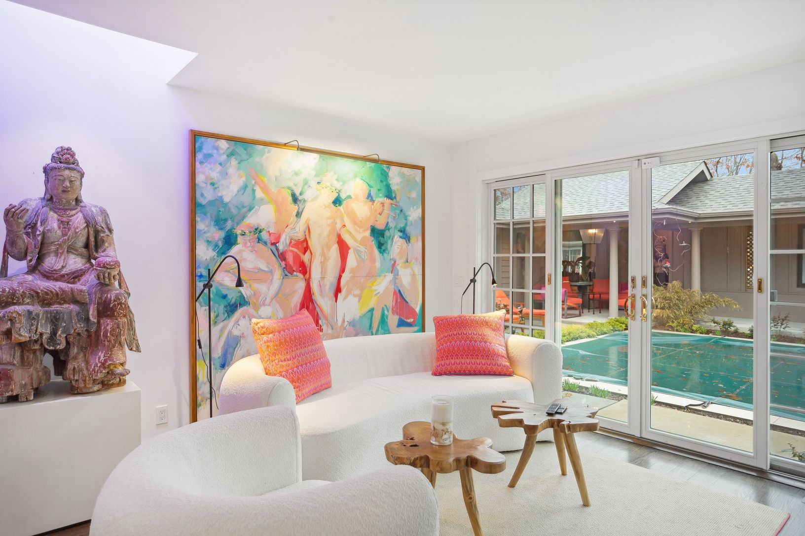 A must see for the discerning eye, this deliberately understated residence seems to be tucked away in the middle of nowhere, while very much in the center of everything. The mindfully designed interior of this elegant one level home blossoms with color, space and natural light. Of the three en-suite bedrooms, the two primary bedrooms open into the cloistered pool area. This completely private sanctuary is drenched in sunshine throughout the da