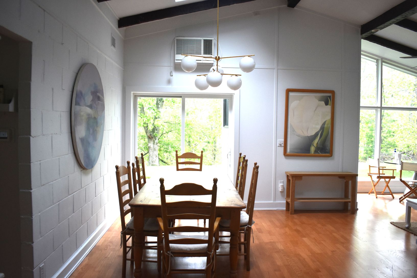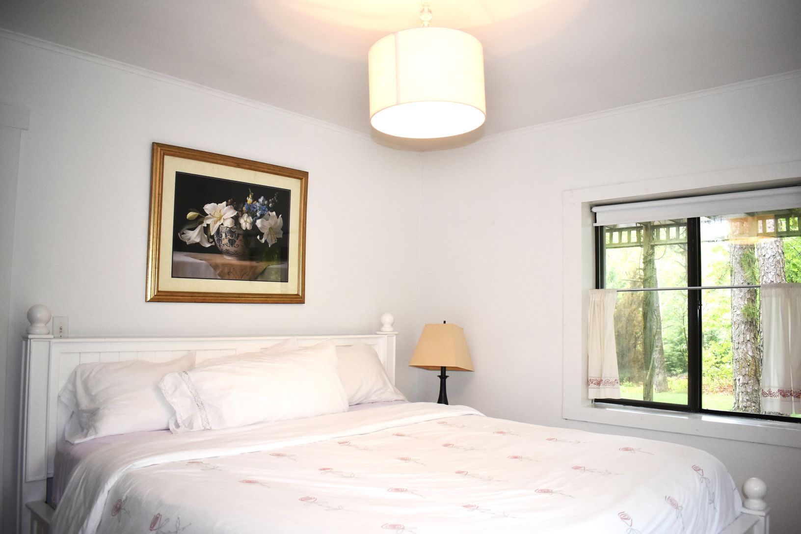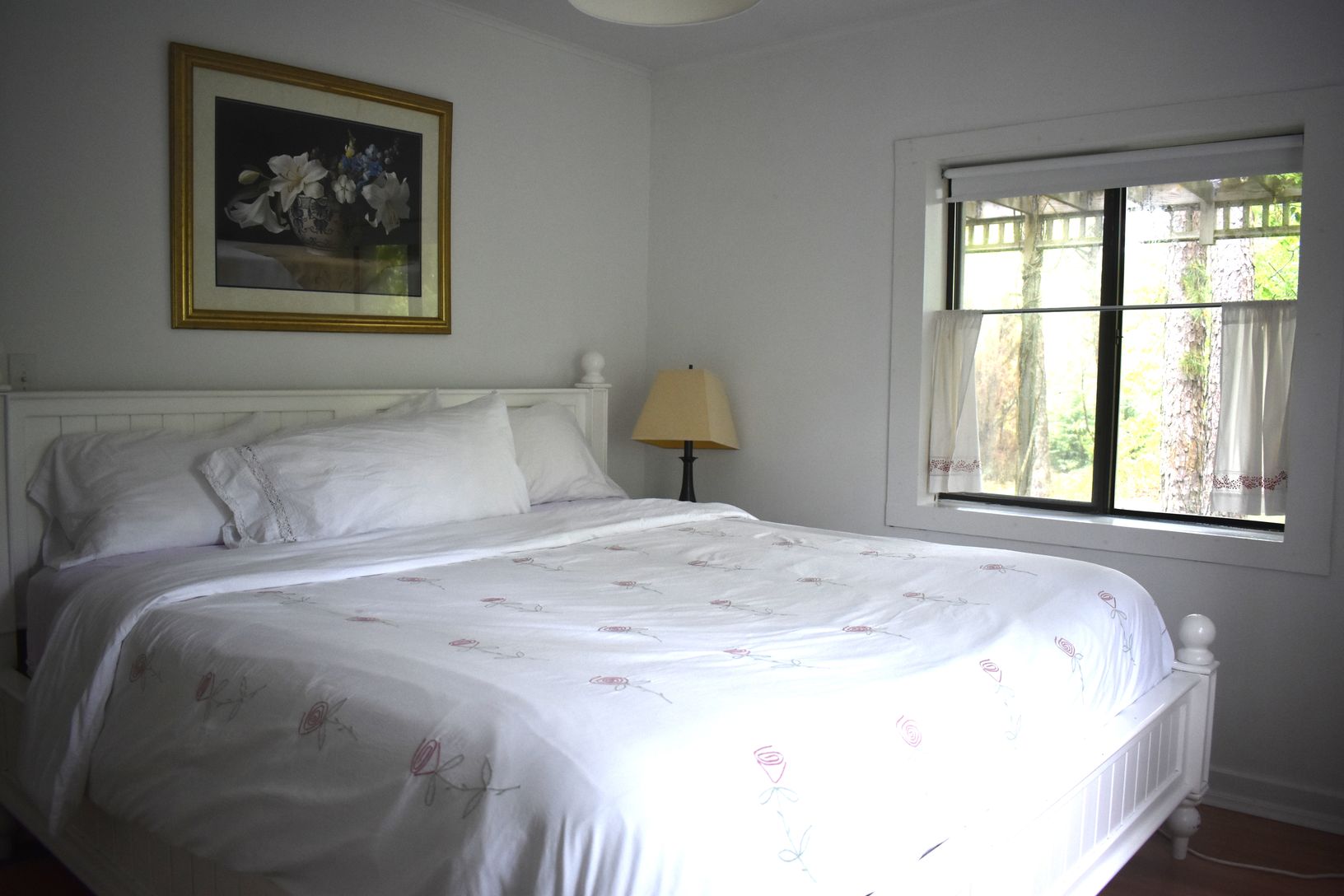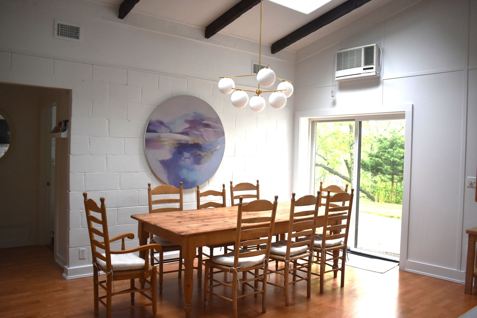 This home is available for the off-season only, not available for year round. The bright and light-filled bungalow features an open floor plan and lay-out with sliding doors and sky-lights letting in plenty of natural light. The newly renovated, fully equipped kitchen with stainless steel appliances leads to a dining area for eight people, with sliders to the back yard. Next to the dining area is the living room with an additional table and ch
