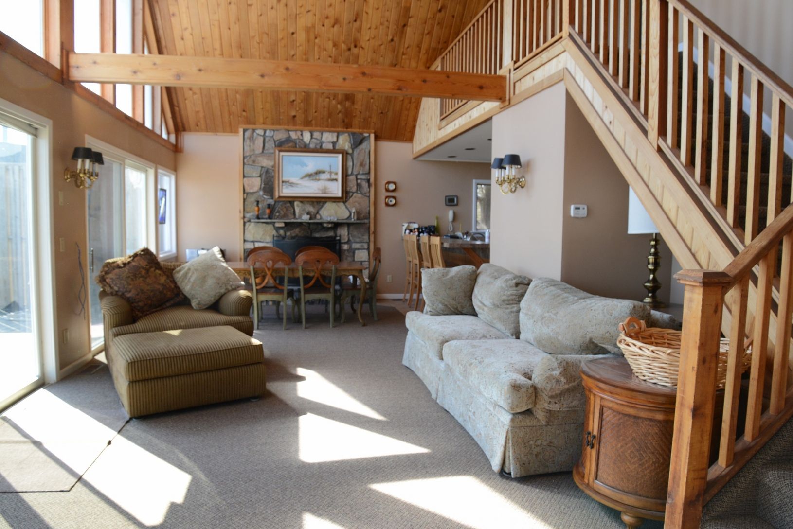 Fabulous views from this four bedroom waterfront gem. Great room with fireplace, large gathering room, three bathrooms, and a deck to enjoy beautiful sunrises and sunsets. A special offering.