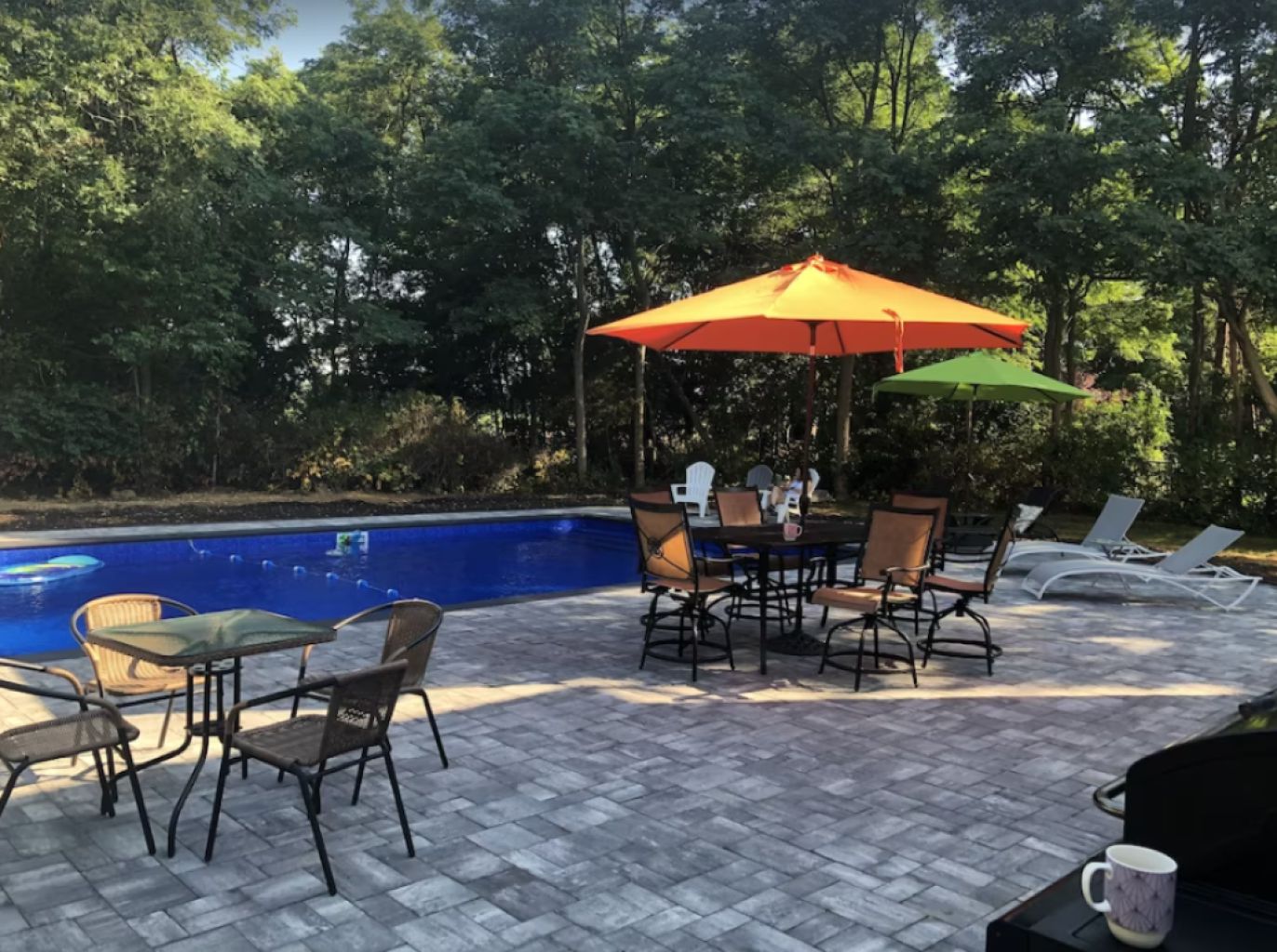 Beautiful 4 Bedroom 3 1/2 bath colonial style home which sits on an acre of land. Two of the bedrooms each have a queen size bed, the other two bedrooms contain full size beds and one also has a single bed. There is also a queen size sofa bed in the basement, so the house sleeps 10 comfortably. The front porch is great for reading a book, sipping a glass of wine, or just spending quality time with family and friends. The house is walking dista