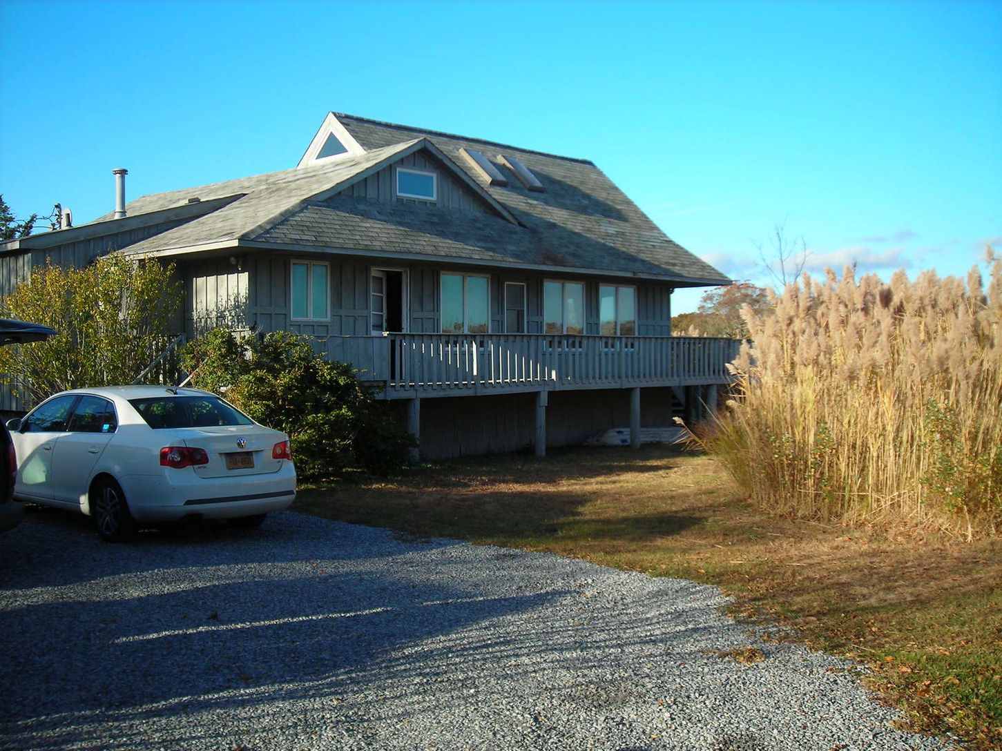 "Hidden Jewel" tucked into an ever-growing popular spot to spend your life. Located on a half an acre w/ direct access to the spacious 108 ft. waterfront. Front of house faces north. Extraordinary light, nice breezes. View of Peconic Bay. Wraparound deck. Private deep water dock access, boat slip available! Sea-goers apply!