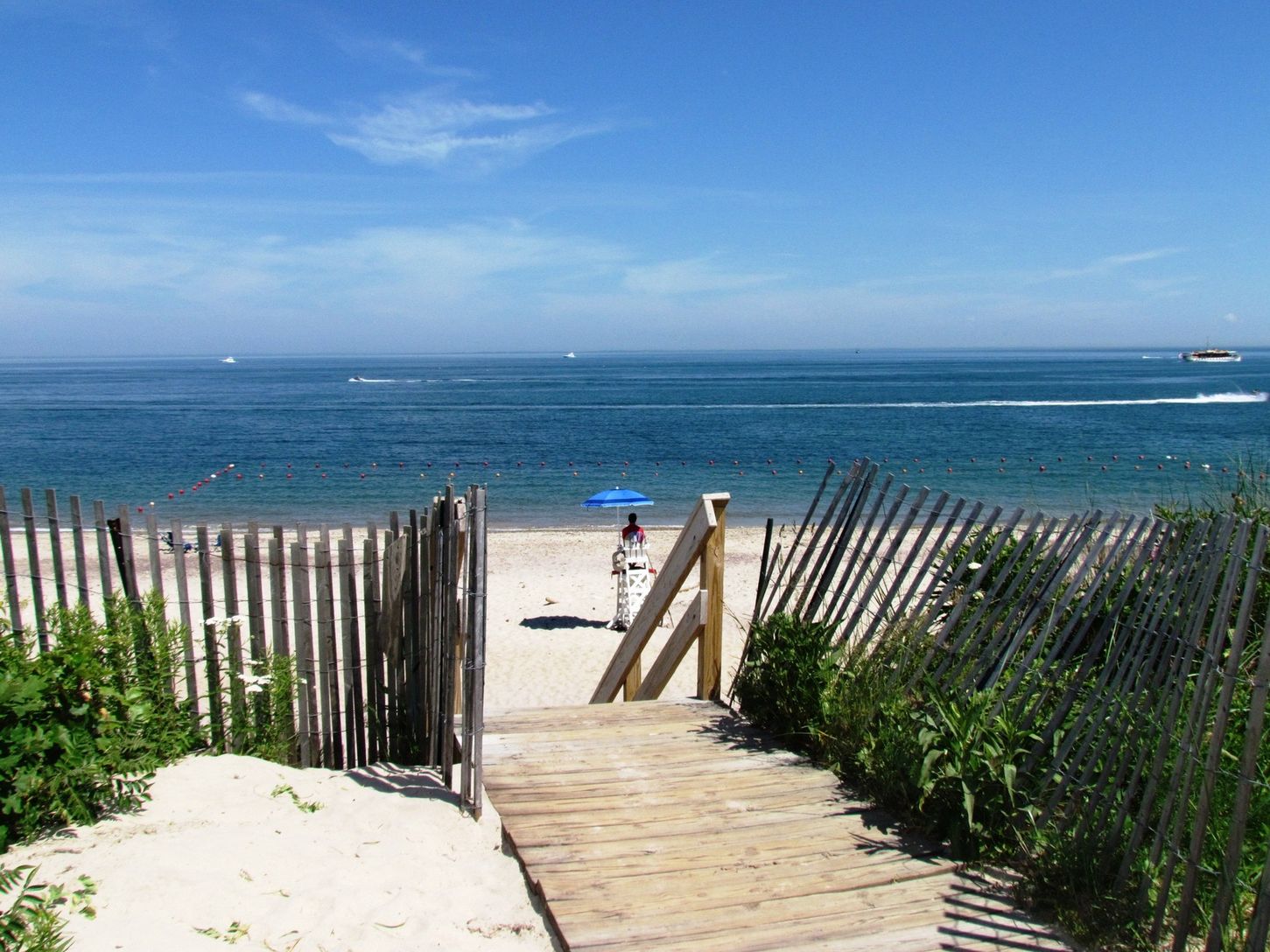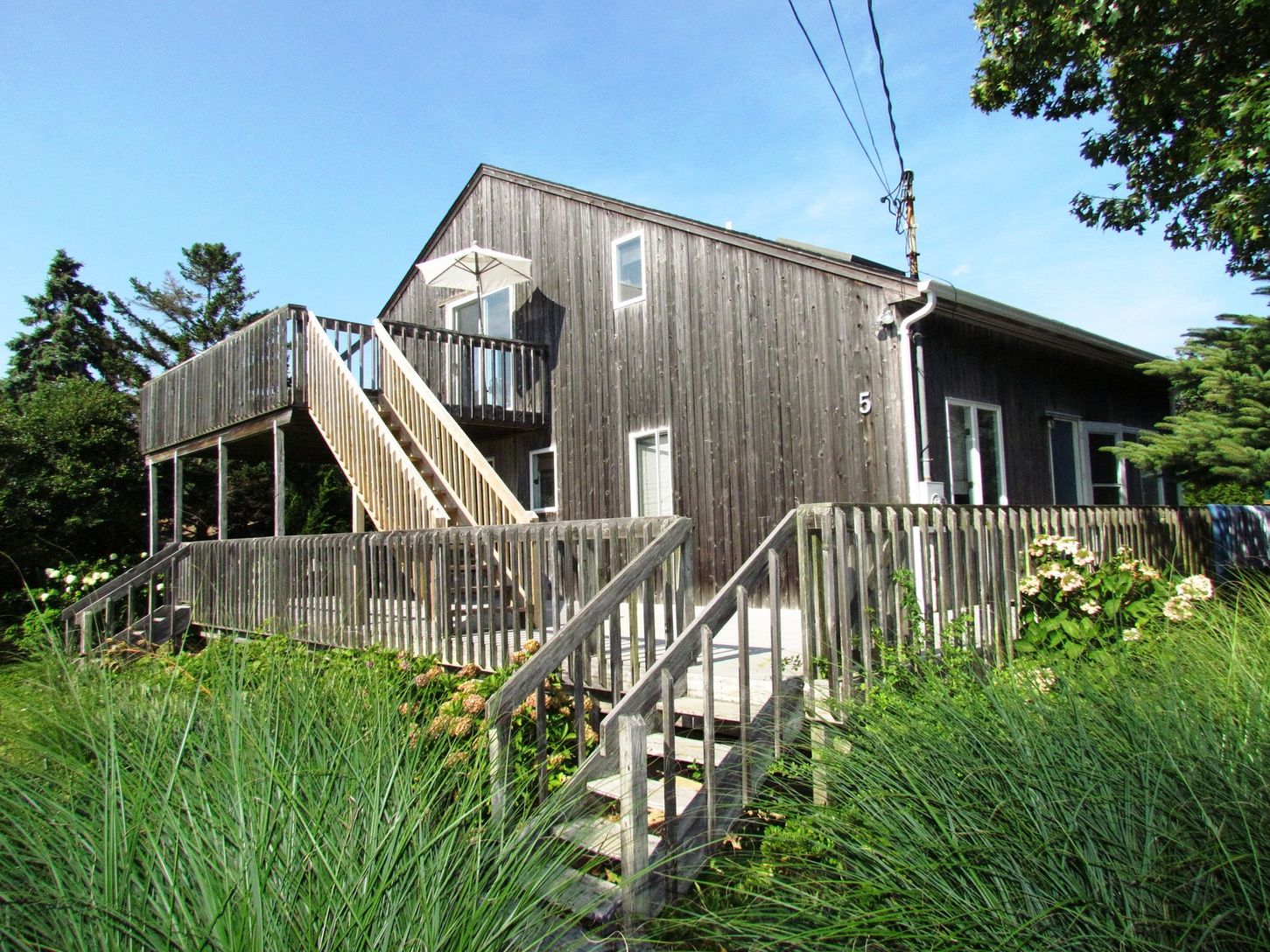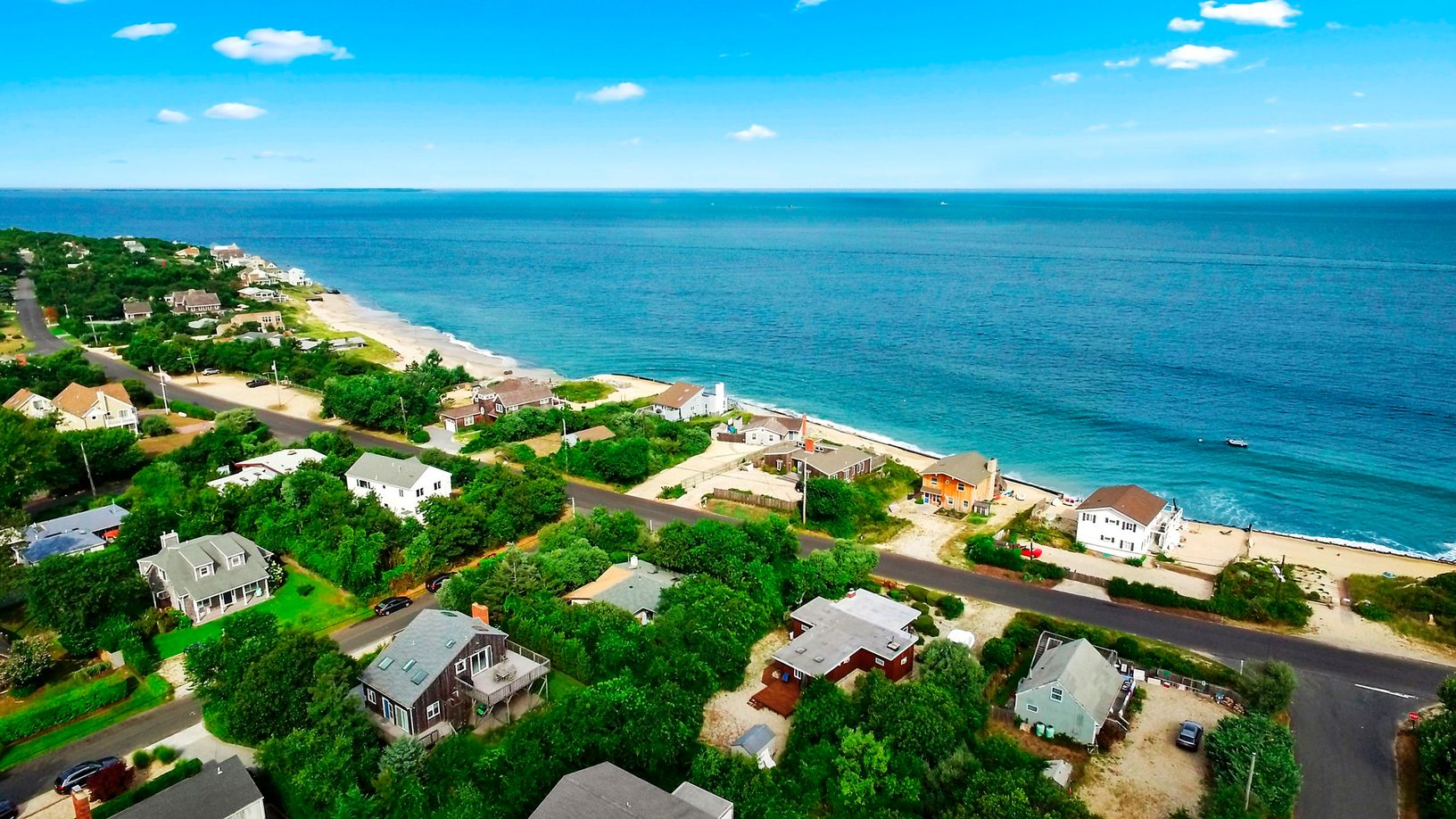 Enjoy close proximity to Culloden Shores private bay beach and Montauk Harbor from this welcoming 4 bedroom, 3.5 bath contemporary home with Block Island Sound water vistas. The home offers bright beam accented cathedral open living space, central island kitchen, fireplace, expansive multi-level decks, outdoor shower, wood floors, beach side landscape, central air conditioning, game room, gym, TV lounge, all just moments to the sandy private