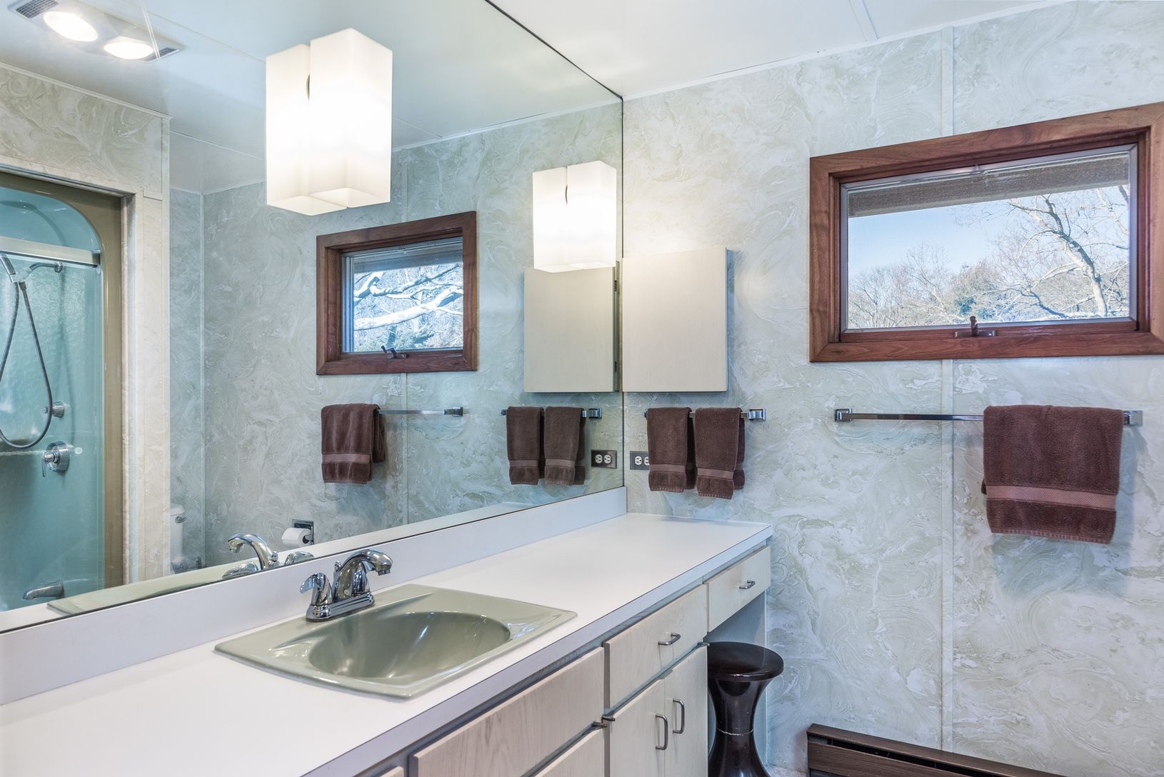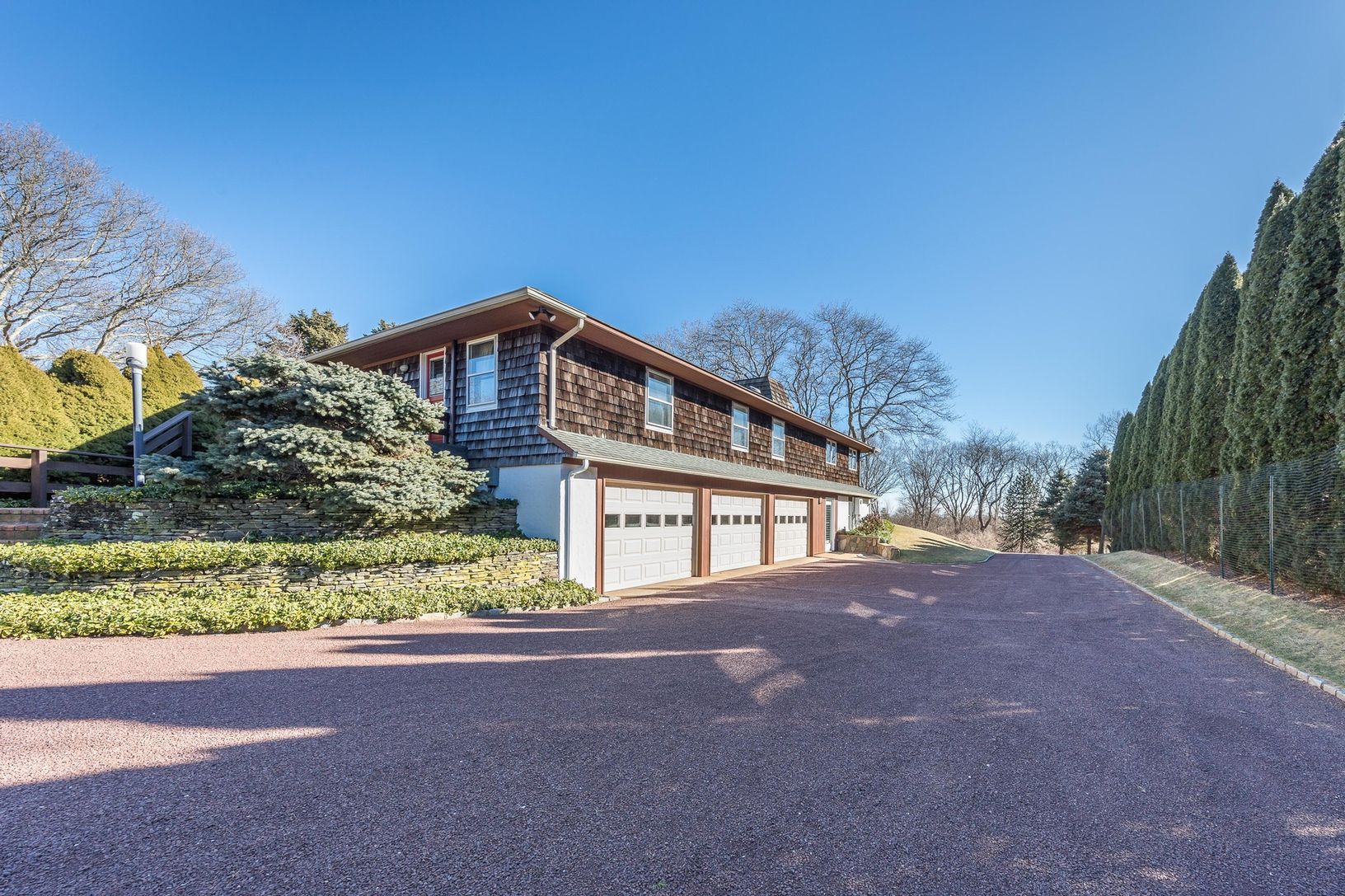 A long and tall stand of mature Arbor Vitae introduce this four bedroom, two and one-half bath classic. Almost 2,500 linear internal square feet merge form with function, creating private spaces and plenty of elbow room. The focus of living area is a substantial Montauk stone fireplace with each stone harvested from local beaches. The basement is large, clean, dry and is easily tailored to your interests. It is also the conduit to the integ