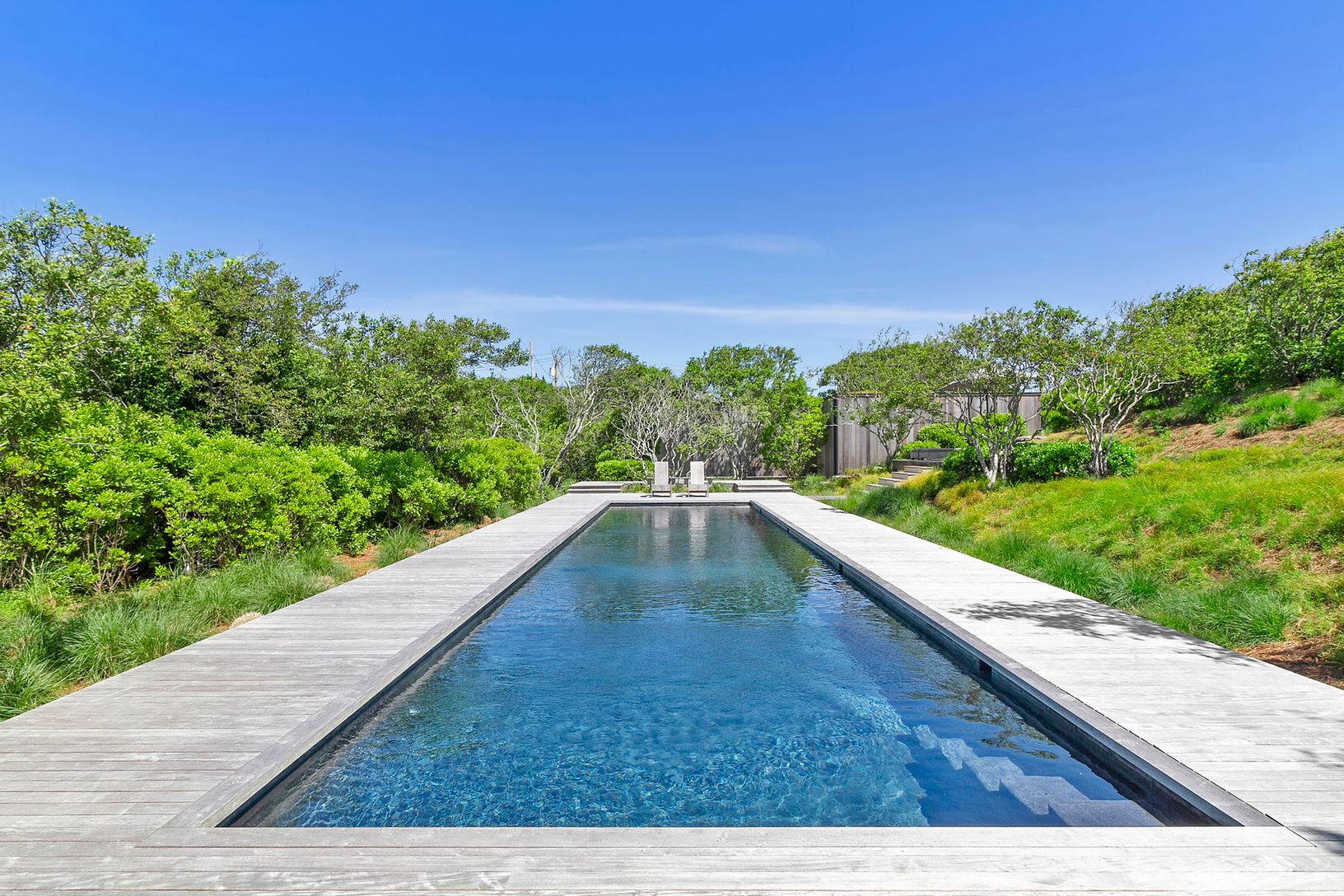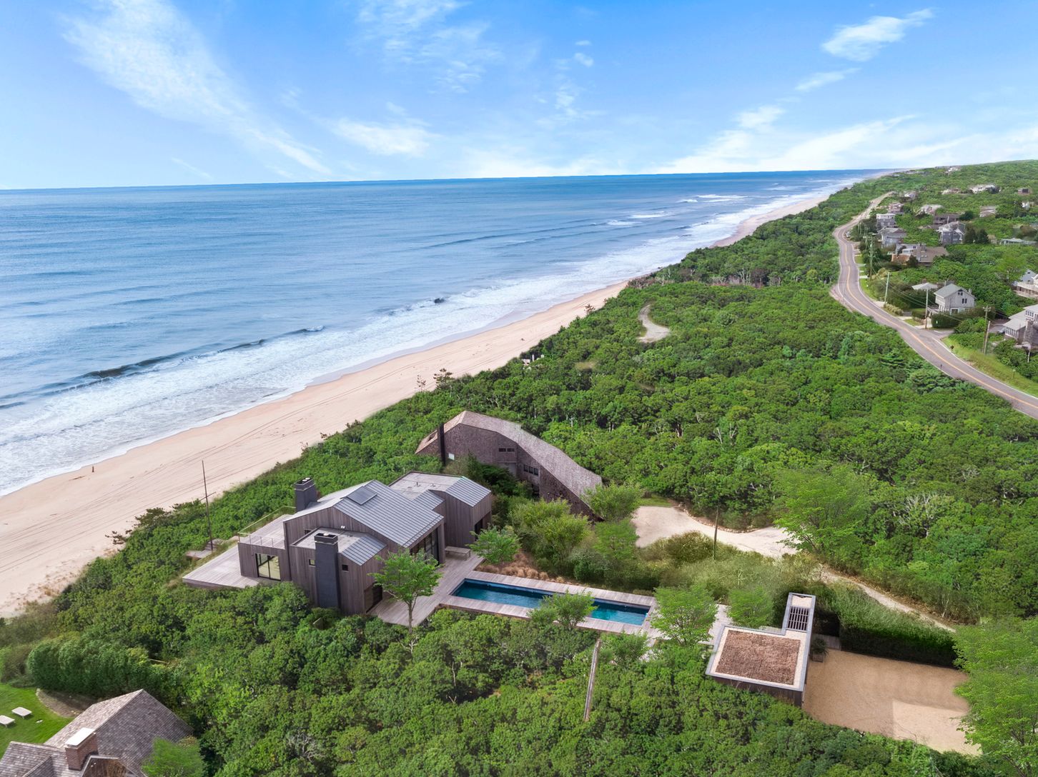 One of six houses bordering the Montauk Hither Plains Nature Preserve on both sides originally laid out by Frederick Law Olmsted. Sitting on one acre with a 137 feet of linear ocean frontage and landscaped by LaGuardia Design, the property blends in