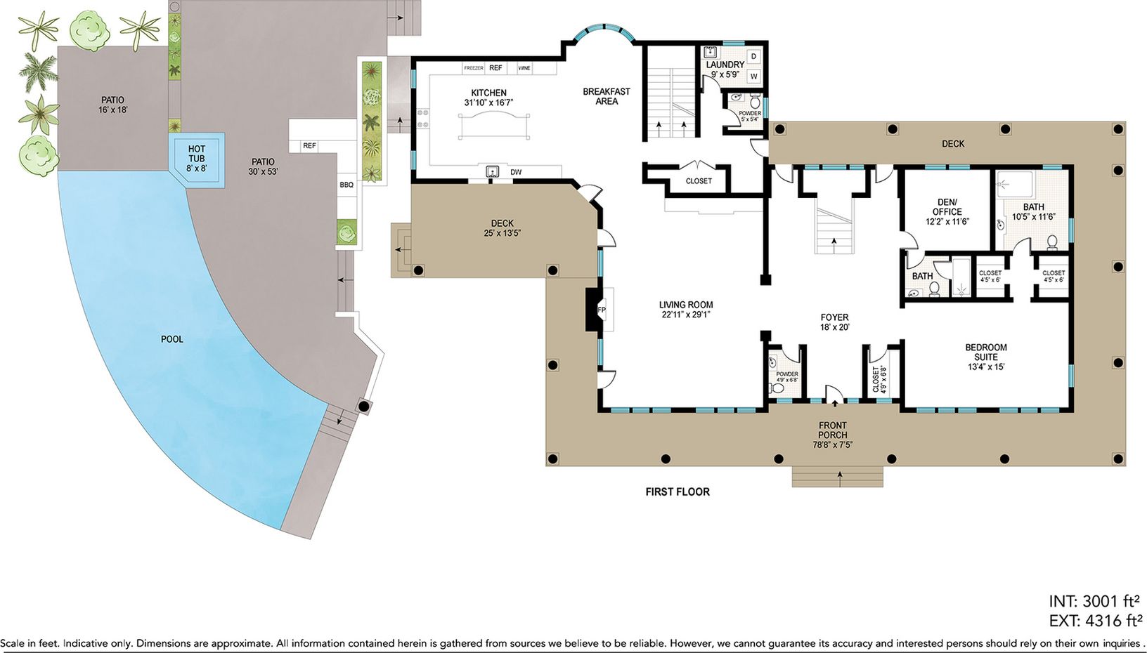 Breakfast area, Exercise room, Family room/den, Great room, In-law suite/private guest quarters, Laundry room, Media room, Office, Study