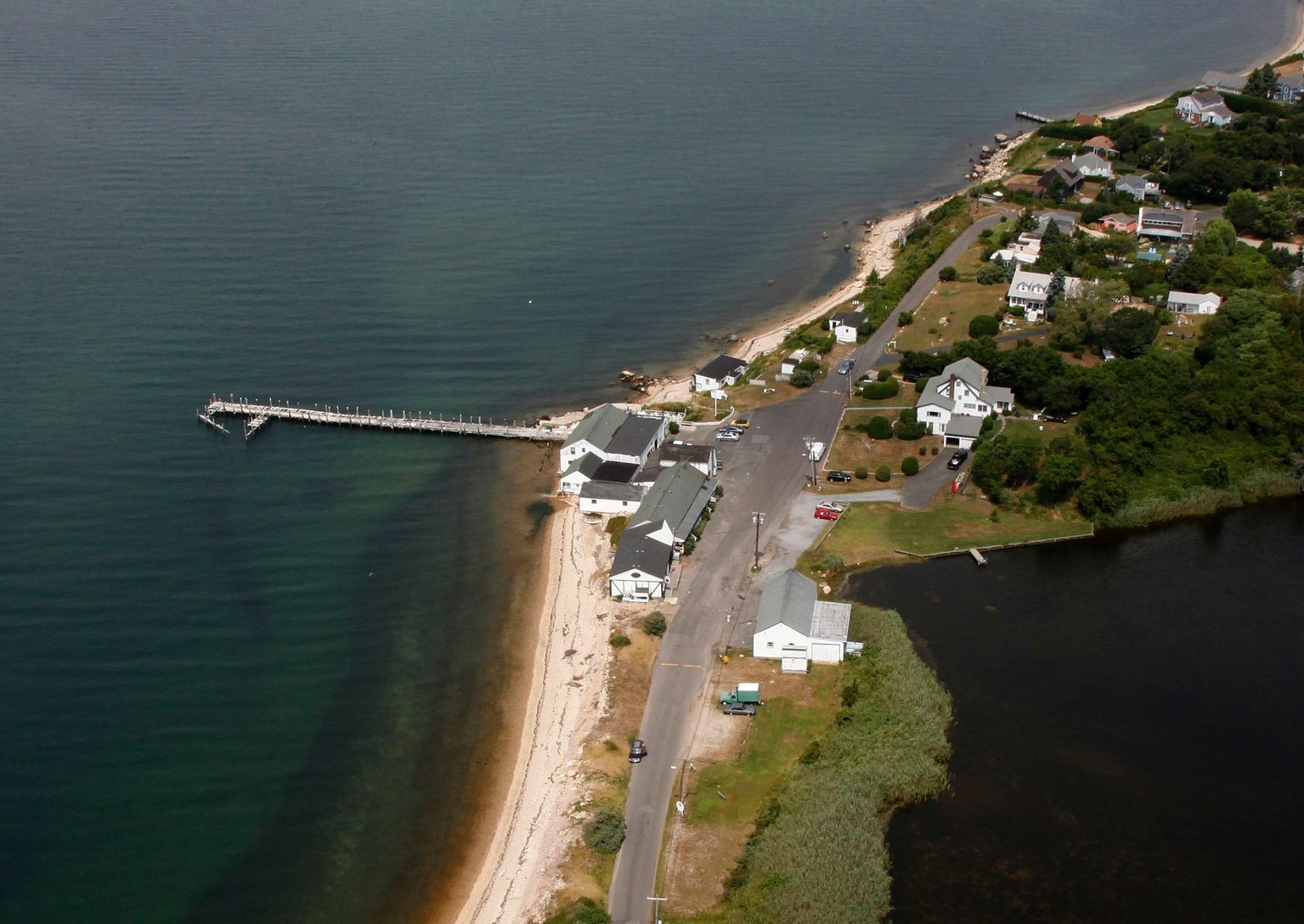 New offering of approximately nine acres on Fort Pond Bay in Montauk; approximately 2 + upland acres and 6 + acres of underwater rights. This amazing property includes 650 feet of shoreline and underwater rights on both sides of a 200 foot pier. Buildings are approximately 8000 square feet including lobster tank rooms, seafood packing areas, retail seafood area ,working coolers, and freezers, office space and two retail shops. There is als
