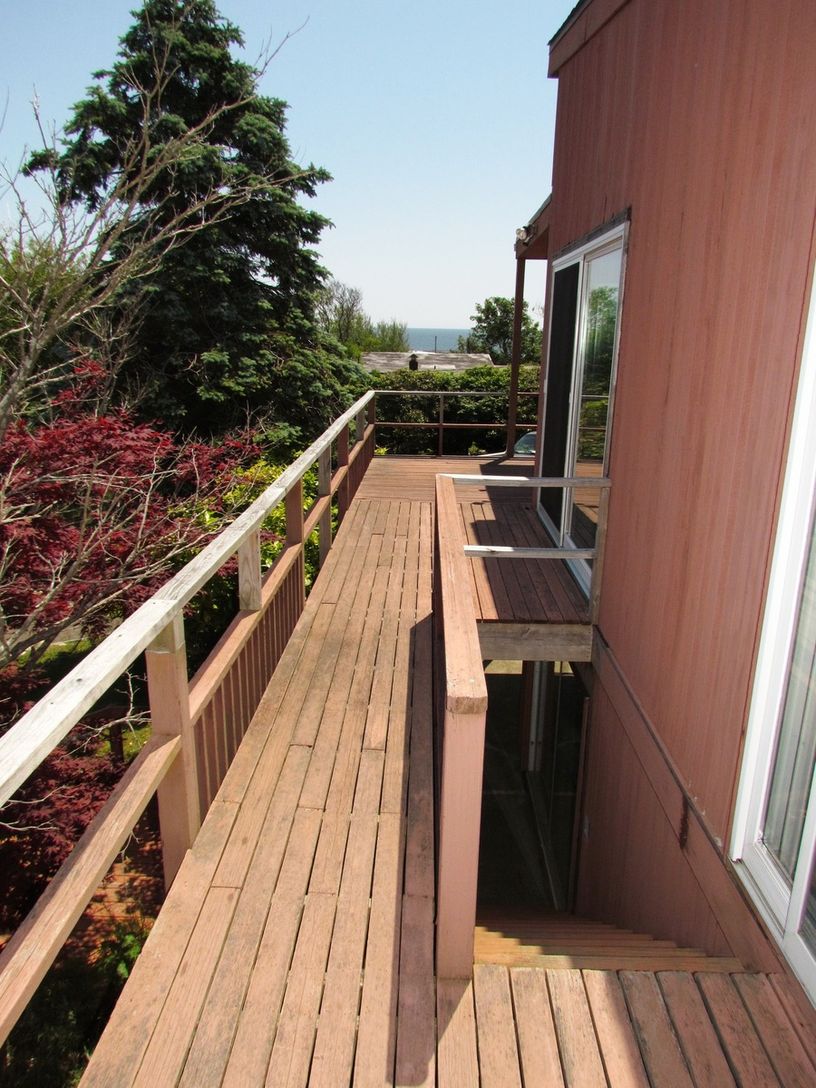 Walk to Town and Ocean beaches from this Bi-level contemporary Montauk beach home situated on elevated.30 acre ocean view parcel in Surfside Estates. The home offers 4 bedrooms, 4 baths, vaulted ceiling living area, dining area, enclosed porch, den, expansive sundrenched deck, central air, full basement all just steps to ocean access, down town, shops & restaurants.