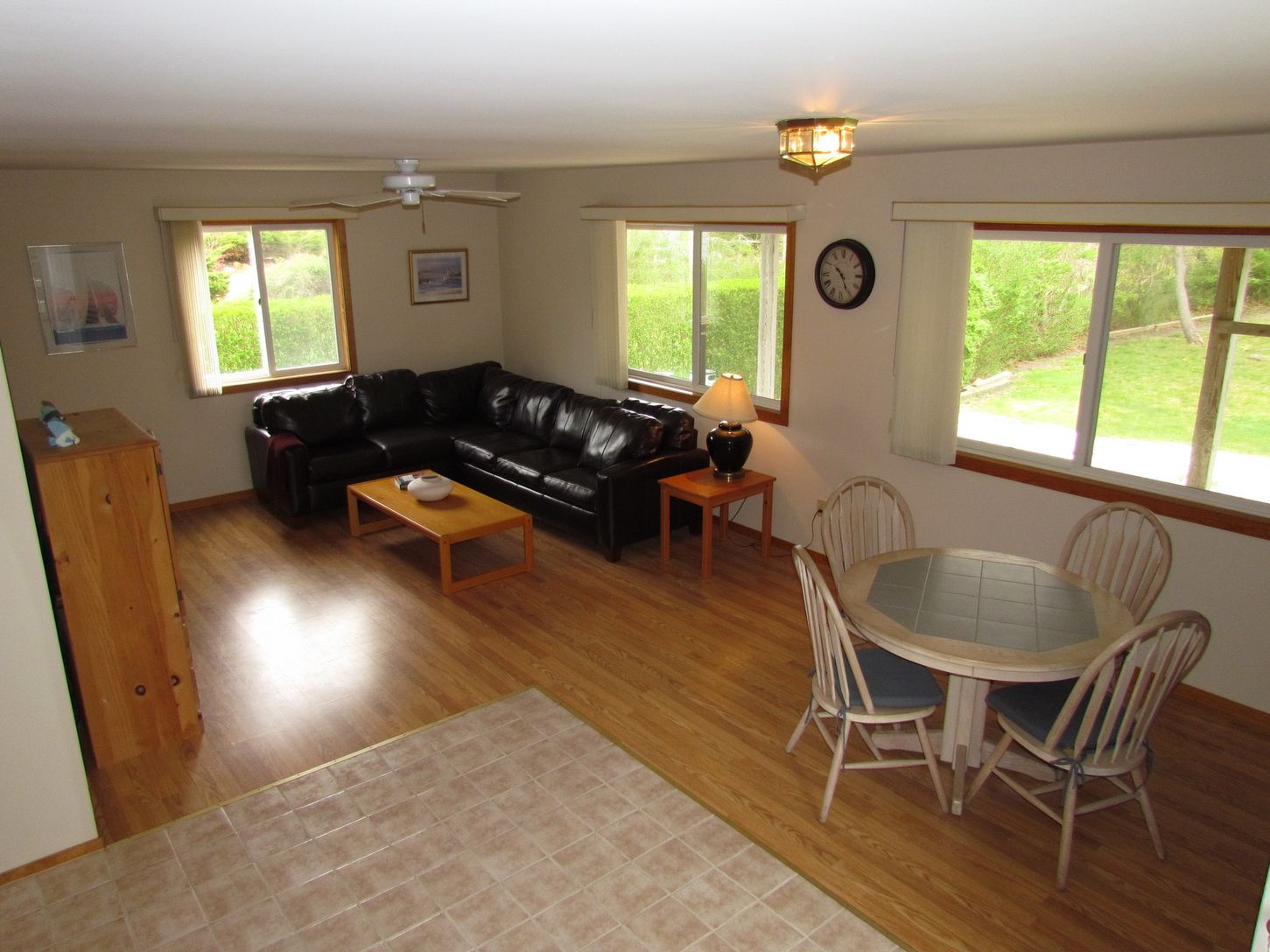 Walk to bay beaches from this 5 bedroom, 2 bath home located just steps from Montauk harbor, shops, docks, fishing and restaurants. The home features sun filled cathedral ceiling living area, bright peninsula island kitchen, open dining area, expansive sundrenched deck, first floor den, wood floors, gas heat, full basement, rectangular yard, outdoor shower, all in immaculate move in condition.