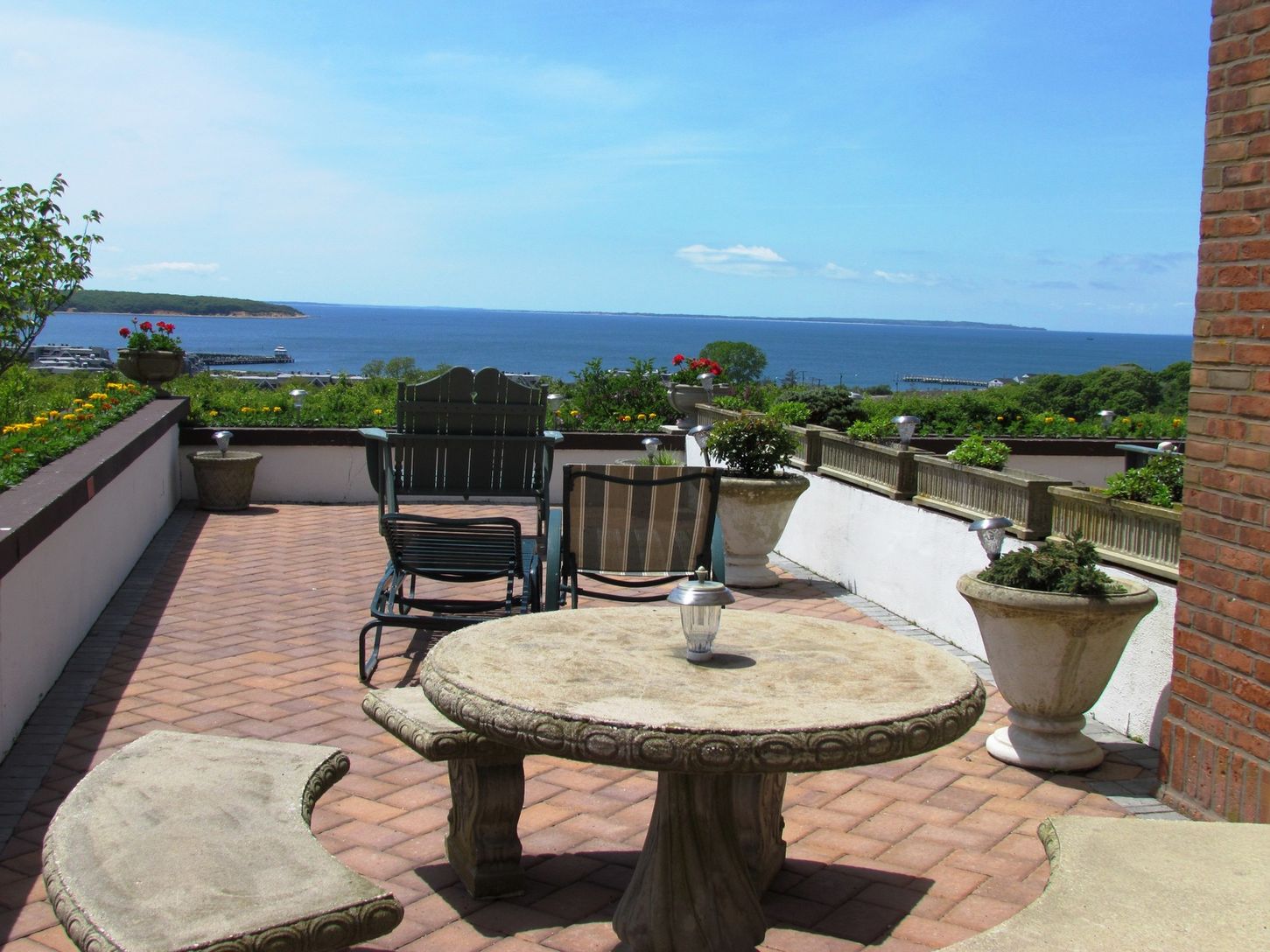 Enjoy personal sweeping westerly water and sunset views from this corner first floor 1 bedroom, 1 bath duplex accommodation with thee sought after private elevated 500+ sq.f.t stone terrace adjoining the grand lawn at Montauk Manor. Property amenities include grand lobby, on-site restaurant, indoor and outdoor pools, relaxing inner courtyard, 3 tennis courts, activity fields, building wide wi-fi, gym, conference room, courtesy shuttle and beau