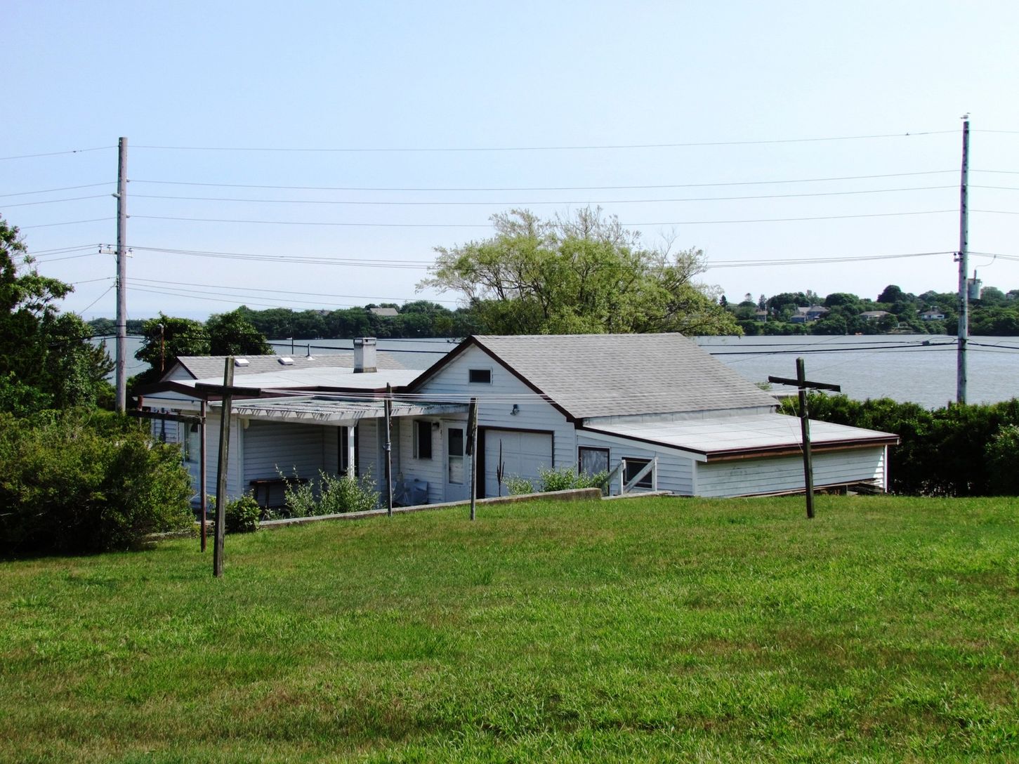 Built when the concept of a zoning code hadn't yet evolved, this three bedroom cottage has withstood the test of time. Originally comprised of only two rooms, this former fisherman's cabin has become a small, cozy house that includes a kitchen, dining room, living room, the bedrooms and one and one-half baths. It's heated with oil, there's central air conditioning, a garage and a partial basement. Lots of elbow room is provided for by its 2