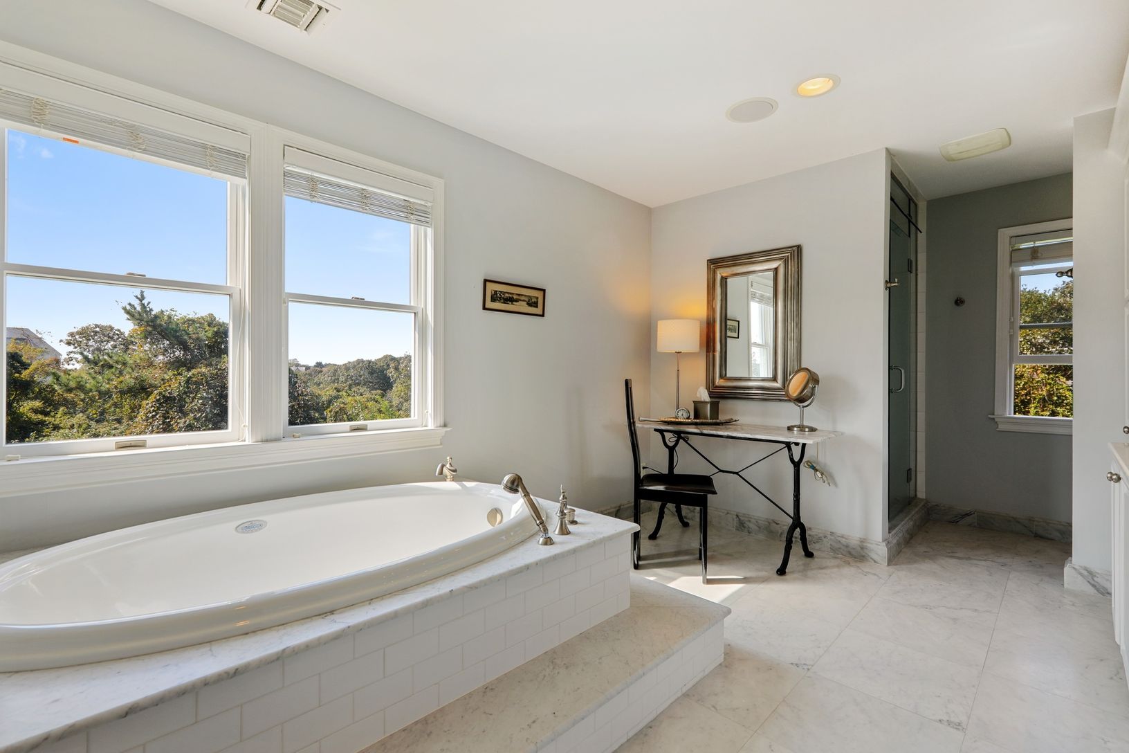 New to market. Montauk Exclusive with ocean views on 1.30 +/- acres. Hither Hills. Four-bedroom, four-bath. 4,500 +/- square feet. Second house from ocean-beach-access. Heated, inground, gunite pool, and hot tub. Two large master suites, 30' x 30' living room, formal dining, den, office, gourmet kitchen with Viking appliances, two dishwashers, a Sub Zero refrigerator/freezer, and granite countertops. Rolling lawn. Two-car garage.