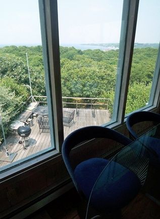 Enjoy views of Block Island Sound in this wonderful home near the Montauk School. Extra large bedroom has sliding glass doors that open to an expansive deck. Artist studio. Oak Floors. Fireplace. Skylights. Private setting with mature trees. Home is on .9 acres.