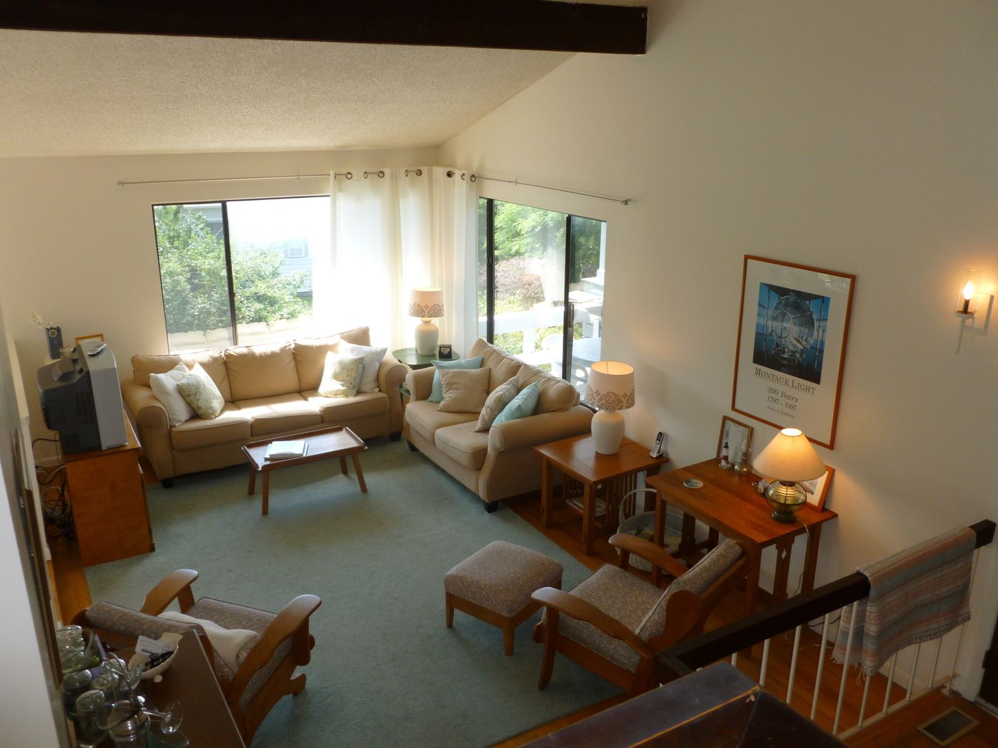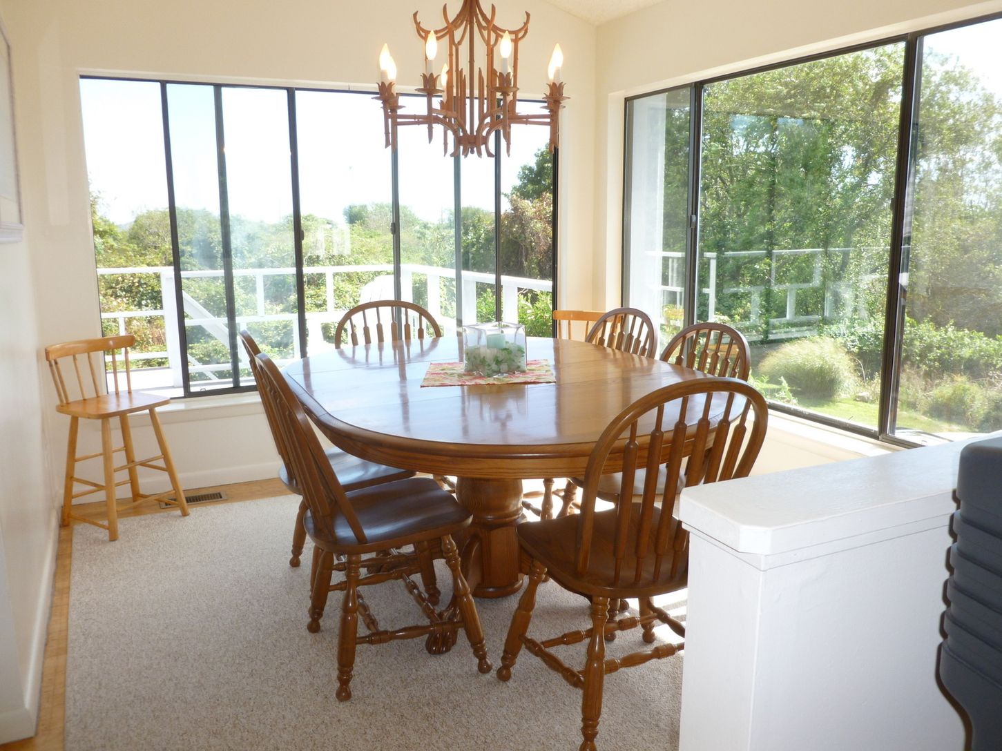Come see this spacious beach house with second story ribbon views of the ocean. This one and a half story home offers cathedral /beamed ceilings in the step down living room, separate dinning area is a step up with pastoral views, hardwood floors throughout. Large eat-in kitchen with sliders to deck which is partly shaded. Four good size bedrooms, two on the main floor share a nicely tiled bath and two spacious bedrooms up with catherdal a