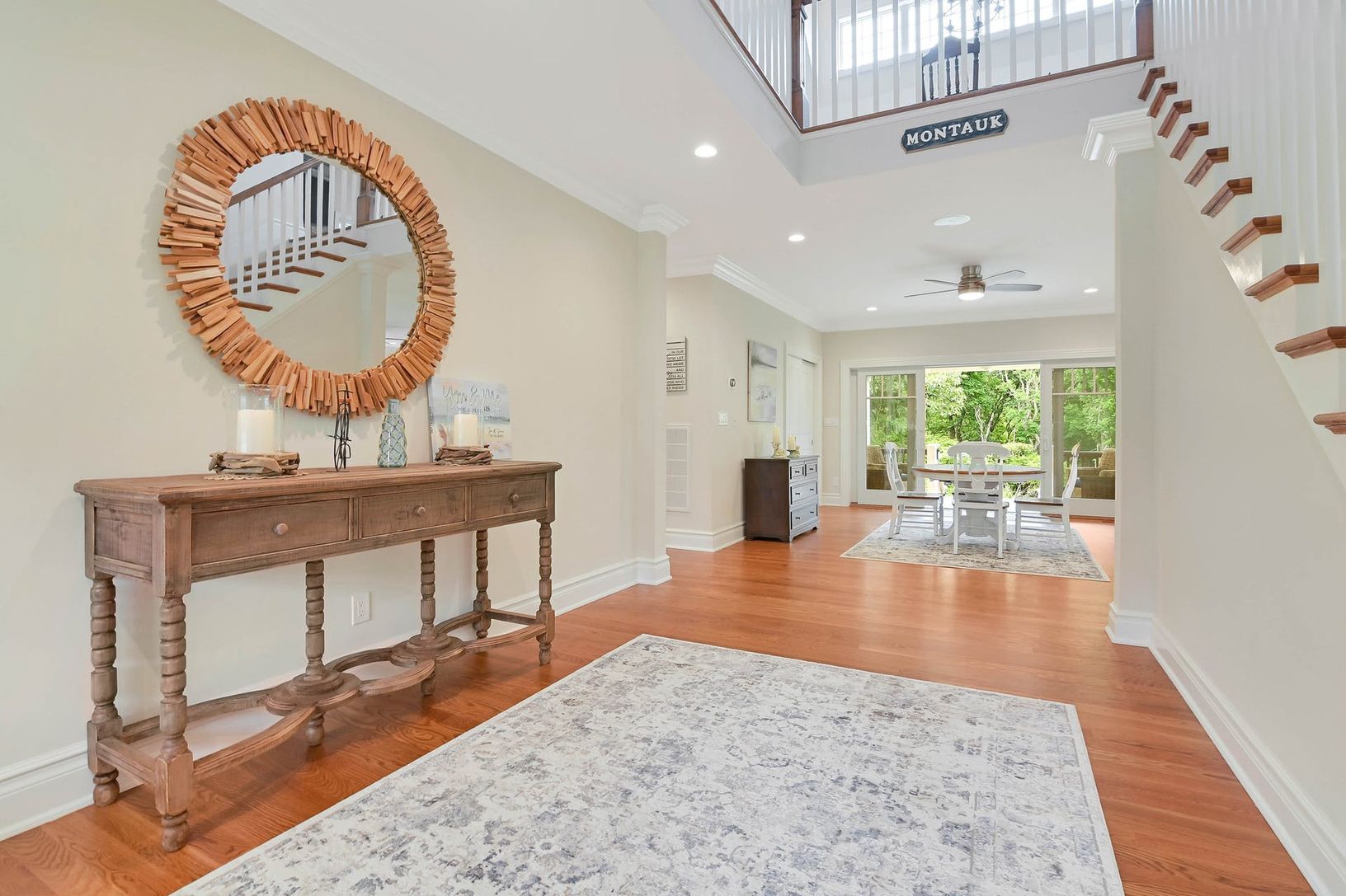 Spectacular new construction for the perfect Montauk getaway. "Upside Down" home features spacious living room, cooks kitchen and dining room as well as Junior Master on second floor, large family room and bedrooms on first. Minutes from Gosman's Dock, Montauk Downs, Lighthouse and Ditch Plains. Home includes a full gym, game room and office in addition to a fully stocked kitchen featuring double ovens, quartz countertops, and coffee bar. Sono