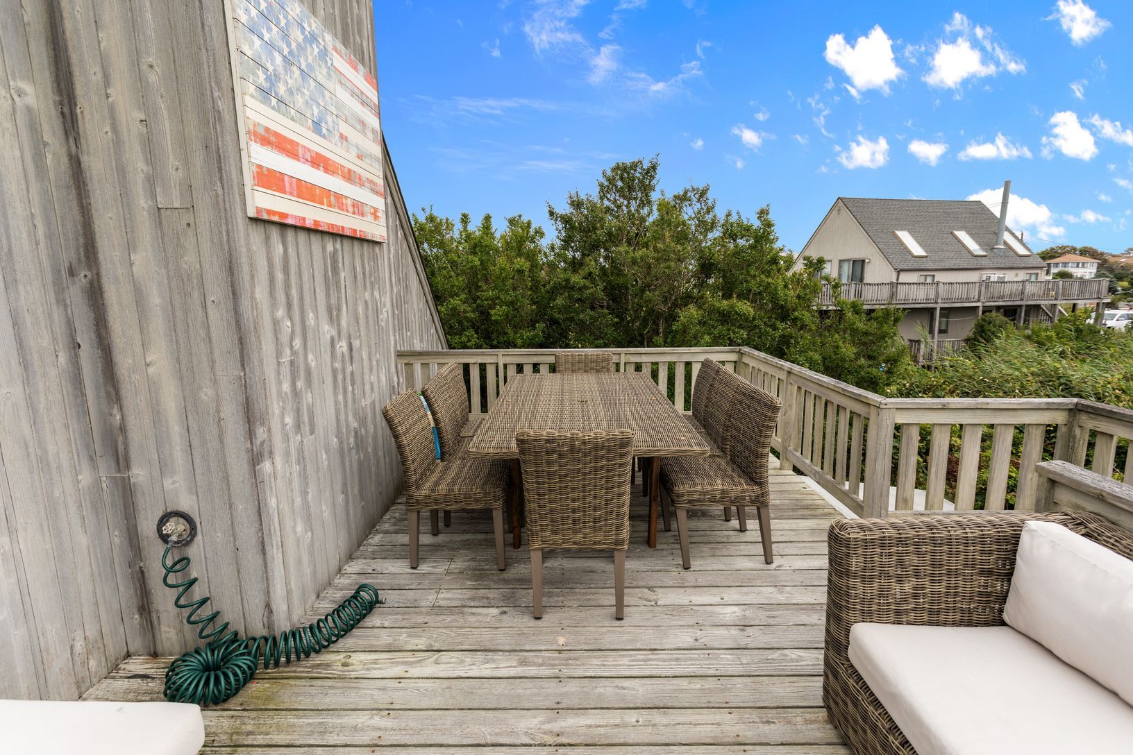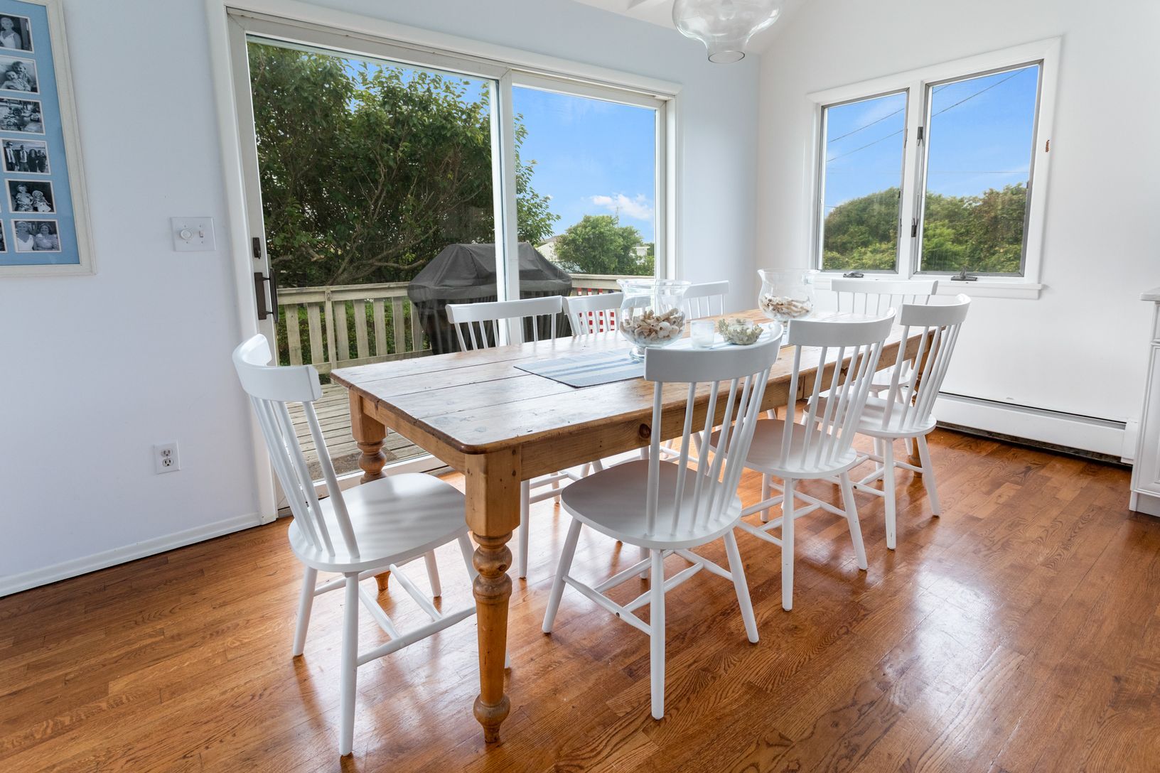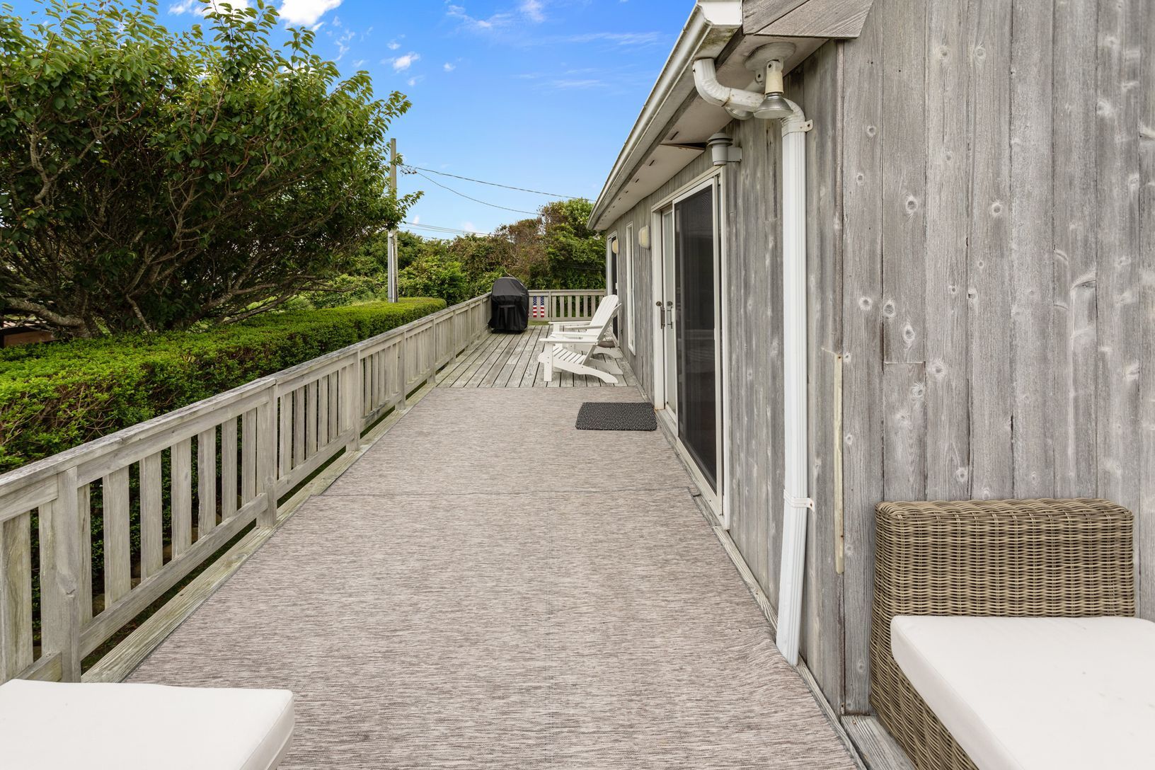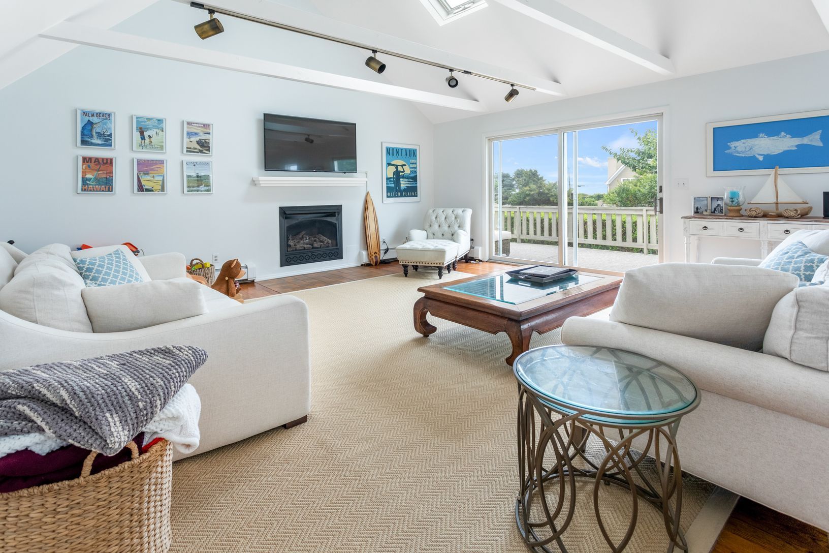 This entirely updated four bedroom, two and a half bath home is situated in Ditch Plains with views of the ocean offering light-filled living spaces minutes to the shore. There is an open living room with beamed ceilings and a fireplace, new kitchen with dining area, and large wraparound decking. Complete with an outdoor shower and a path behind the property that leads to the entry of Ditch Plains beach, this is an amazing summer retreat minut
