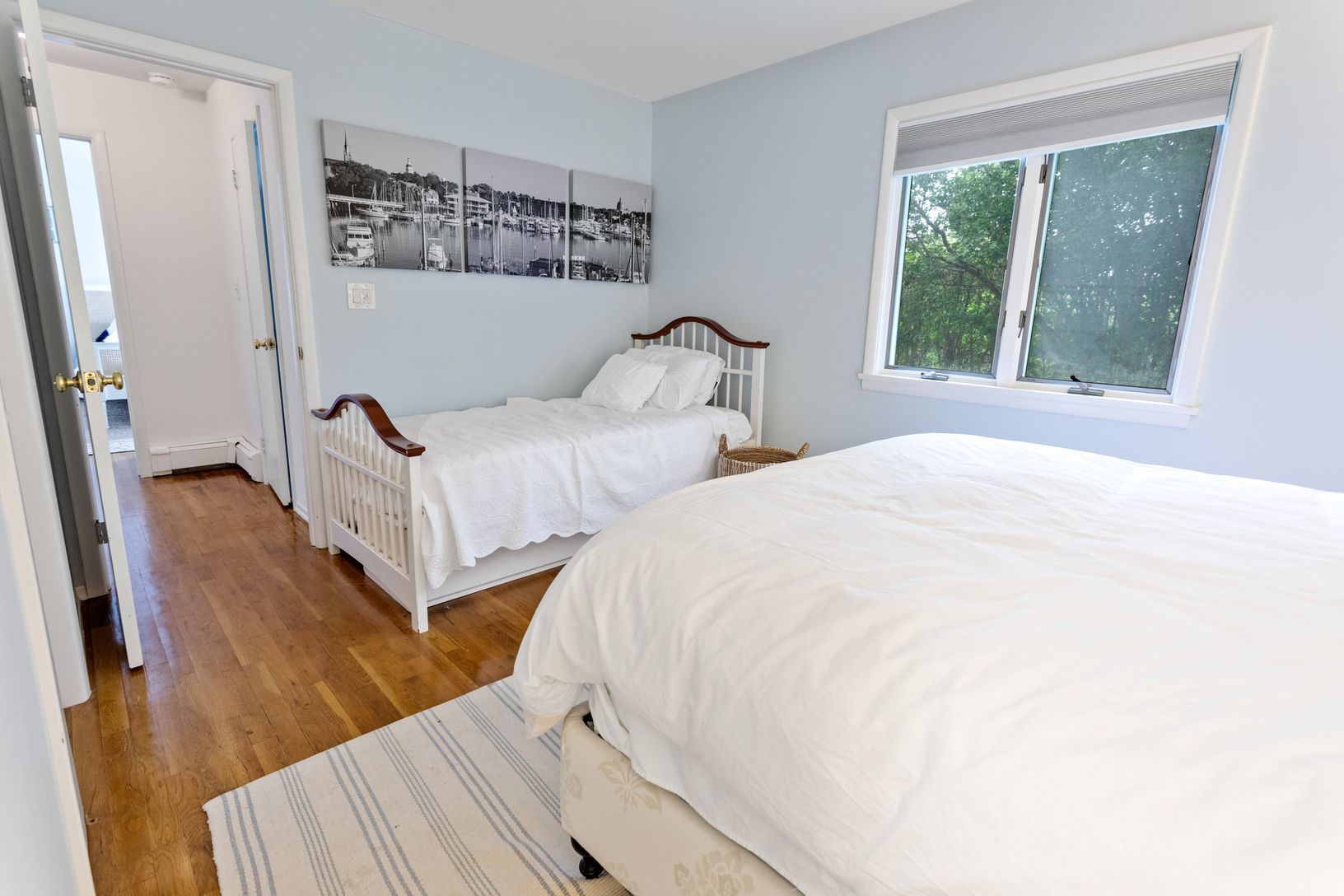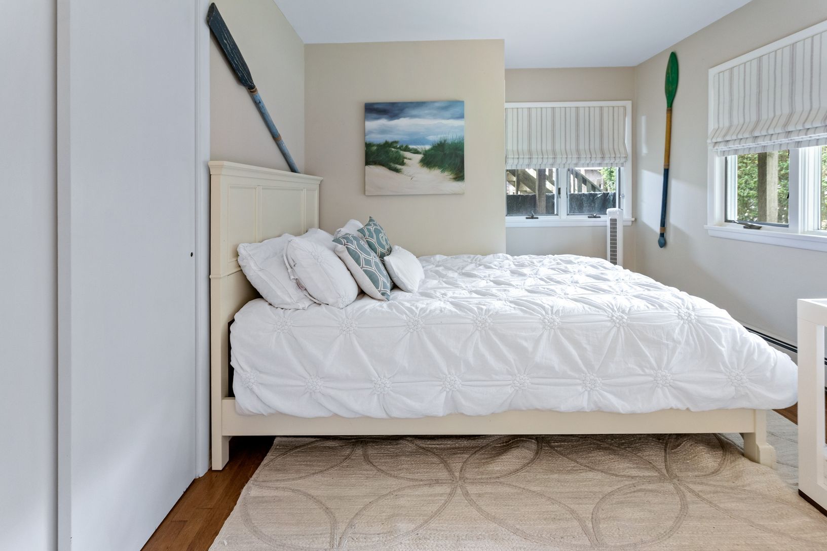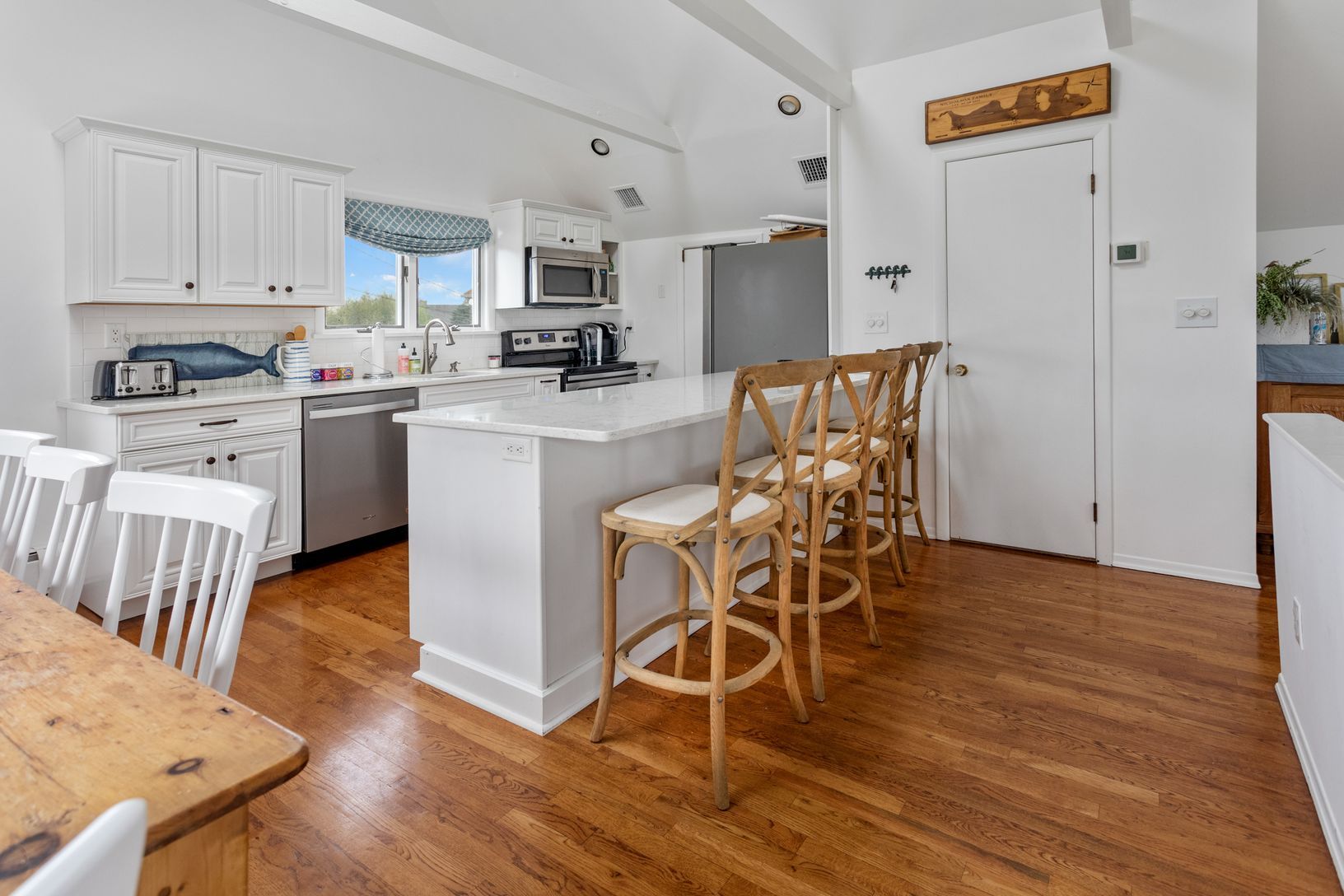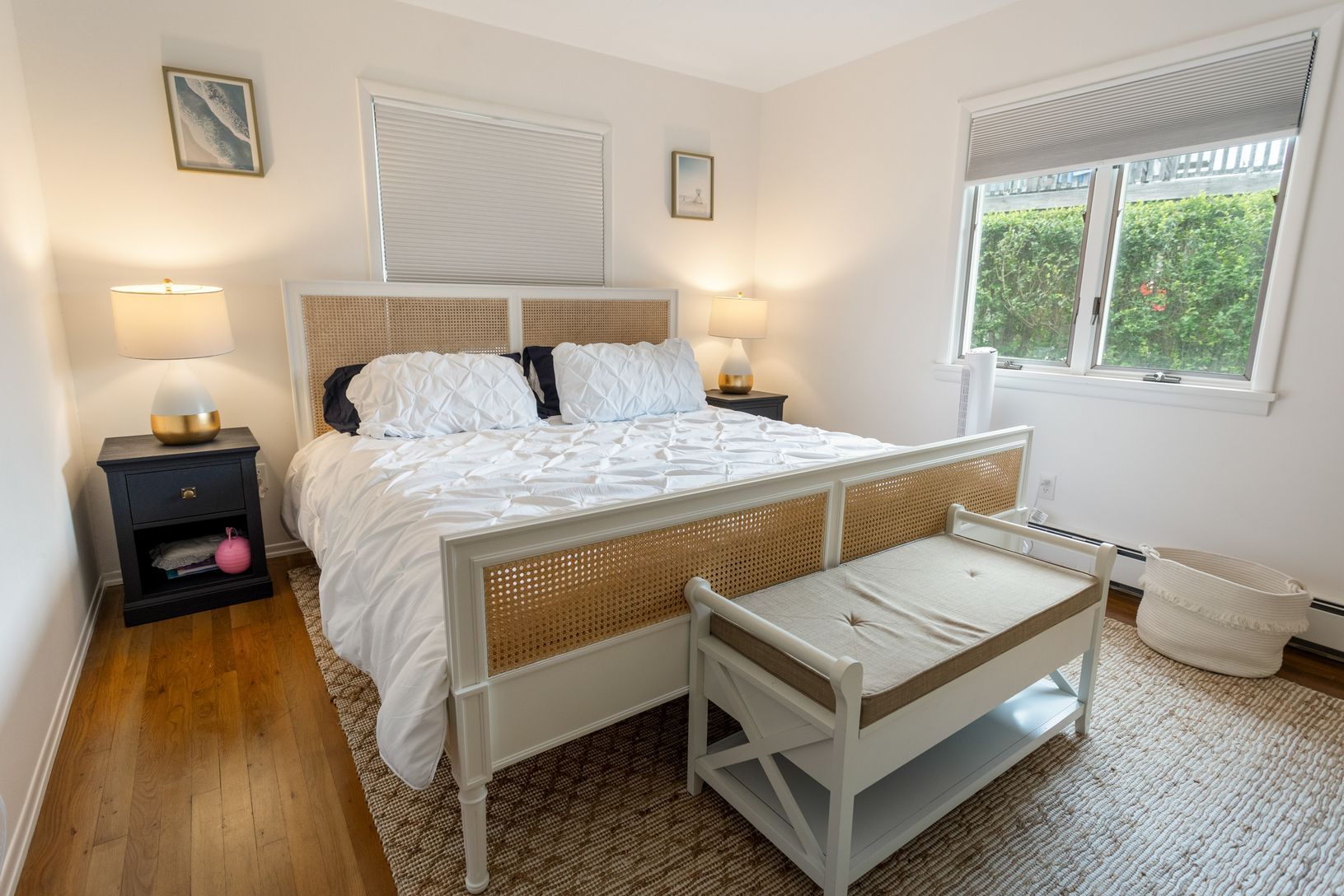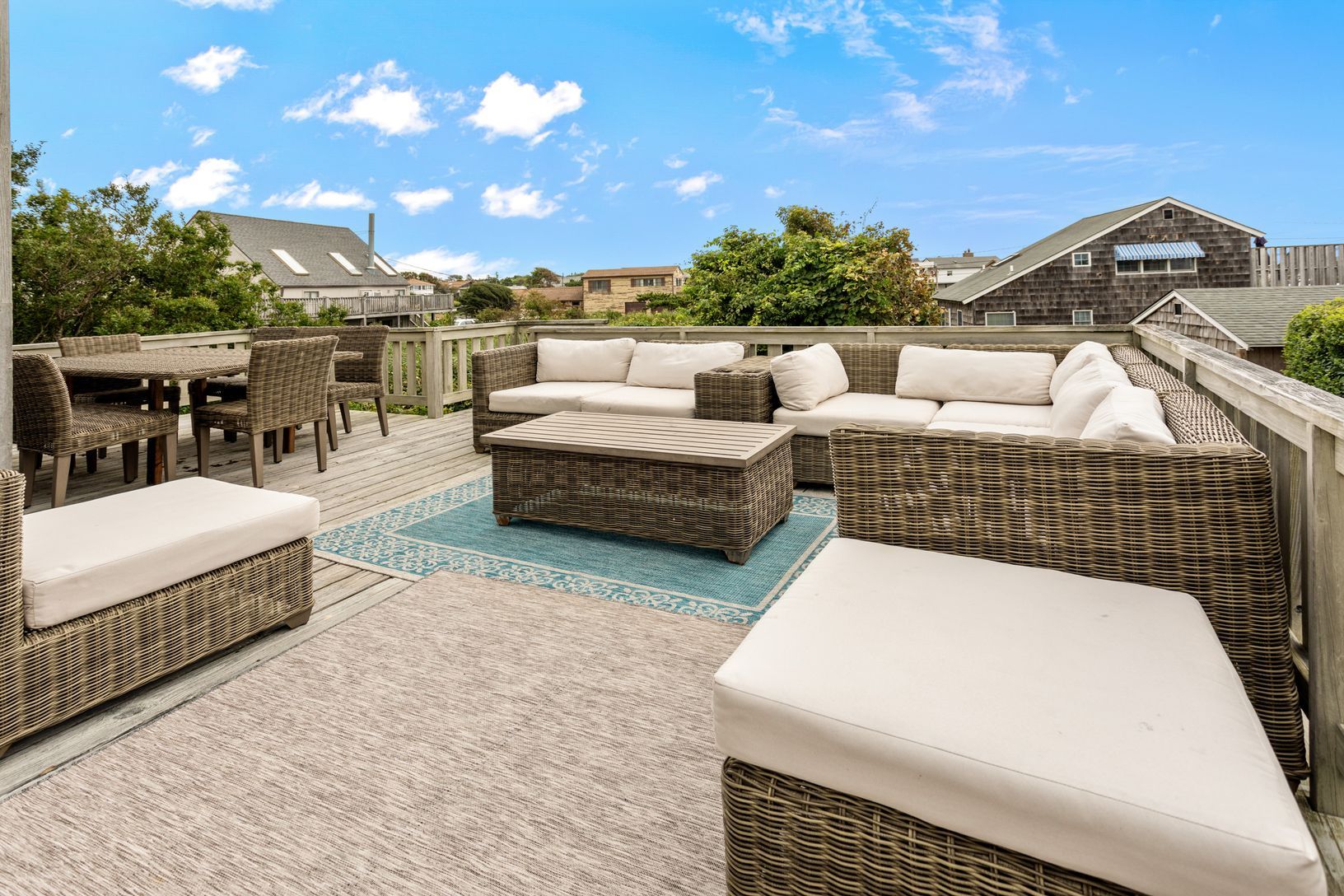 This entirely updated four bedroom, two and a half bath home is situated in Ditch Plains with views of the ocean offering light-filled living spaces minutes to the shore. There is an open living room with beamed ceilings and a fireplace, new kitchen with dining area, and large wraparound decking. Complete with an outdoor shower and a path behind the property that leads to the entry of Ditch Plains beach, this is an amazing summer retreat minut