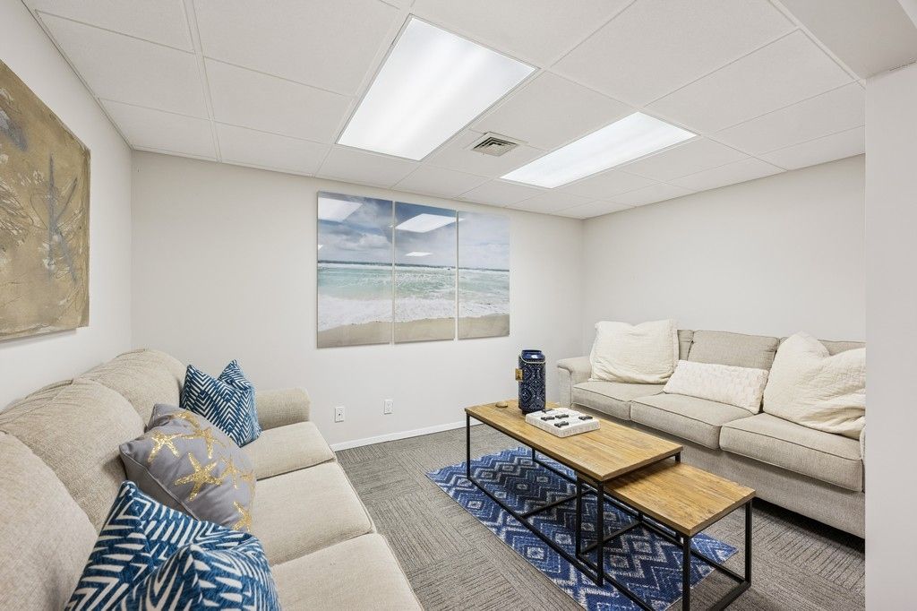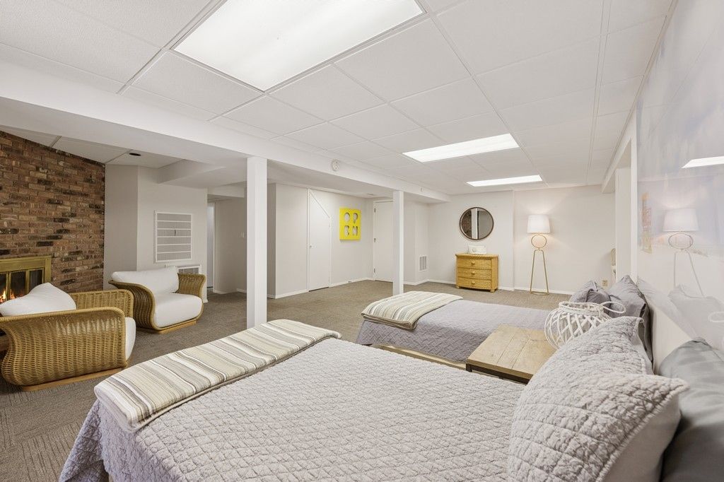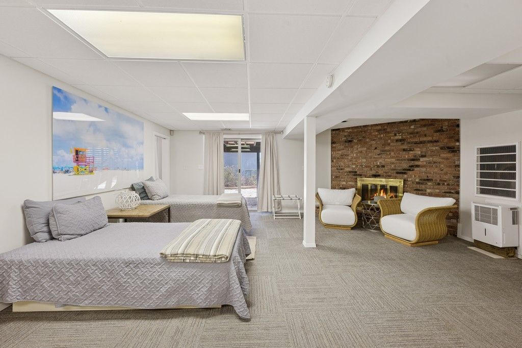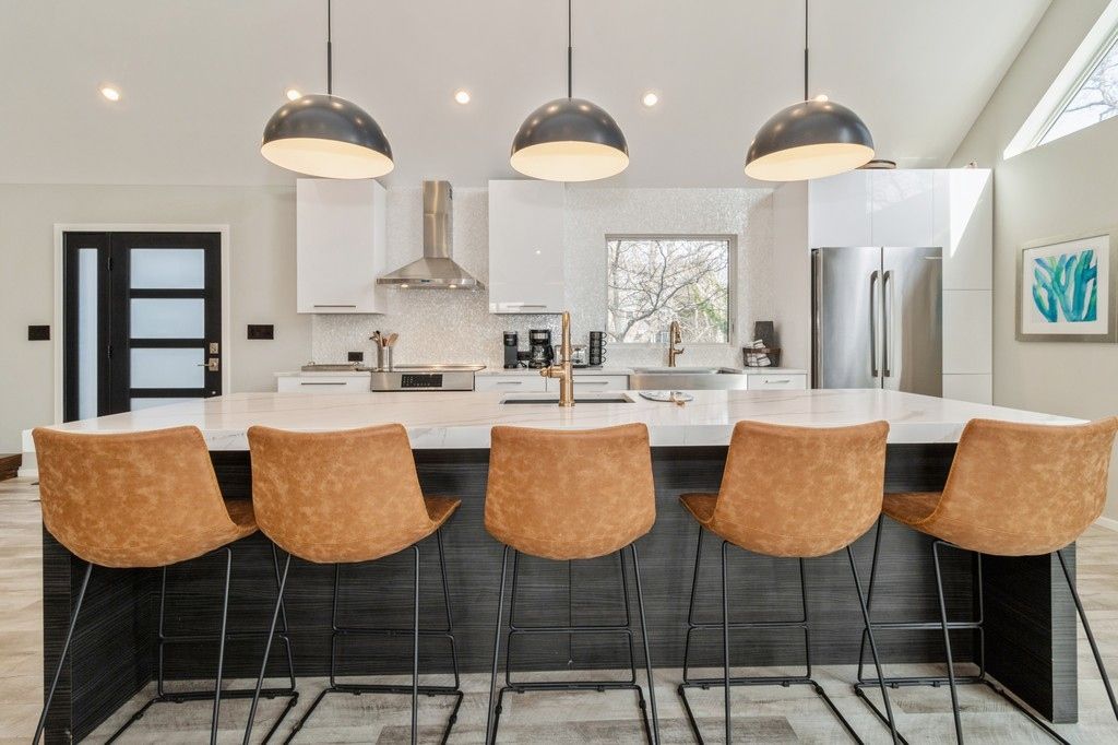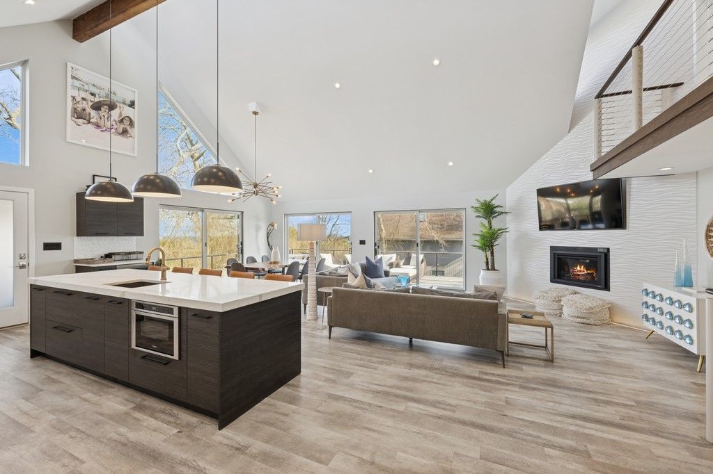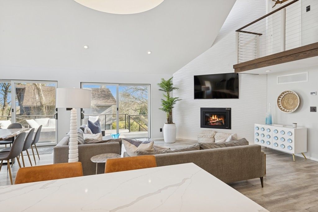 Super clean and beautiful kitchen, stunning counter tops with antique brushed golden faucets, Bosch appliances, with huge kitchen island seating for Five. Gas fireplace, flat screen tv on accent walls surrounded by great decor and vibes.
