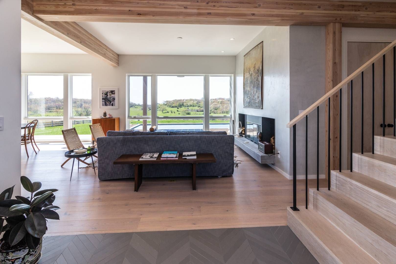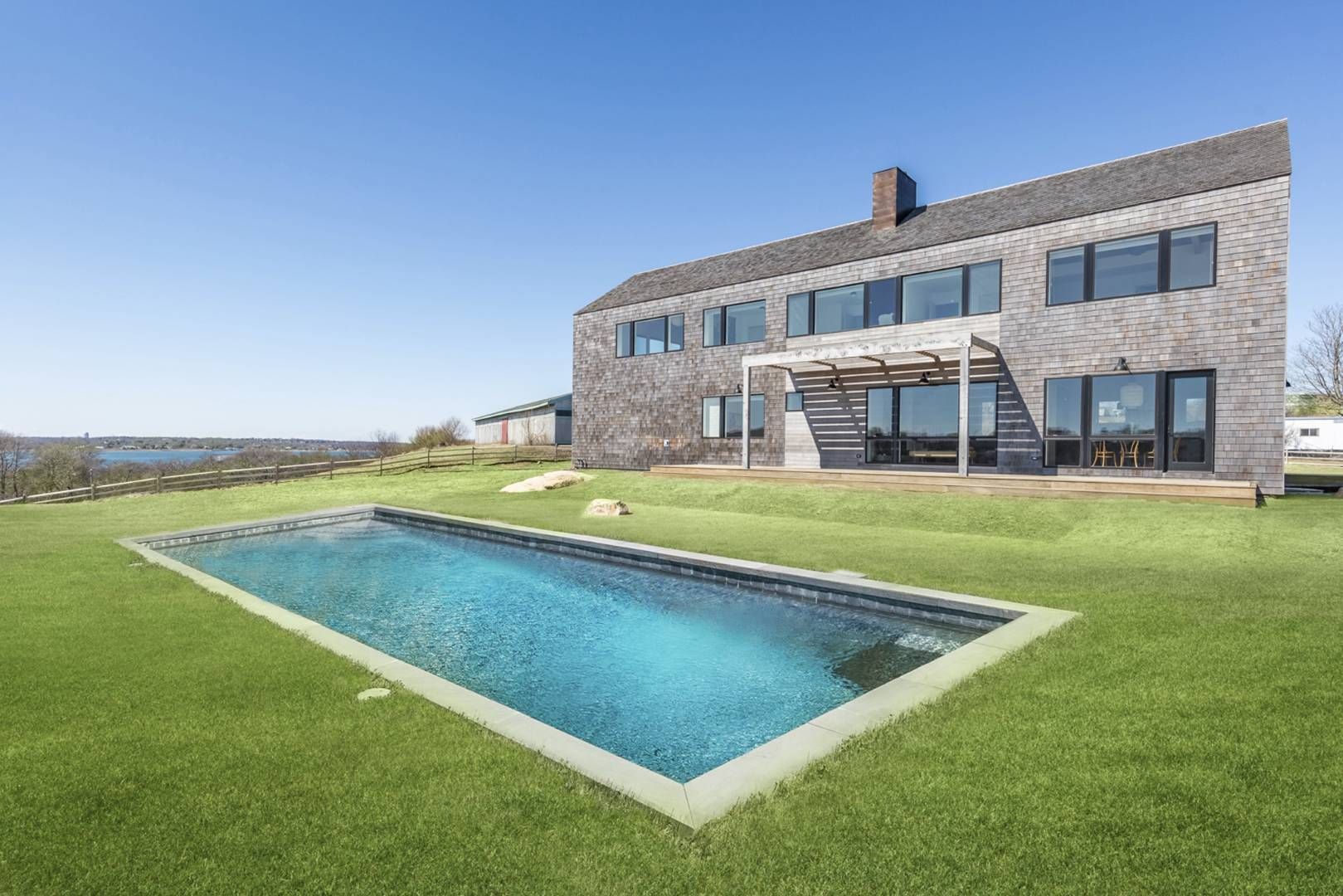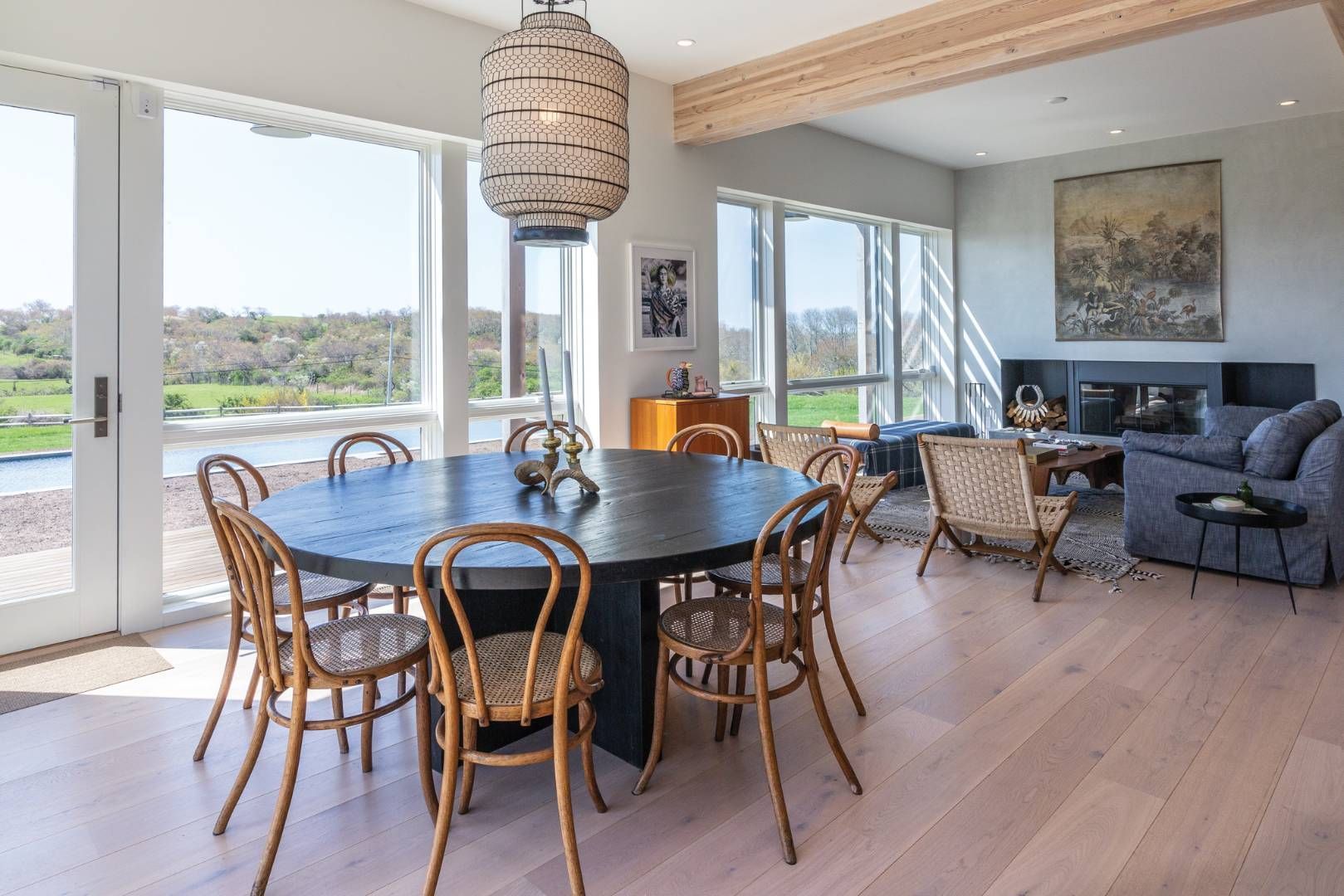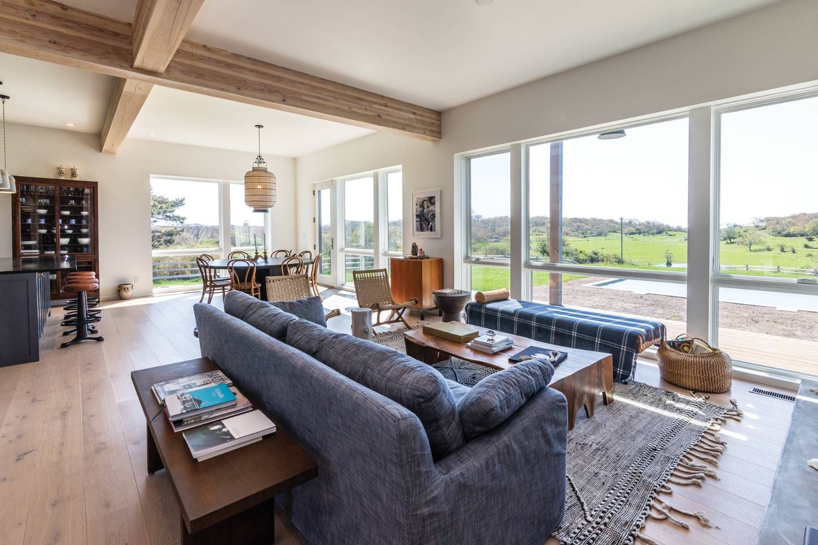 Perched on one of Montauk's most stunning landscapes, this 4,100 sq. ft. timber-frame home on 1.6 acres delivers sweeping views of Deep Hollow Ranch's rolling hills, Lake Montauk, and the ocean beyond. Five bedrooms, five full baths (including two ensuites), a sleek modern kitchen, and multiple living spaces create an effortless summer retreat. Total privacy, breathtaking sunsets, and evening cocktails on the deck set the scene. Spend your day