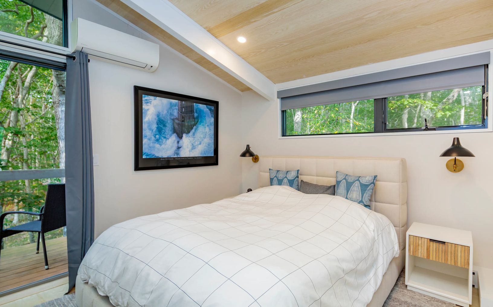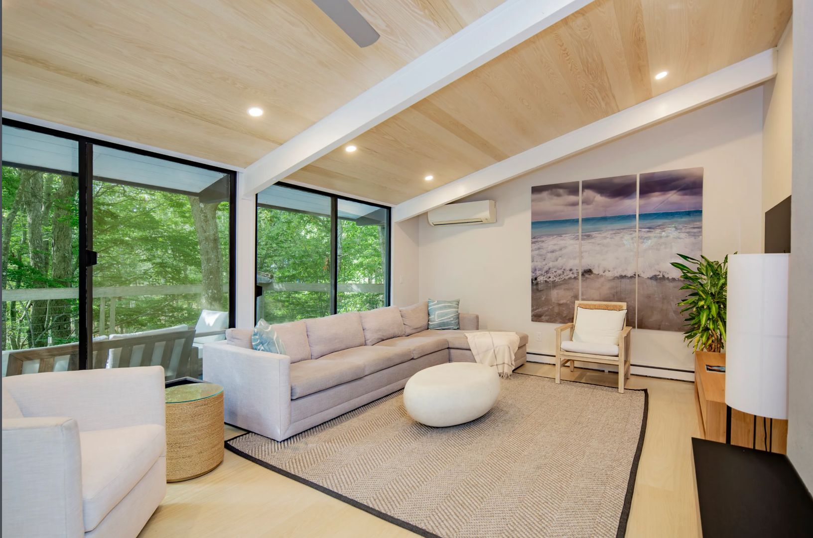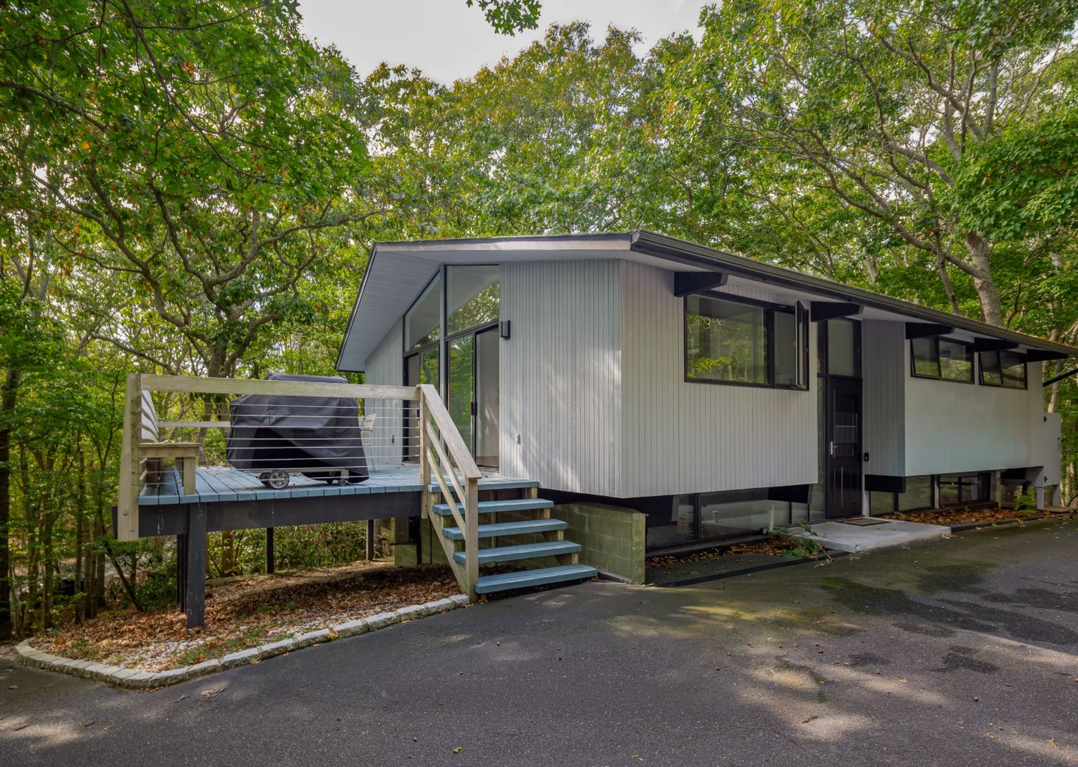 Tucked above a quiet private drive and surrounded by mature trees, this beautifully redone three-bedroom, two-bath home offers a peaceful hideaway in desirable Hither Hills. Inside, the main level feels bright and open, with high ceilings, a comfortable living space centered around a fireplace, and a seamless connection between the dining area and the updated kitchen complete with a wine fridge. Large glass doors stretch across the back of the