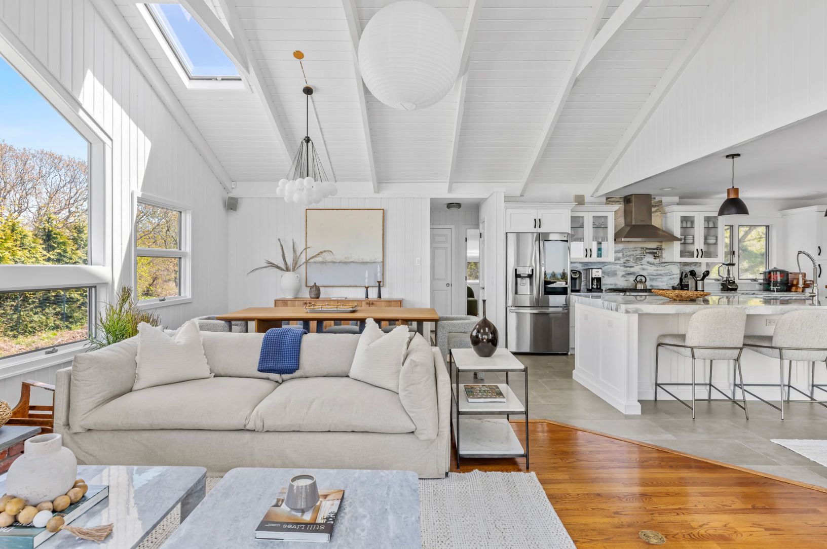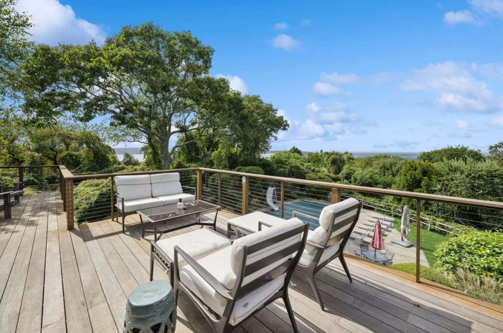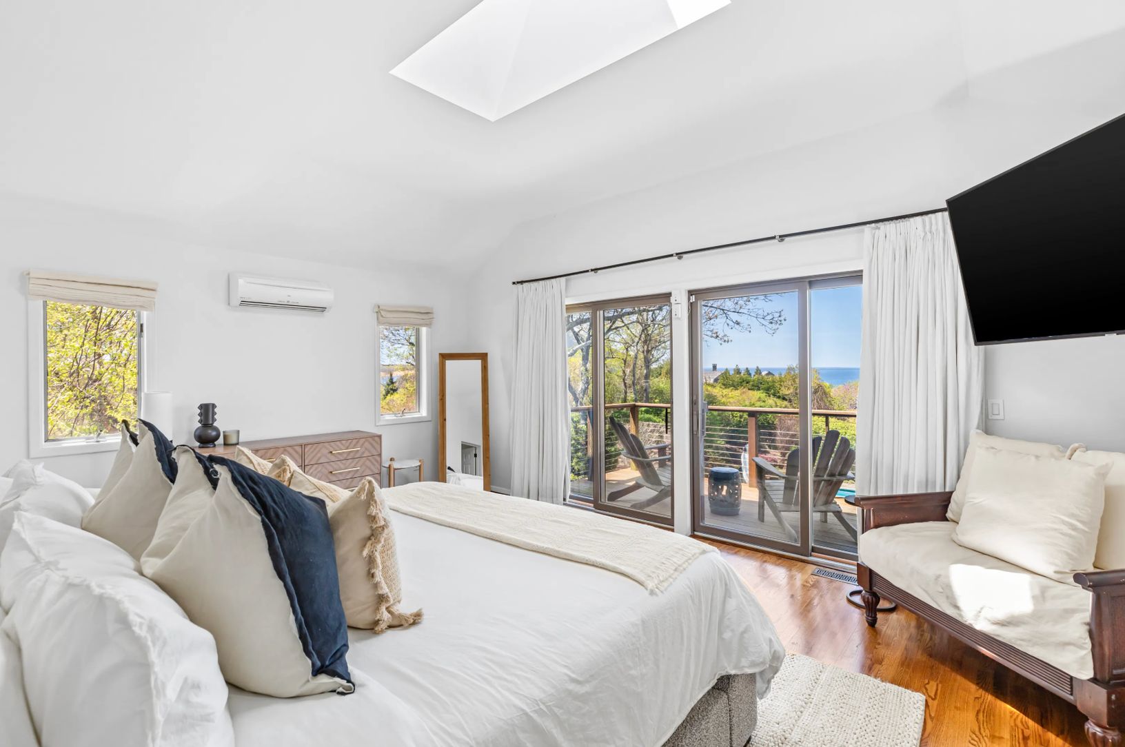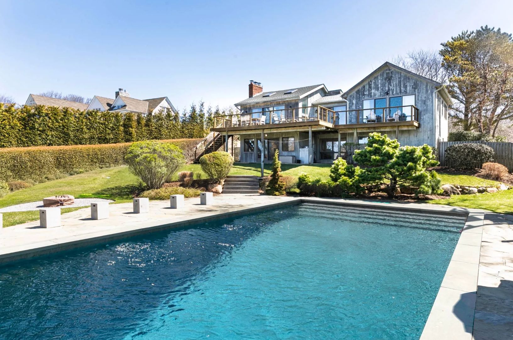 Overlooking Fort Pond Bay with sweeping sunset views, this contemporary retreat offers exceptional privacy and coastal sophistication. The four-plus bedroom, three-bath residence has been newly styled with wood floors, a fireplace, and a chef’s kitchen ideal for entertaining.