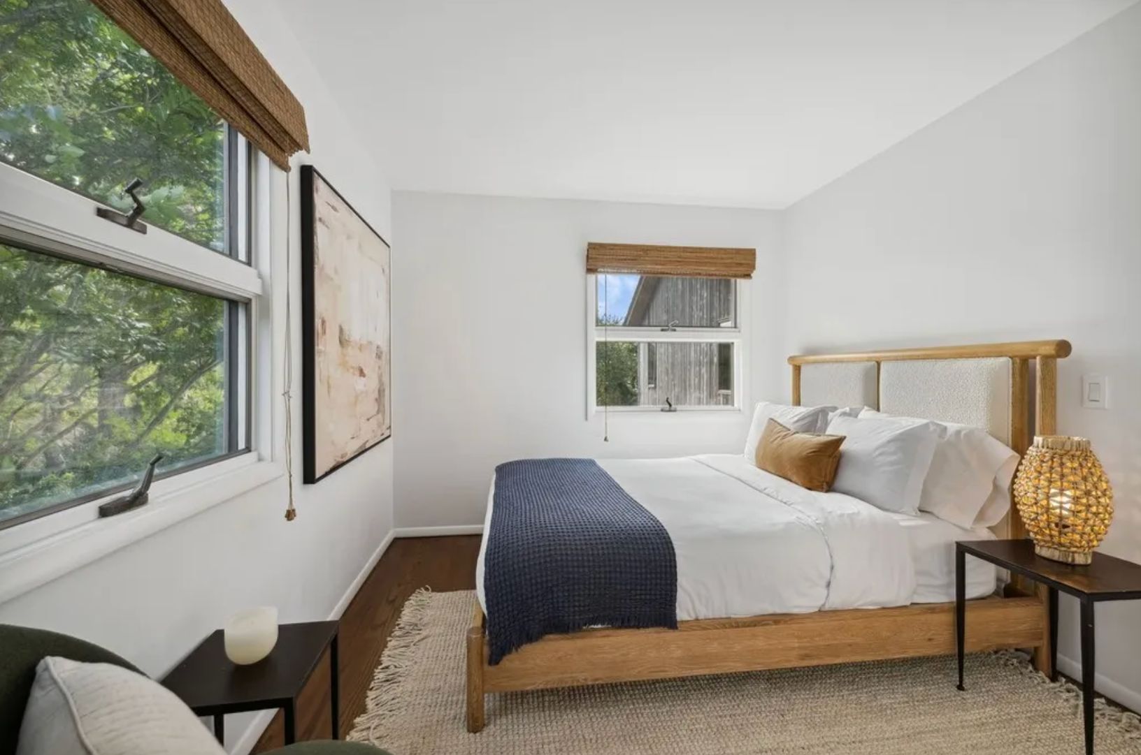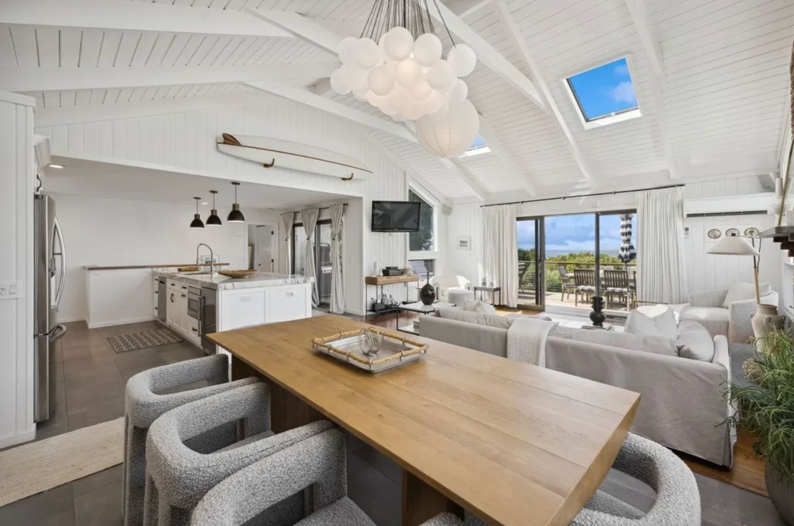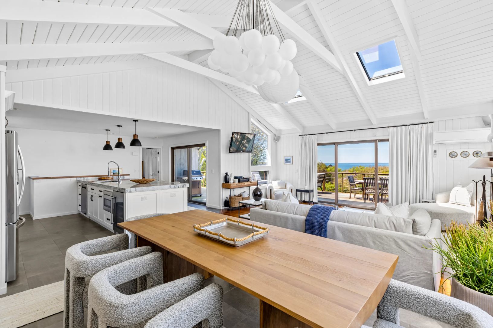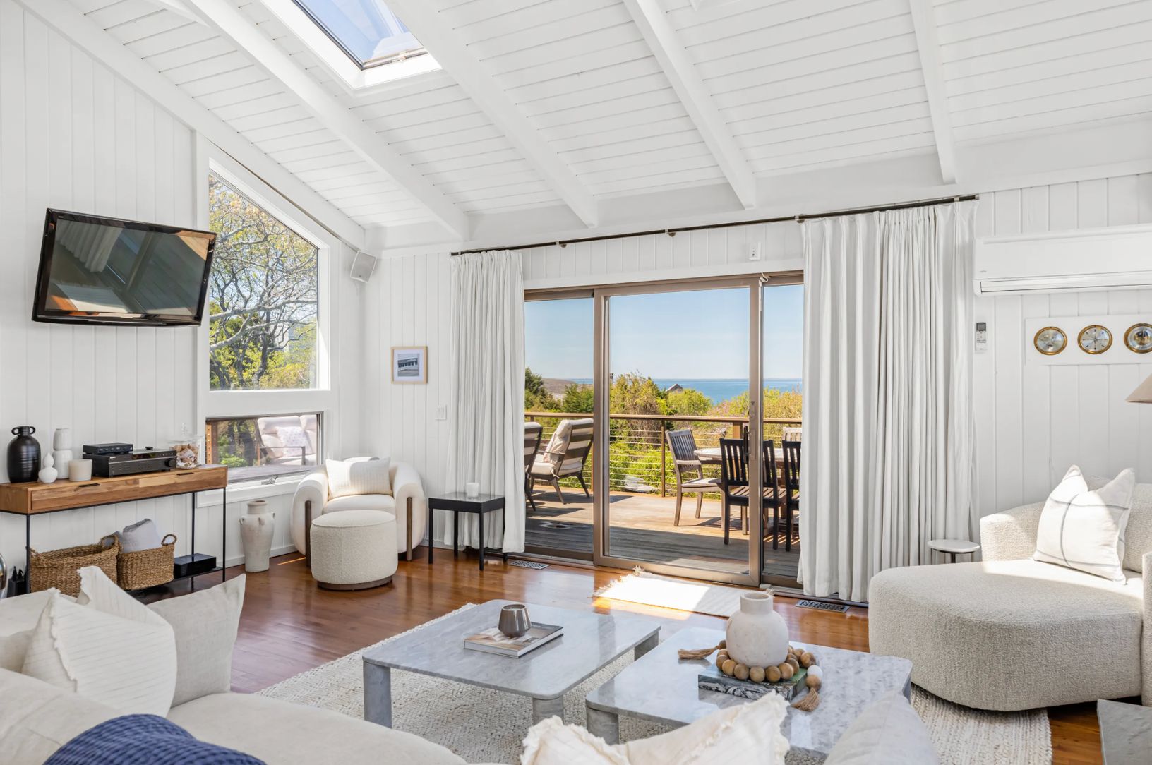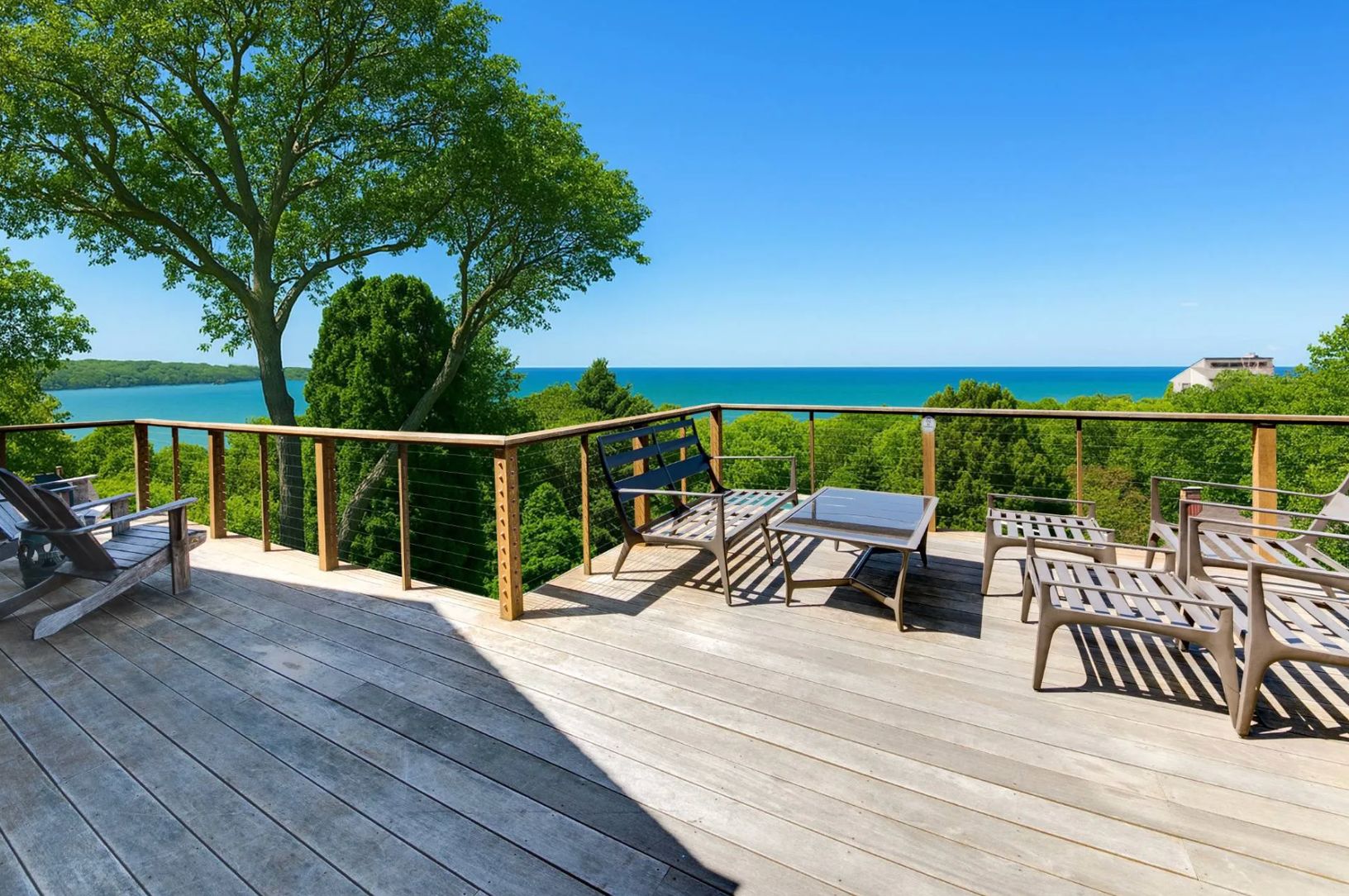 Overlooking Fort Pond Bay with sweeping sunset views, this contemporary retreat offers exceptional privacy and coastal sophistication. The four-plus bedroom, three-bath residence has been newly styled with wood floors, a fireplace, and a chef’s kitchen ideal for entertaining.