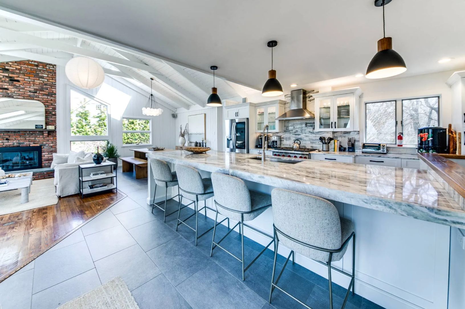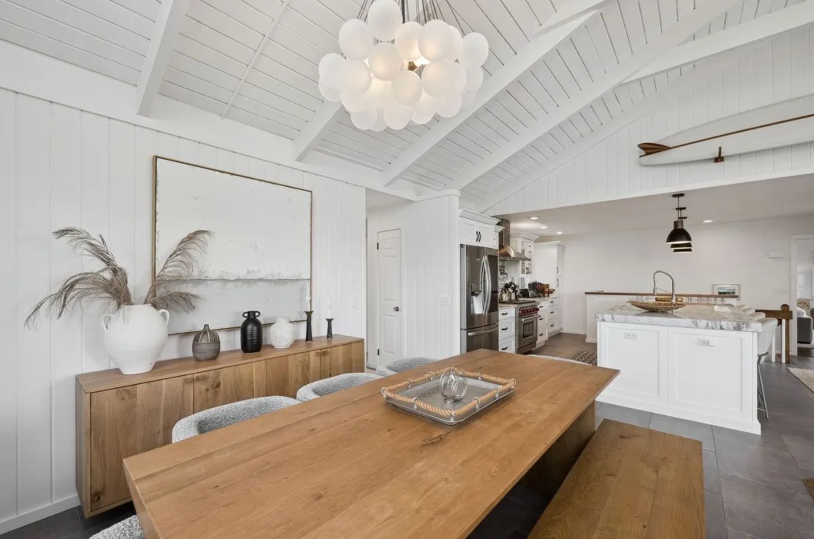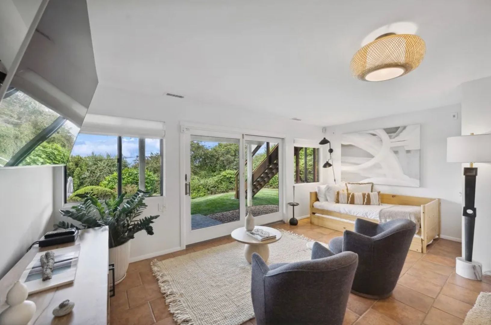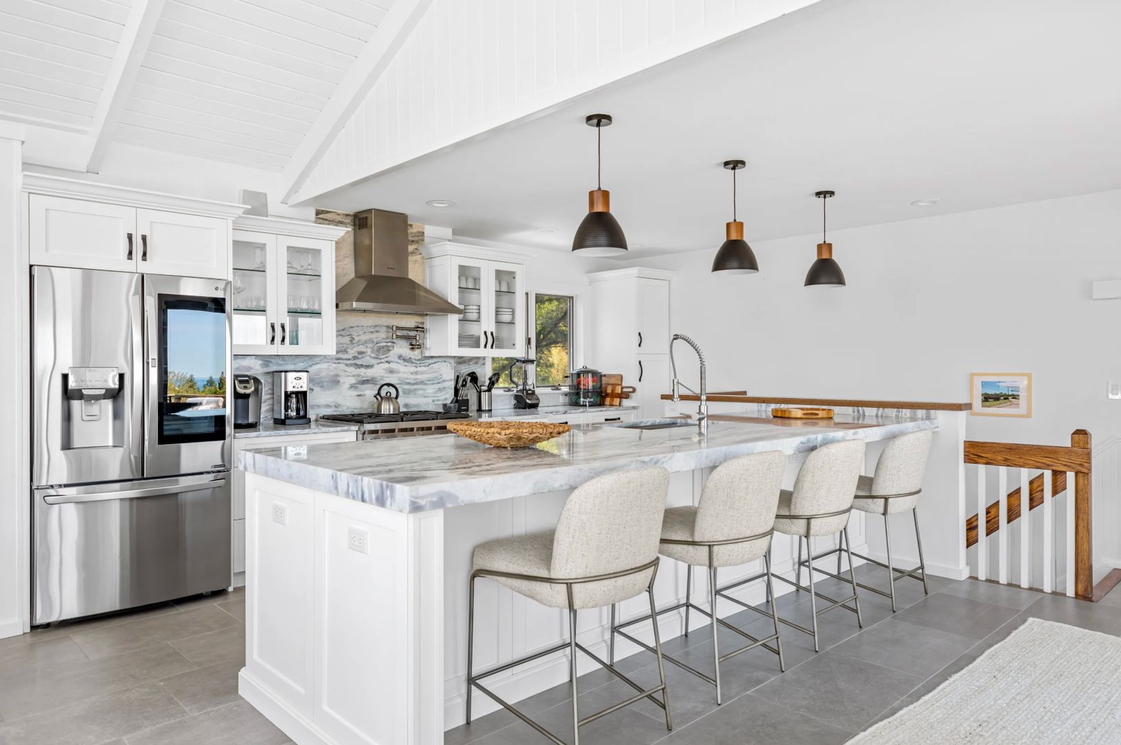 Overlooking Fort Pond Bay with sweeping sunset views, this contemporary retreat offers exceptional privacy and coastal sophistication. The four-plus bedroom, three-bath residence has been newly styled with wood floors, a fireplace, and a chef’s kitchen ideal for entertaining.