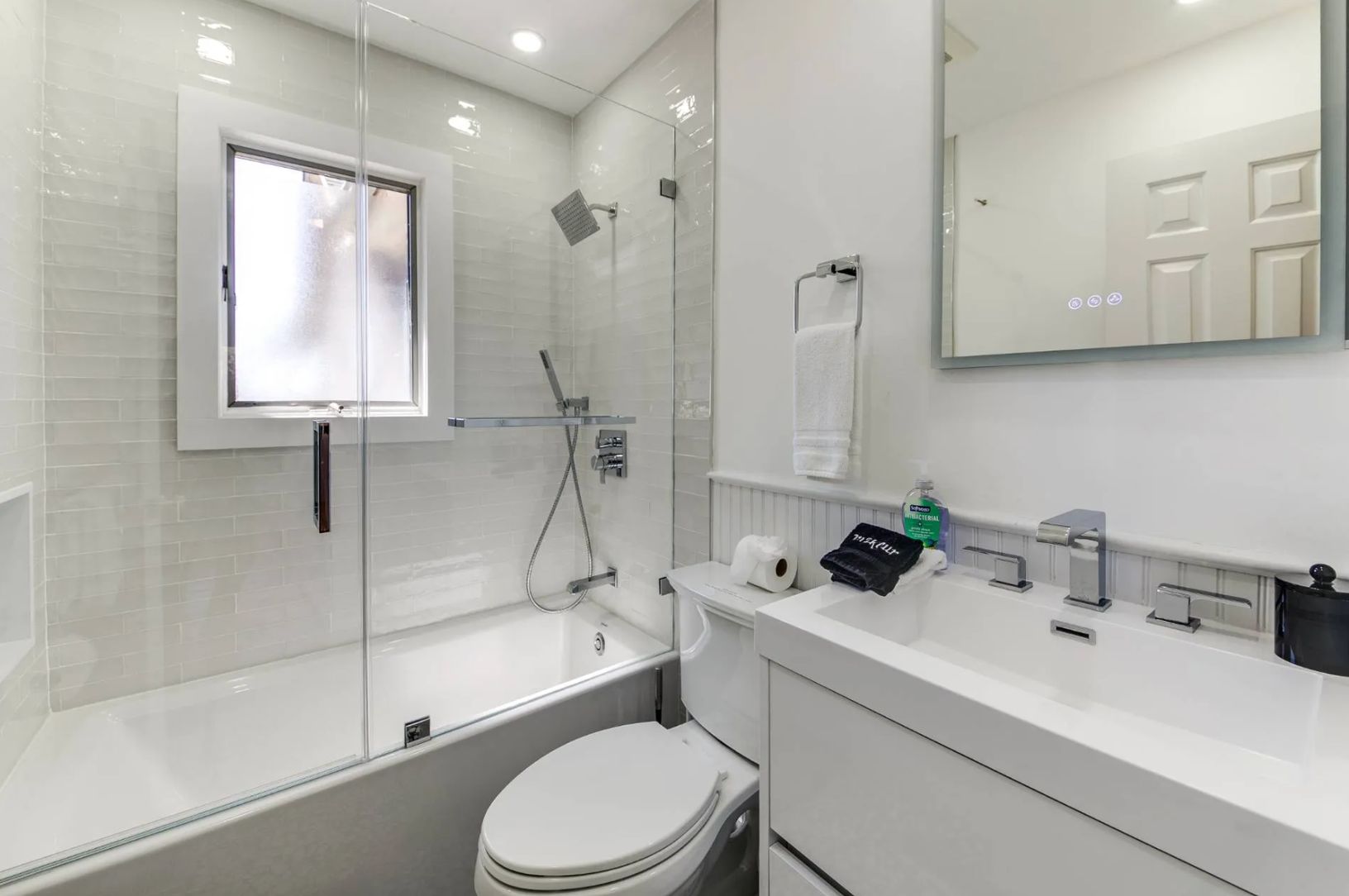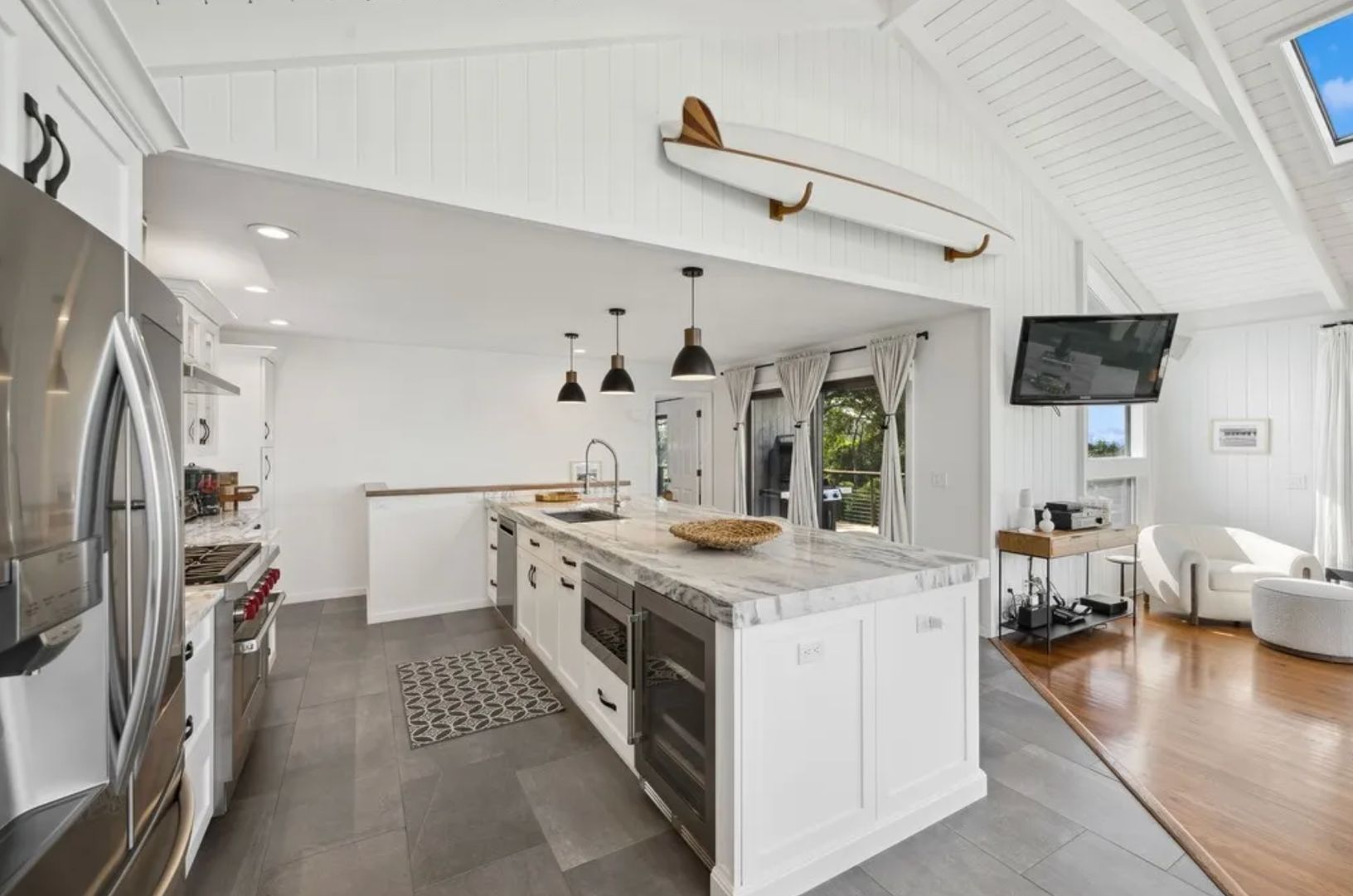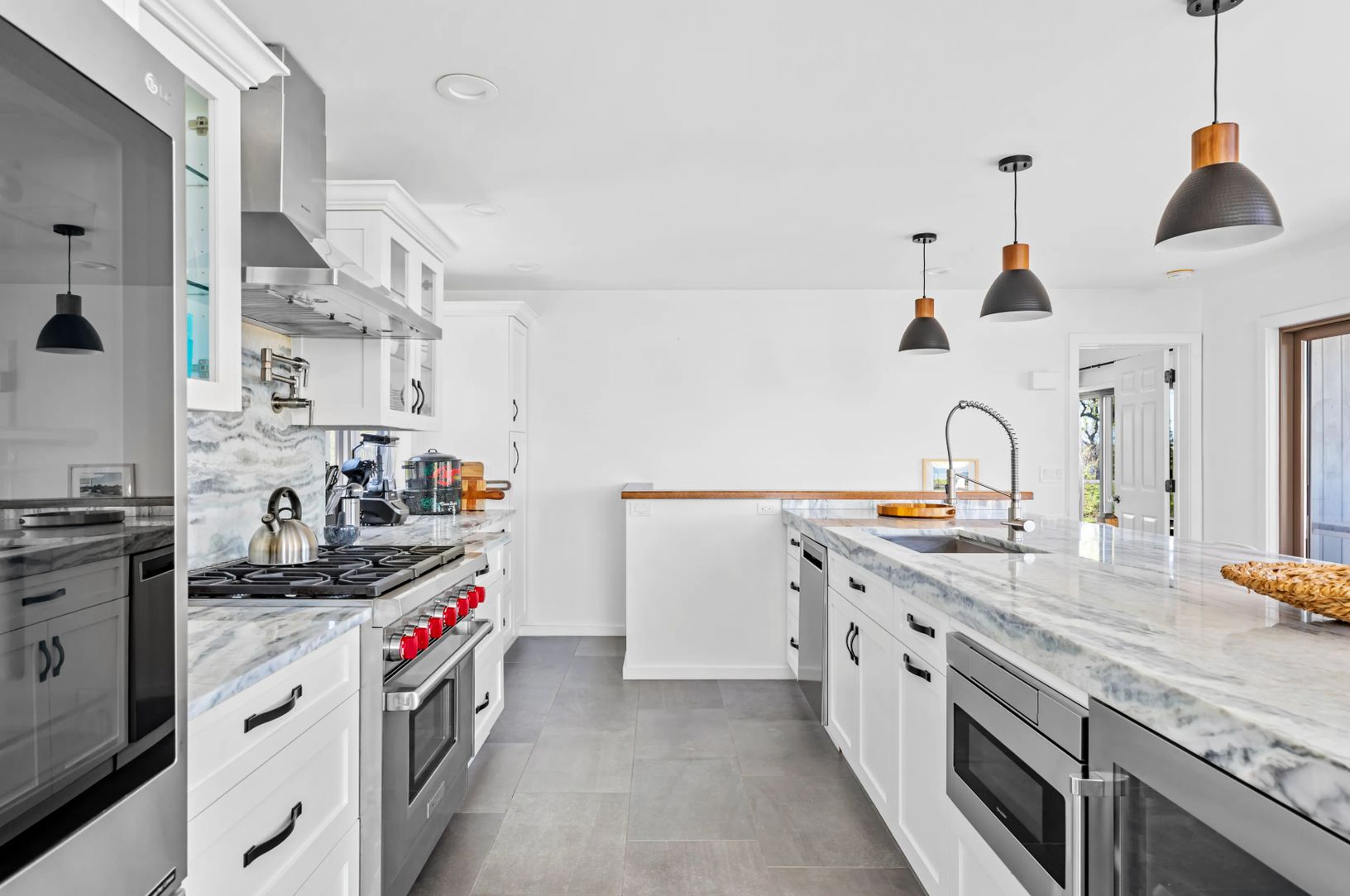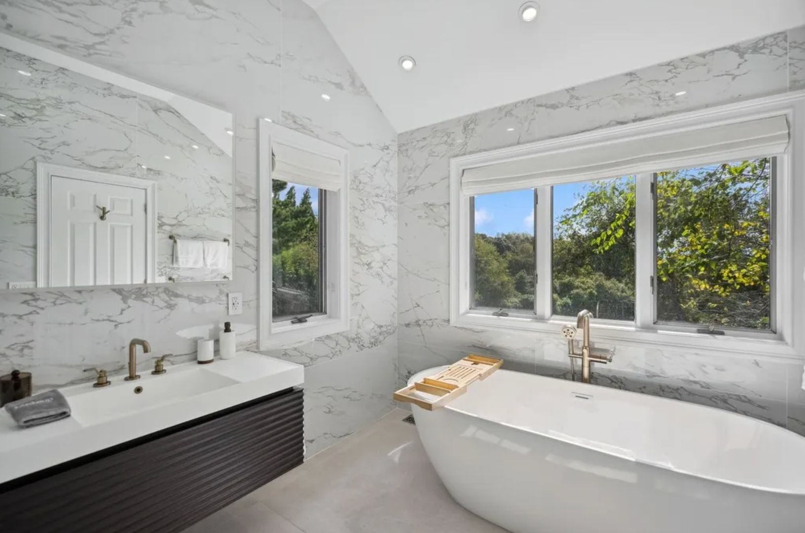 The newly finished primary suite is a serene escape, featuring a private Bayview deck and a spa-inspired remodeled bath. Outdoors, a heated pool is surrounded by be