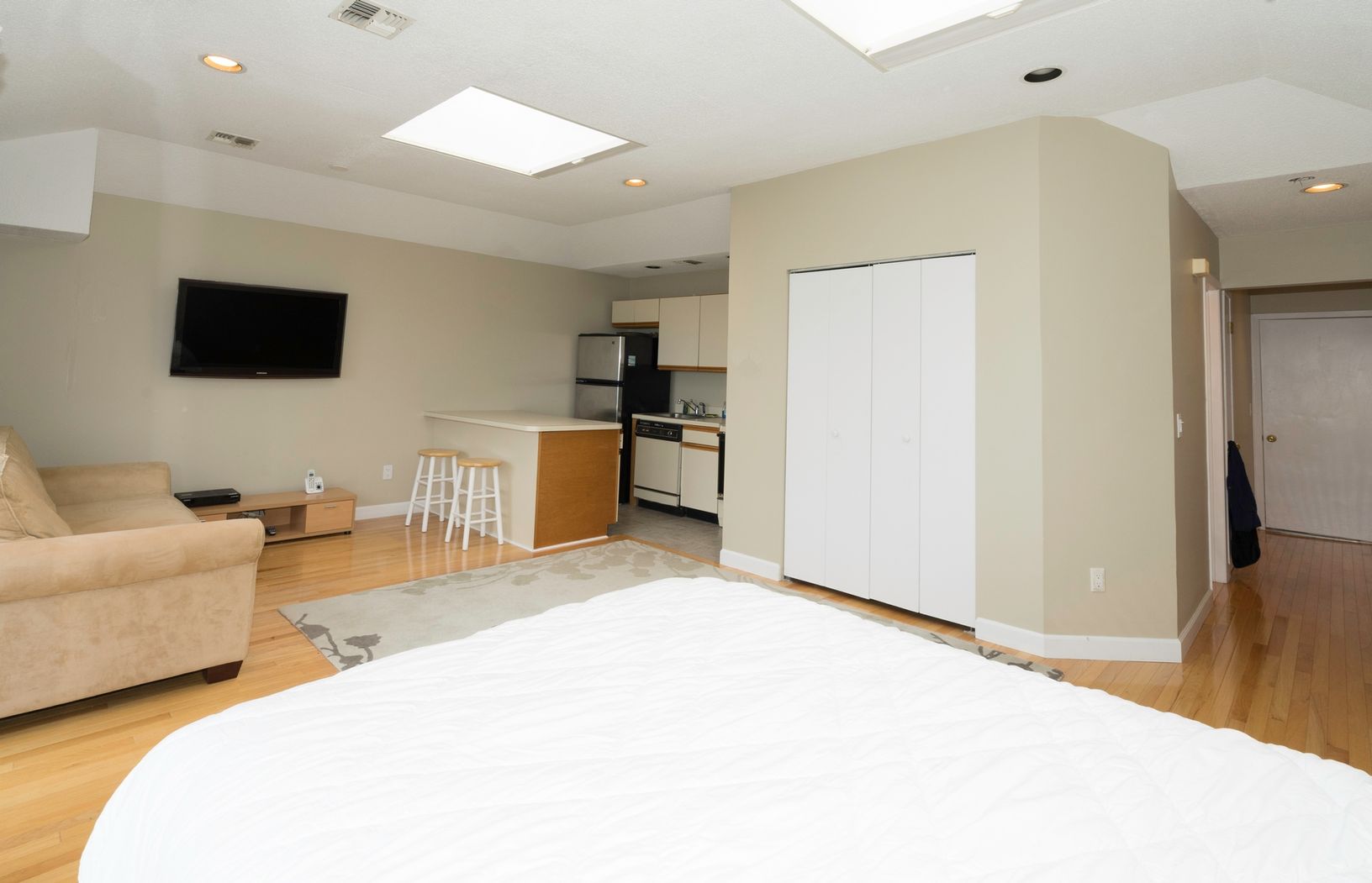 Wake up every morning to breathtaking bayfront views from this upper floor studio condominium. Open and airy living, kitchen, and dining area with skylight. Private deck overlooking Fort Pond Bay. Plenty of community amenities: fishing pier, five tennis courts, heated pool, hot tub, and sauna.