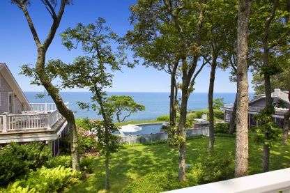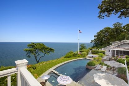 243' of Beautiful open waterfront compound high on bluff with sunset views! Walk down one of your stairways to private beach. Two houses, 44' heated gunite pool with 2 spas overlooking the bay plus tennis court, two cabanas, generator. Screened in porch, waterside mahogany & stone patios decking and office are just a few of the amenities with 10 bedrooms and 7.5 baths, gourmet kitchen, 6 garage bays with 2 bedroom apartment. Totally